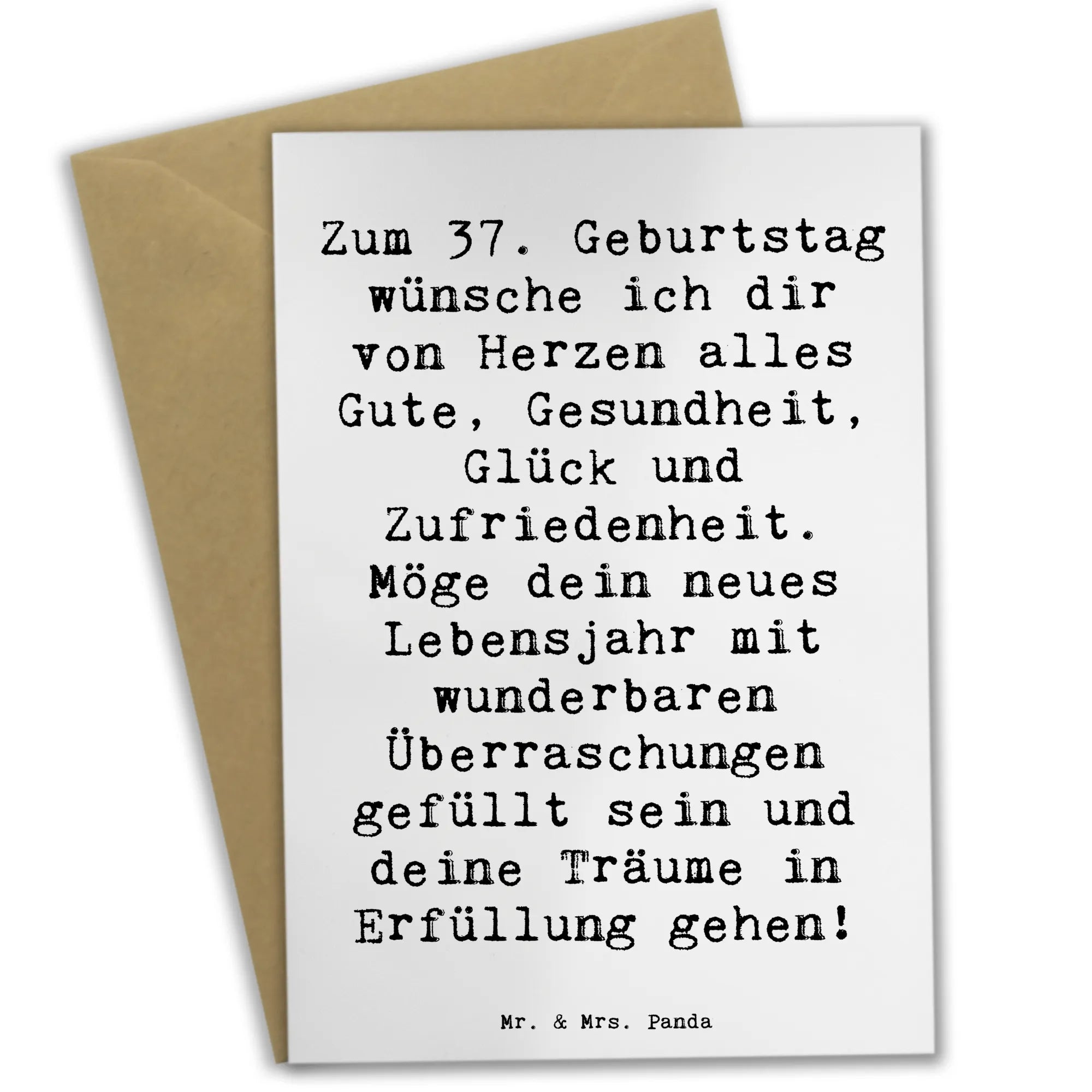 Wenn du auf der Suche nach einem einzigartigen Geschenk bist, das bleibende Erinnerungen schafft, dann ist diese Grußkarte genau das richtige! Sie wird sicher einen besonderen Platz im Herzen des Beschenkten finden. Lass dich von der Lebensfreude der Mr. & Mrs. Panda Karten inspirieren und mache den 37. Geburtstag unvergesslich. Die Karte wird mit einem edlen Umschlag geliefert, sodass sie gleich bereit ist zum Verschenken oder Verschicken. Mach jedes Alter zu einem besonderen Erlebnis und verschenke Freude mit der zauberhaften Grußkarte von Mr. & Mrs. Panda!