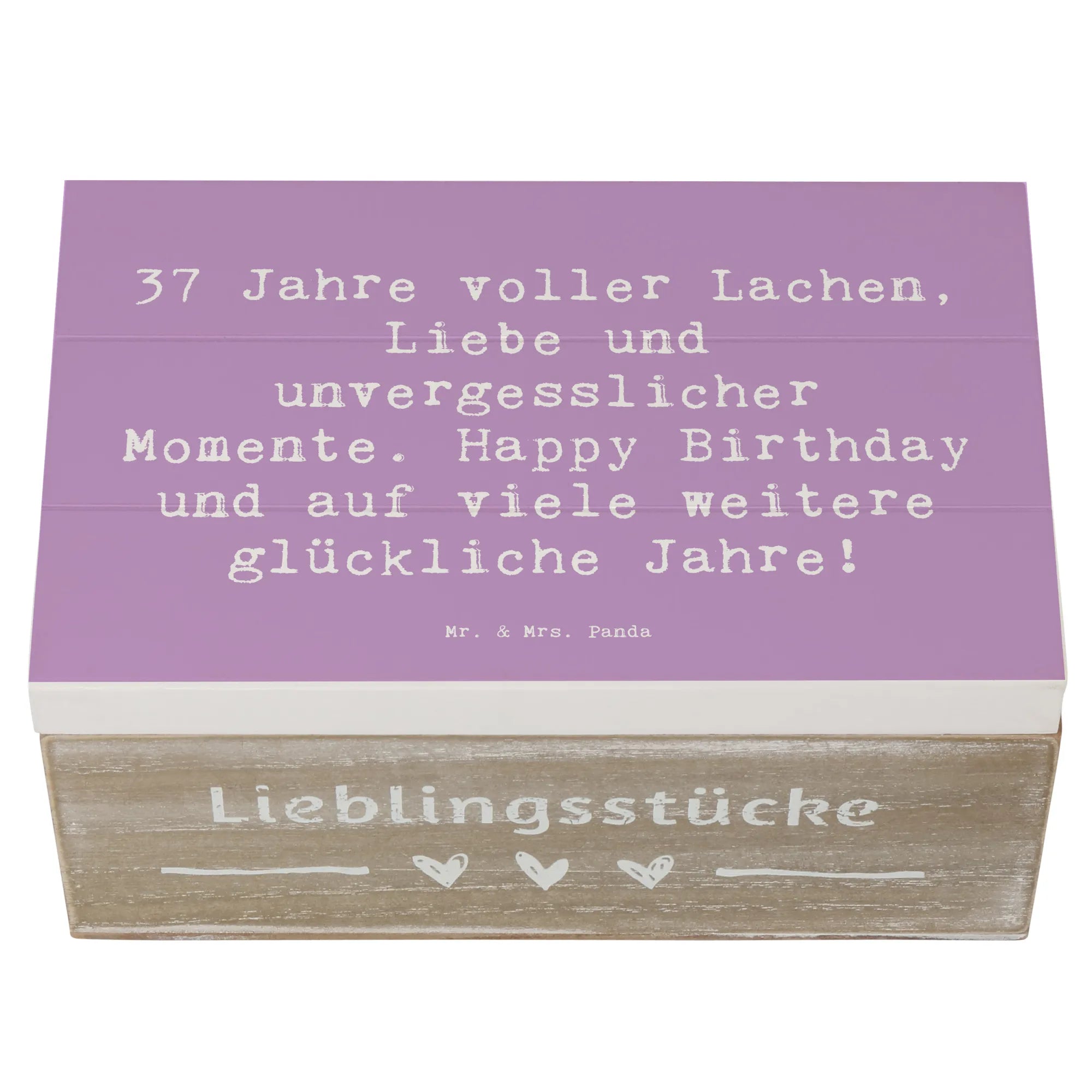 Die wunderschöne Holzkiste von Mr. & Mrs. Panda ist das ideale Geschenk zum 37. Geburtstag! Mit ihrem liebevollen Design und dem inspirierenden Spruch "37 Jahre voller Lachen, Liebe und unvergesslicher Momente. Happy Birthday und auf viele weitere glückliche Jahre!" bringt sie Freude und ist ein echter Hingucker.