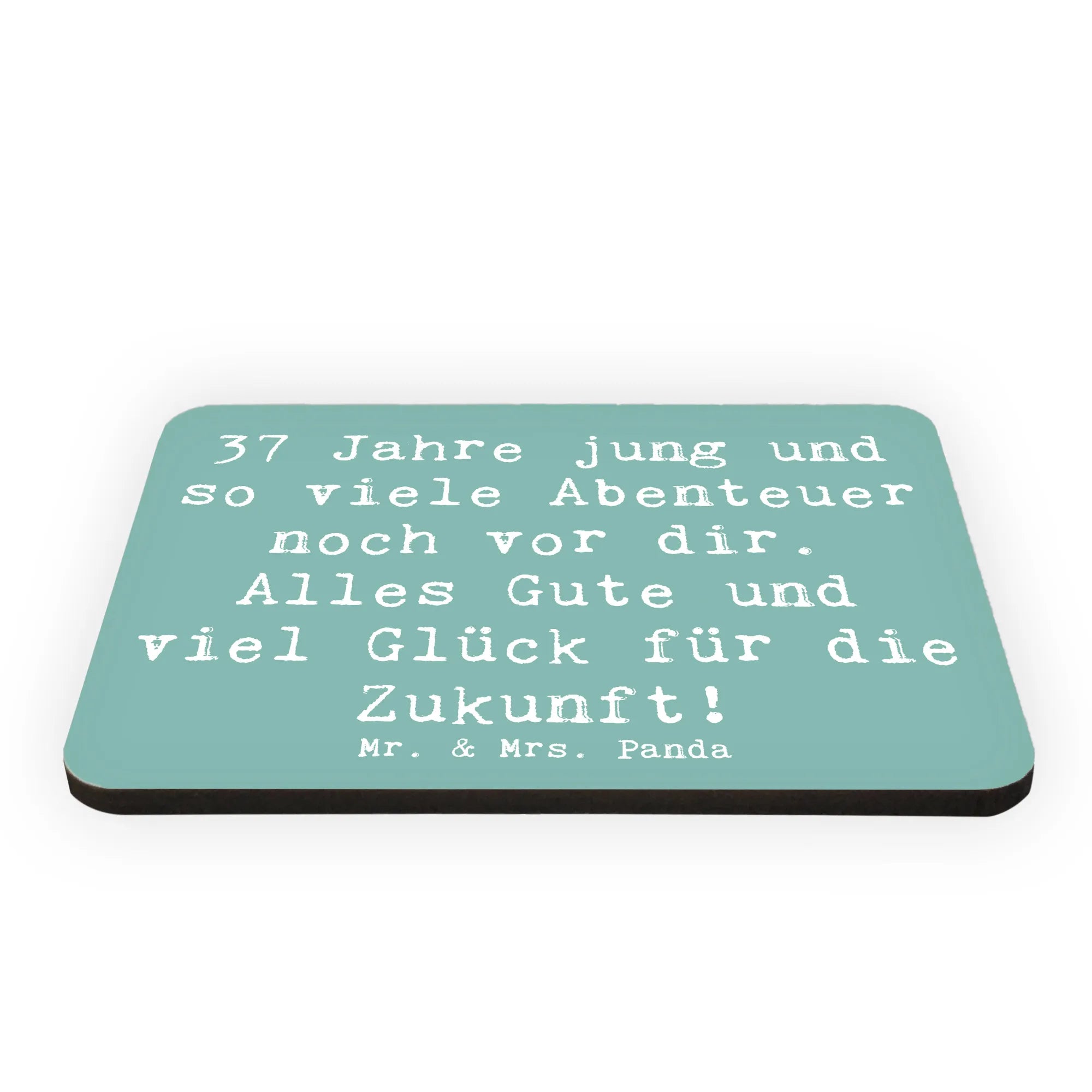 Der Kühlschrankmagnet "37 Jahre jung und so viele Abenteuer noch vor dir. Alles Gute und viel Glück für die Zukunft!" aus der tollen Geburtstag Alter Kollektion von Mr. & Mrs. Panda ist das perfekte Geschenk für all jene, die ihren 37. Geburtstag gebührend feiern möchten.