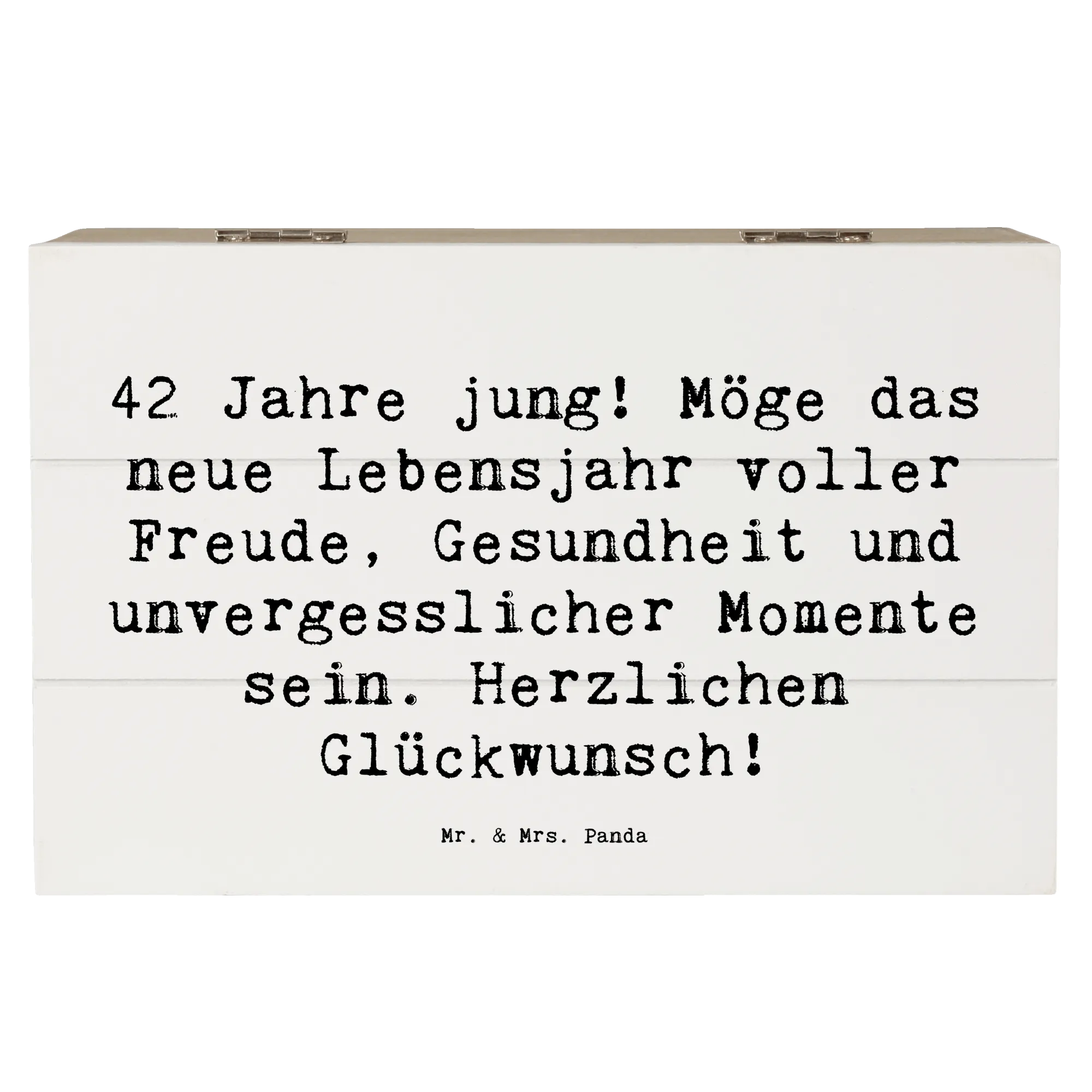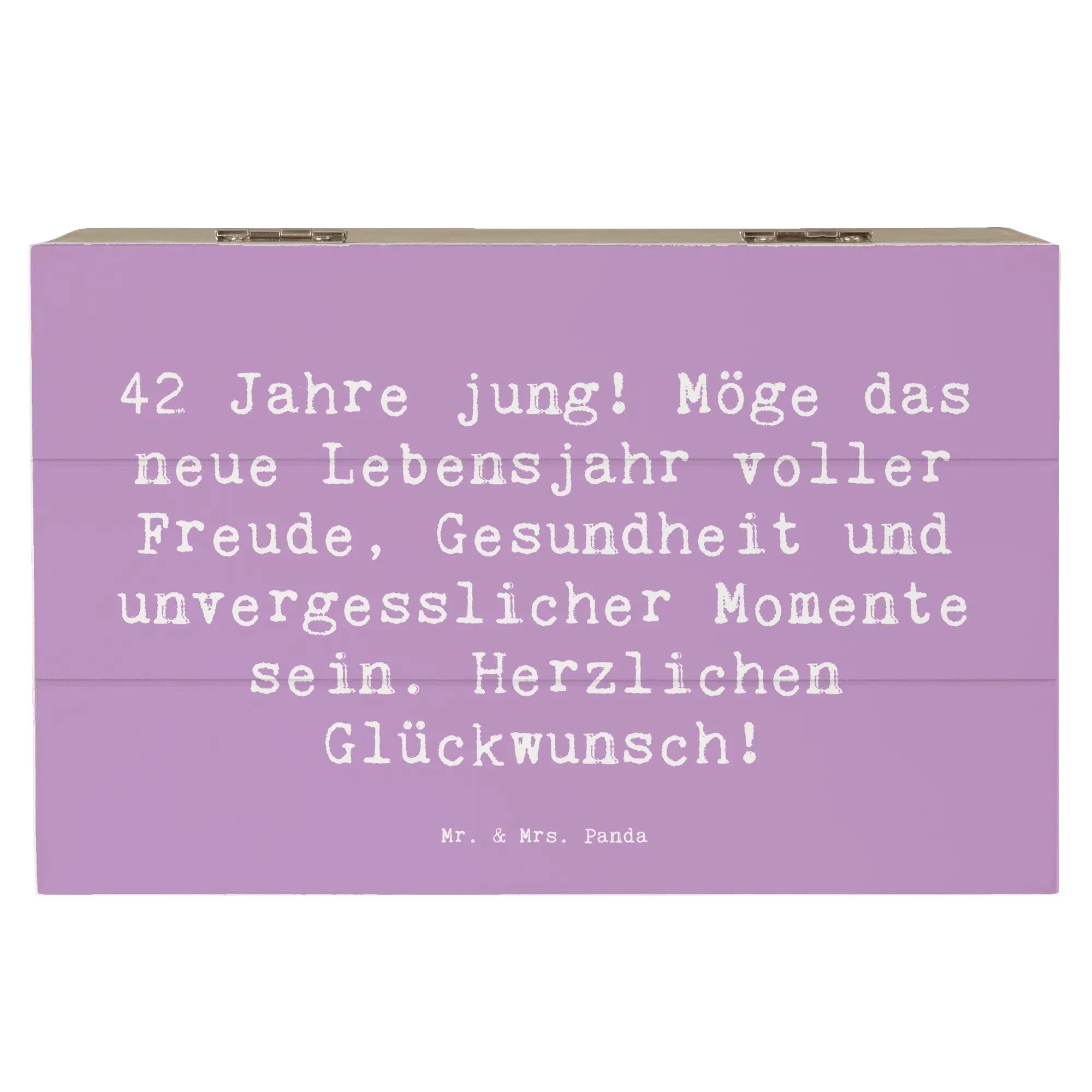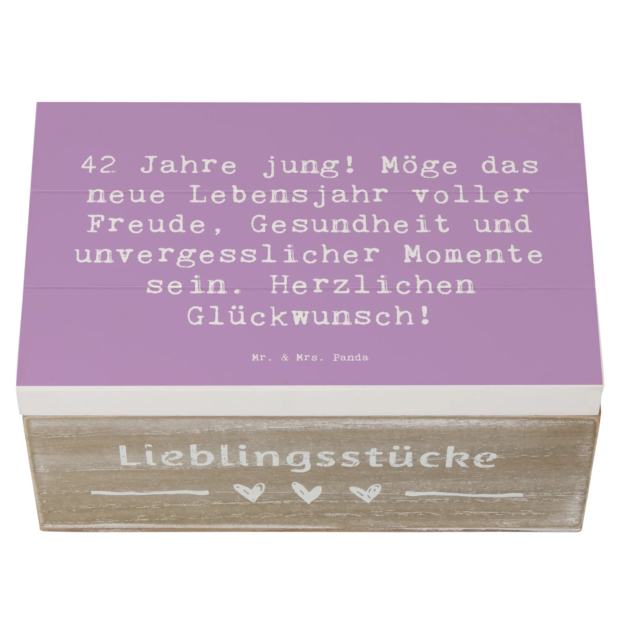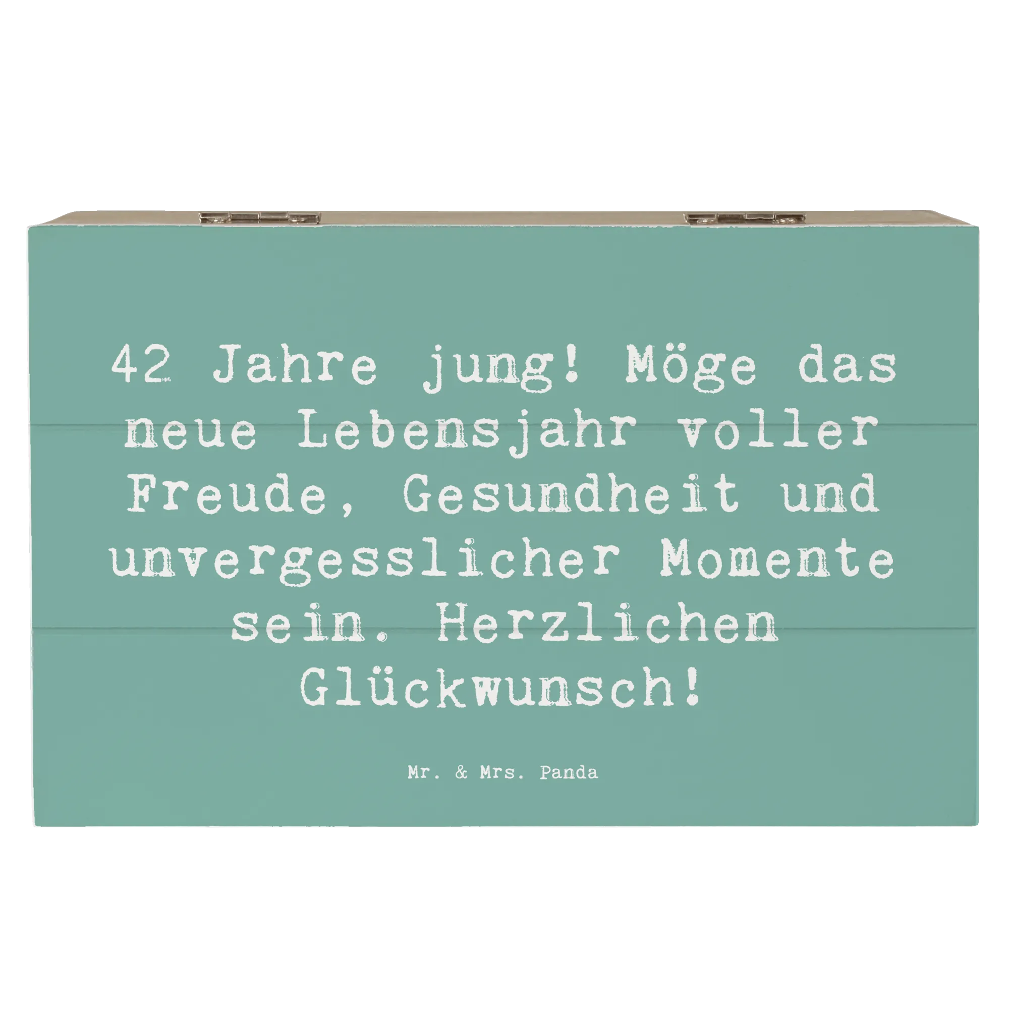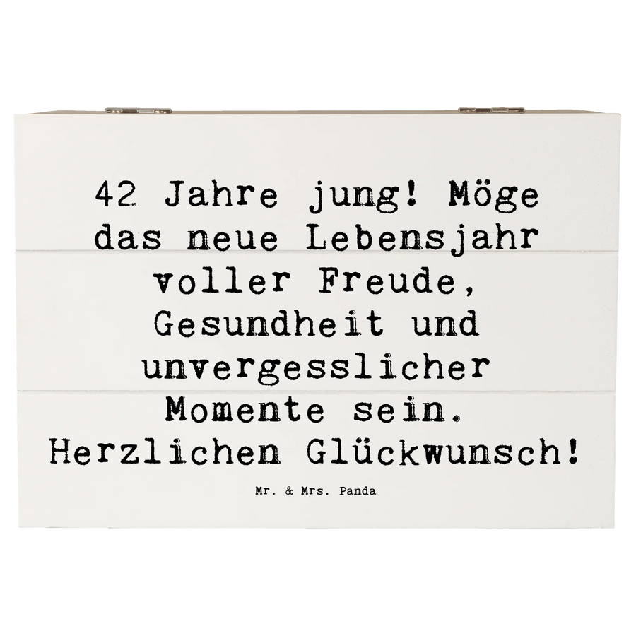 Die wunderschöne Holzkiste von Mr. & Mrs. Panda ist das perfekte Geschenk zum 42. Geburtstag und bietet einen einzigartigen Aufbewahrungsort für deine wertvollsten Schätze. Mit dem liebevollen Motiv "42 Jahre jung! Möge das neue Lebensjahr voller Freude, Gesundheit und unvergesslicher Momente sein. Herzlichen Glückwunsch!" wird sie zum idealen Erinnerungsstück an diesen besonderen Tag.