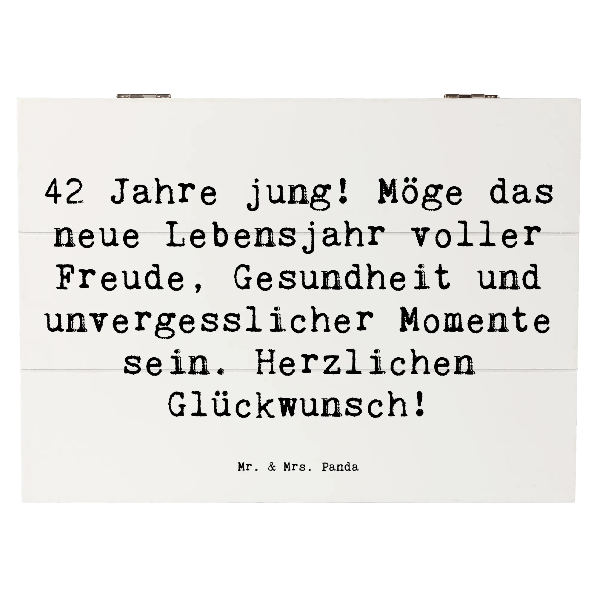 Die wunderschöne Holzkiste von Mr. & Mrs. Panda zum 42. Geburtstag ist nicht nur ein praktisches Aufbewahrungsobjekt, sondern auch ein liebevolles Geschenk, das Erinnerungen in einem besonderen Rahmen bewahrt. Mit dem Slogan '42 Jahre jung! Möge das neue Lebensjahr voller Freude, Gesundheit und unvergesslicher Momente sein. Herzlichen Glückwunsch!' wirkt diese Erinnerungskiste als ganz persönliches Geschenk, das in jedem Raum einen hübschen Blickfang bietet.