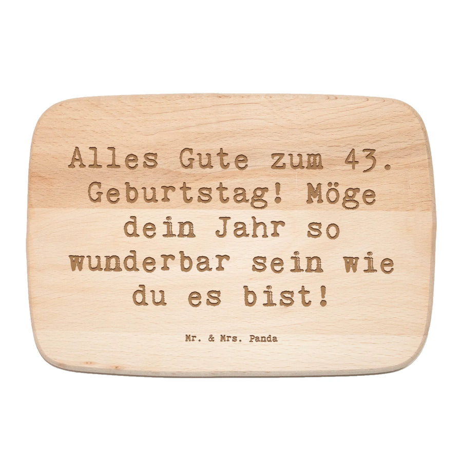 Die langlebige Lasergravur mit dem Spruch "Alles Gute zum 43. Geburtstag! Möge dein Jahr so wunderbar sein wie du es bist!" verleiht dem Brett eine persönliche Note und ein Stückchen gute Laune bleibt in der Küche zurück.