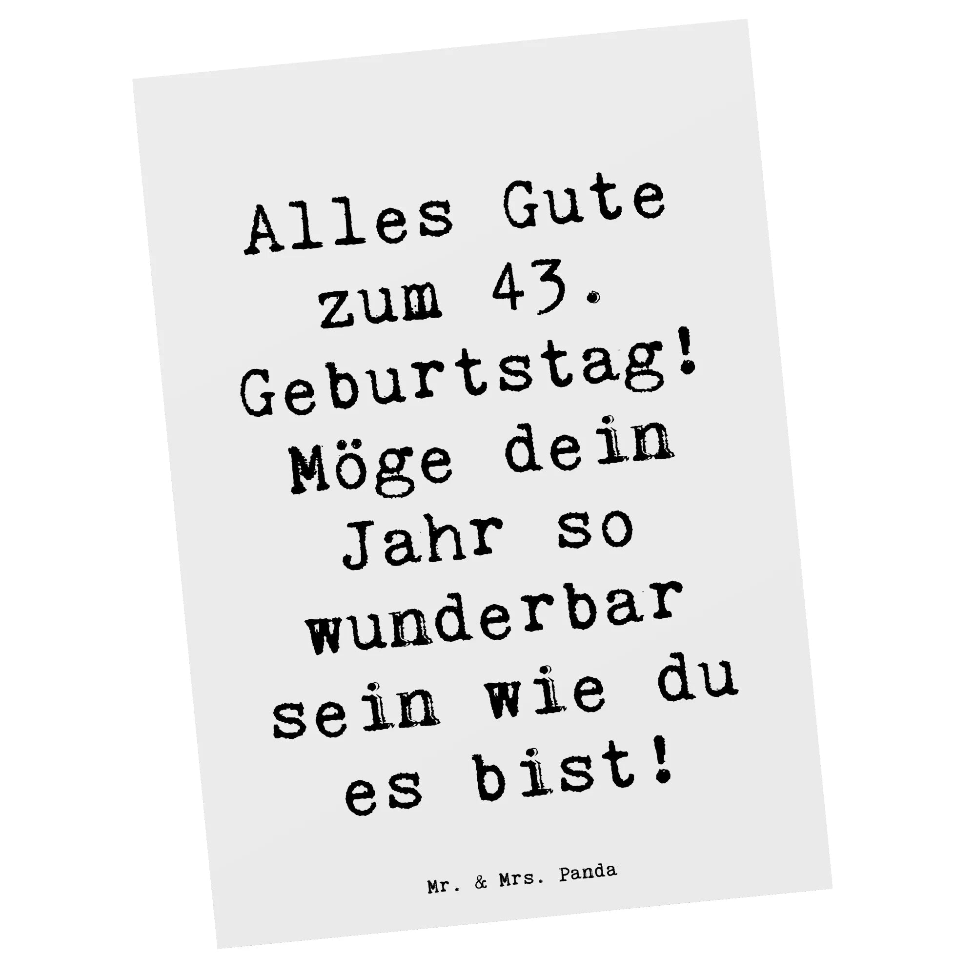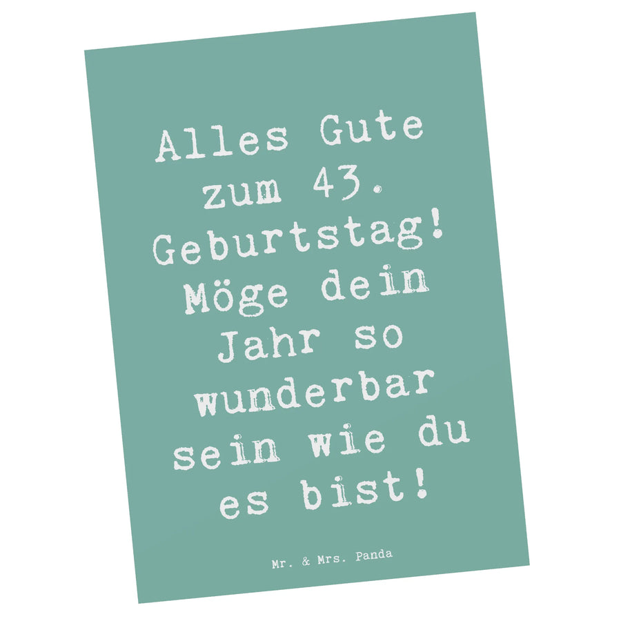 Alles Gute zum 43. Geburtstag! Diese zauberhafte Postkarte von Mr. & Mrs. Panda bringt Glückwünsche mit Stil. Auf dem sanften Lavendeltraum-Hintergrund strahlt der liebevolle Spruch: "Alles Gute zum 43. Geburtstag! Möge dein Jahr so wunderbar sein wie du es bist!" und macht die Karte zu einer besonderen Geburtstagskarte aus unserer Kollektion Geburtstag Alter.