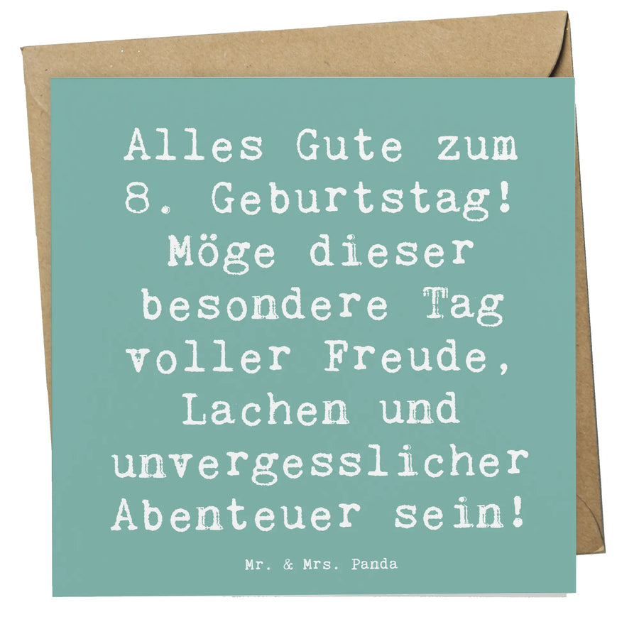 Herzlich Willkommen in der bunten Welt von Mr. & Mrs. Panda! Unsere Deluxe Karte zum 8. Geburtstag ist das perfekte Geschenk für alle, die diesen besonderen Tag stilvoll feiern möchten. Mit dem liebevoll handgezeichneten Motiv und dem herzlichen Spruch "Alles Gute zum 8. Geburtstag! Möge dieser besondere Tag voller Freude, Lachen und unvergesslicher Abenteuer sein!" zaubert die Karte jedem Geburtstagskind ein Lächeln ins Gesicht. Ob kleine Entdecker, kreative Köpfe oder echte Quatschmacher – unsere Karte spricht alle an und ist ideal, um gratulierende Worte und persönliche Botschaften zu überbringen.