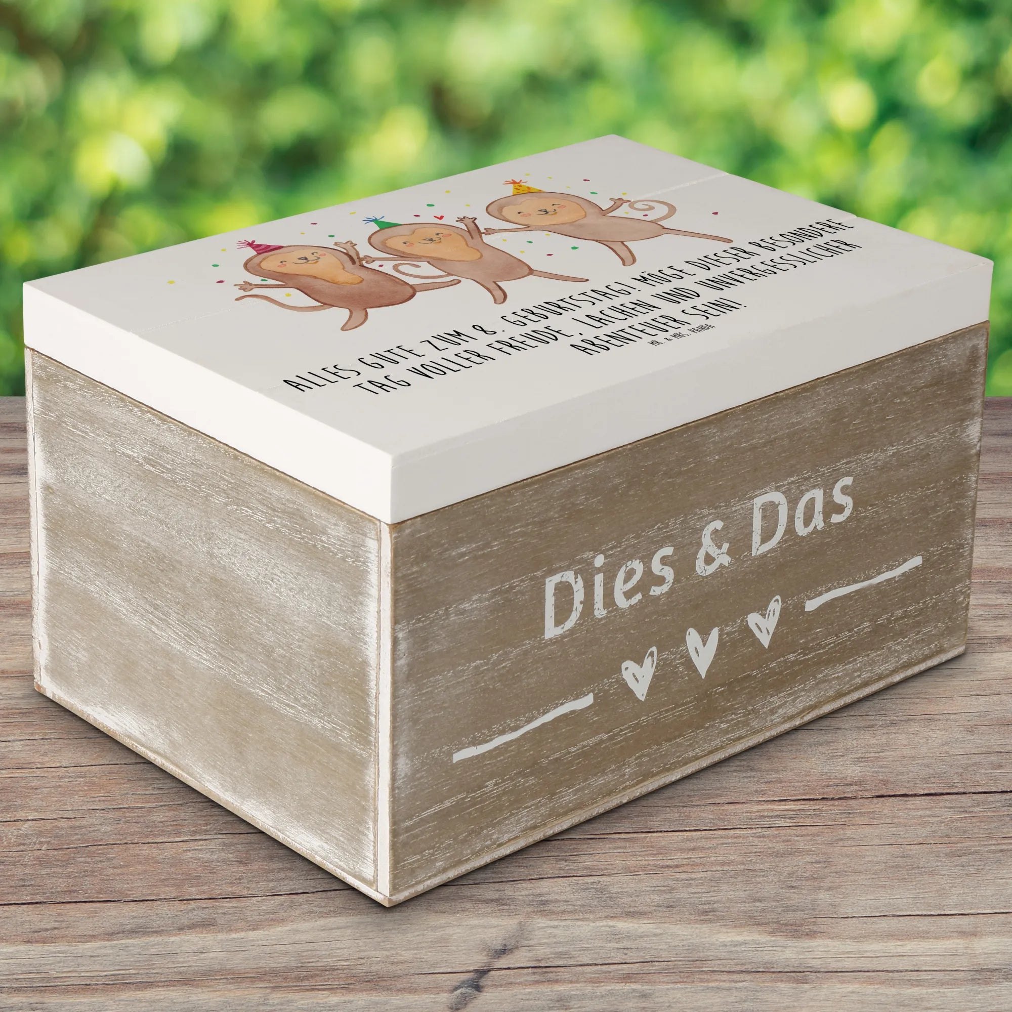 Die besondere Kollektion "Geburtstag Alter" von Mr. & Mrs. Panda ist mit viel Liebe und Sorgfalt gestaltet. Jedes Motiv wurde von Mrs. Panda handgezeichnet und verkörpert die Lebensfreude und den Spaß, den jeder Geburtstag machen sollte. Schaffe mit dieser Holzkiste unvergessliche Erinnerungen und stelle sicher, dass jeder Geburtstag eine tolle Feier wird.