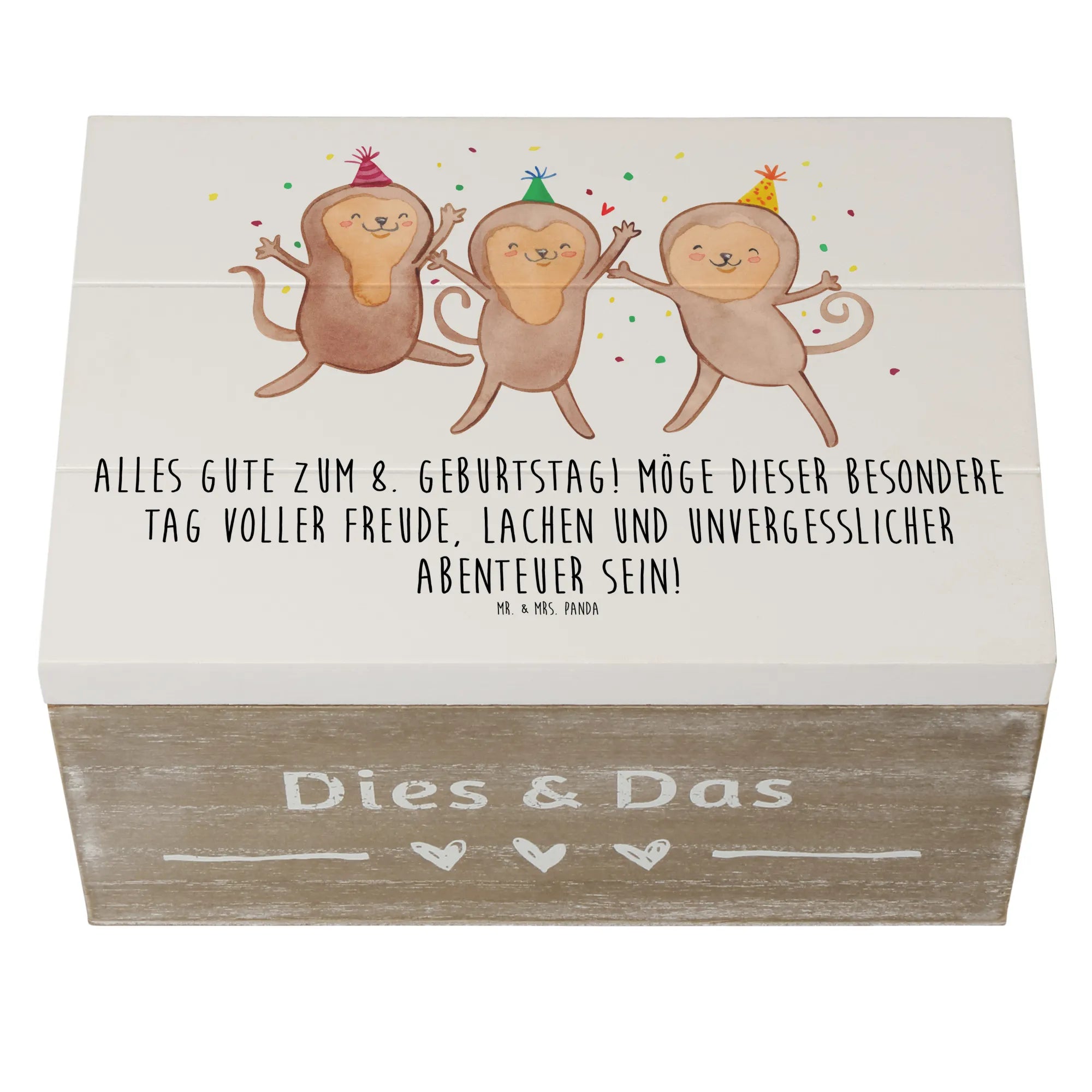 Die Holzkiste von Mr. & Mrs. Panda ist nicht nur ein wunderschönes Accessoire, sondern auch der perfekte Ort, um die unvergesslichen Erinnerungen und Schätze eines besonderen Kindes zu bewahren. Ein besonderes Highlight ist unser Motiv zum 8. Geburtstag mit dem herzerwärmenden Slogan: "Alles Gute zum 8. Geburtstag! Möge dieser besondere Tag voller Freude, Lachen und unvergesslicher Abenteuer sein!"