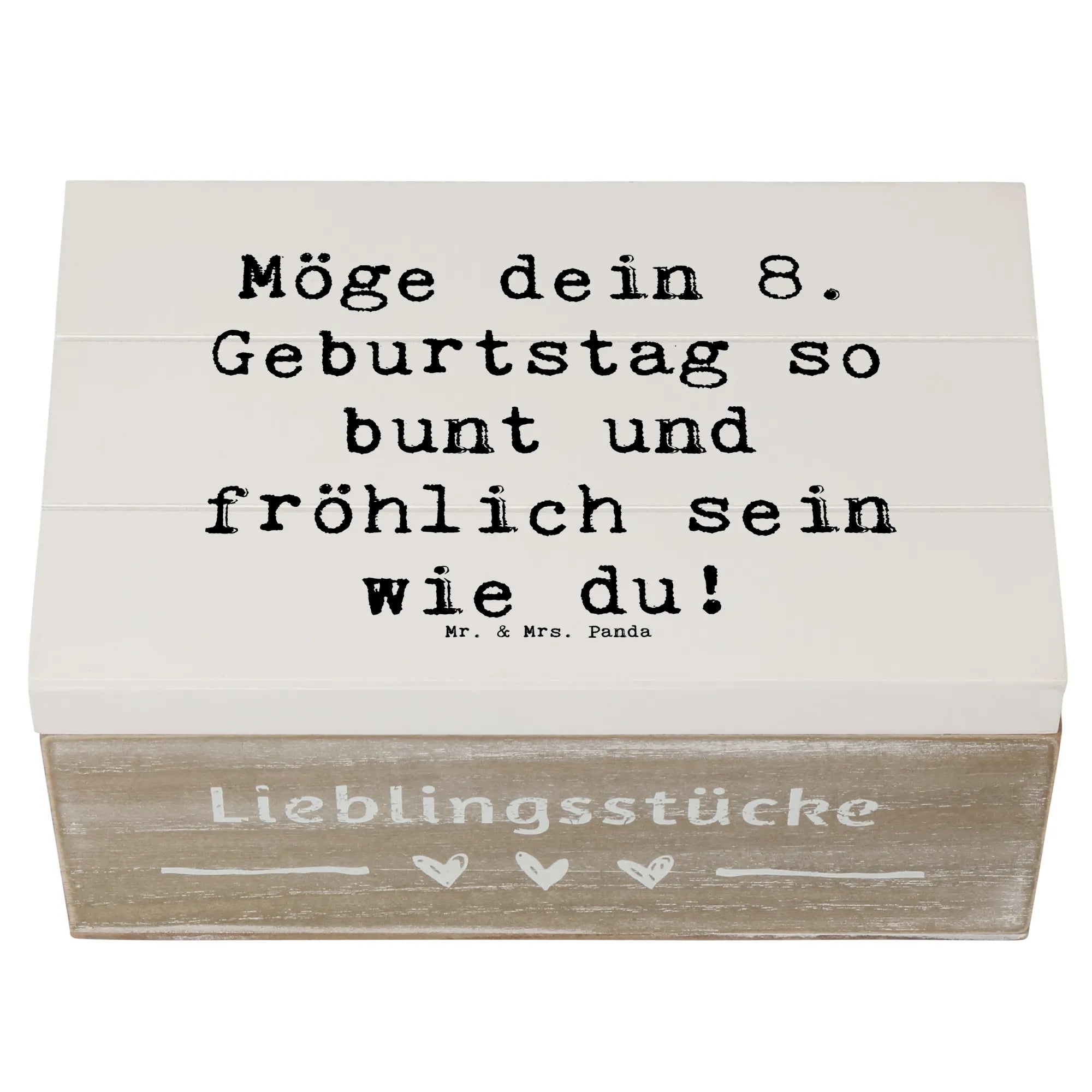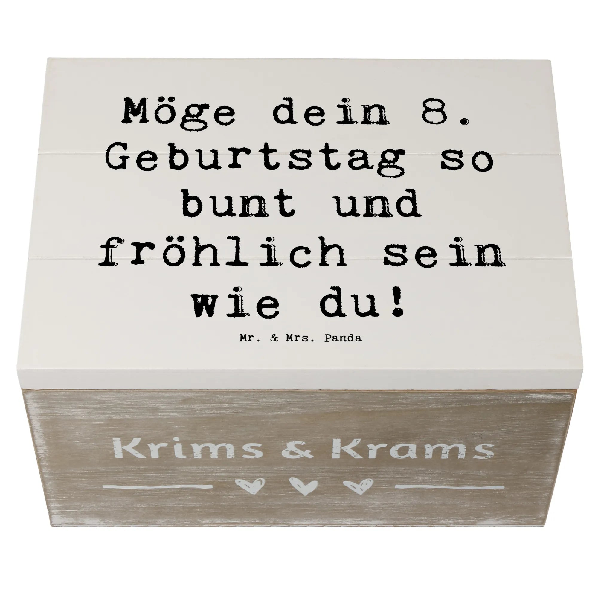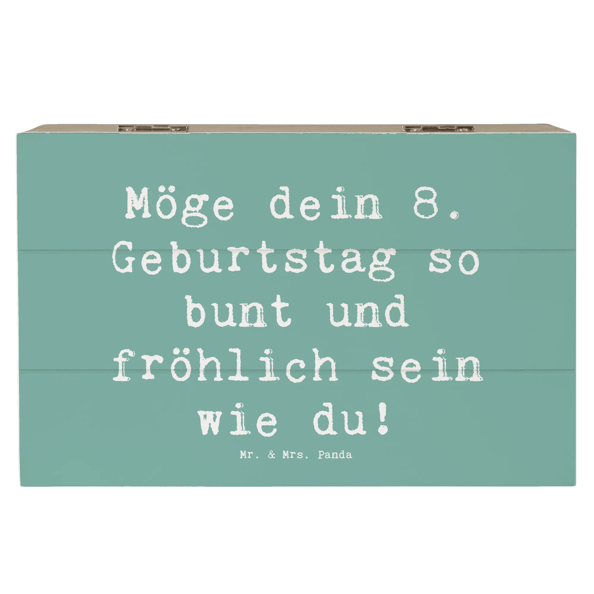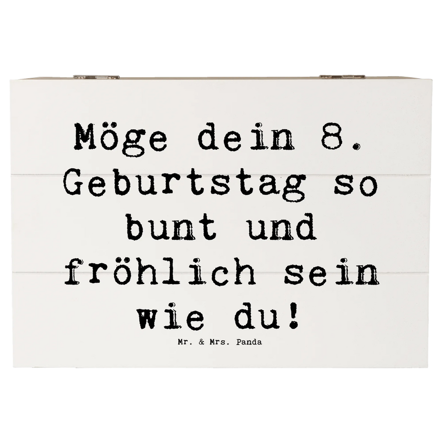 Suchst du nach dem perfekten Geschenk für einen besonderen 8. Geburtstag? Unsere wunderschöne Holzkiste von Mr. & Mrs. Panda ist genau das Richtige! Gedruckt mit dem lebensfrohen Spruch 'Möge dein 8. Geburtstag so bunt und fröhlich sein wie du!', ist diese Kiste eine zauberhafte Erinnerung an einen unvergesslichen Tag.