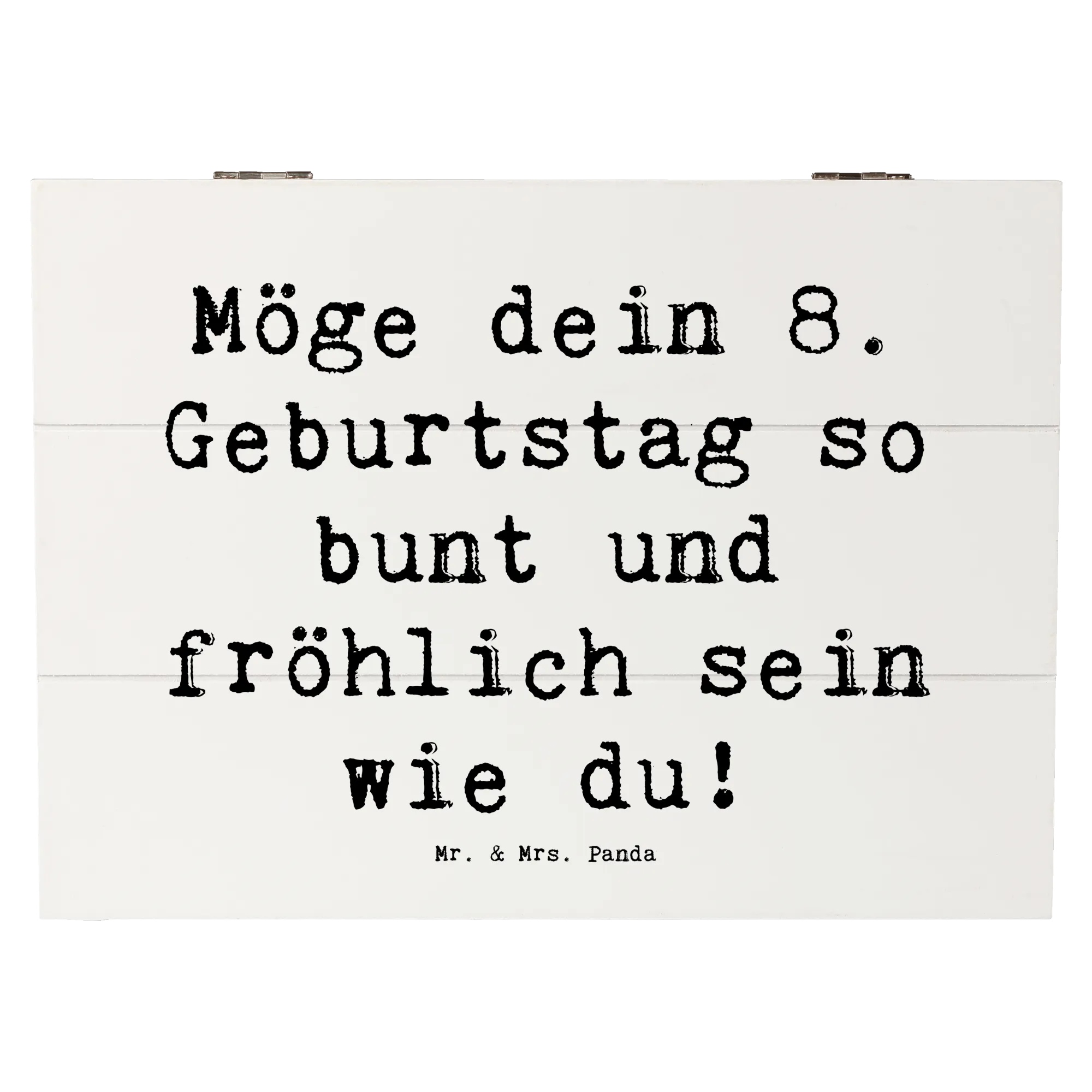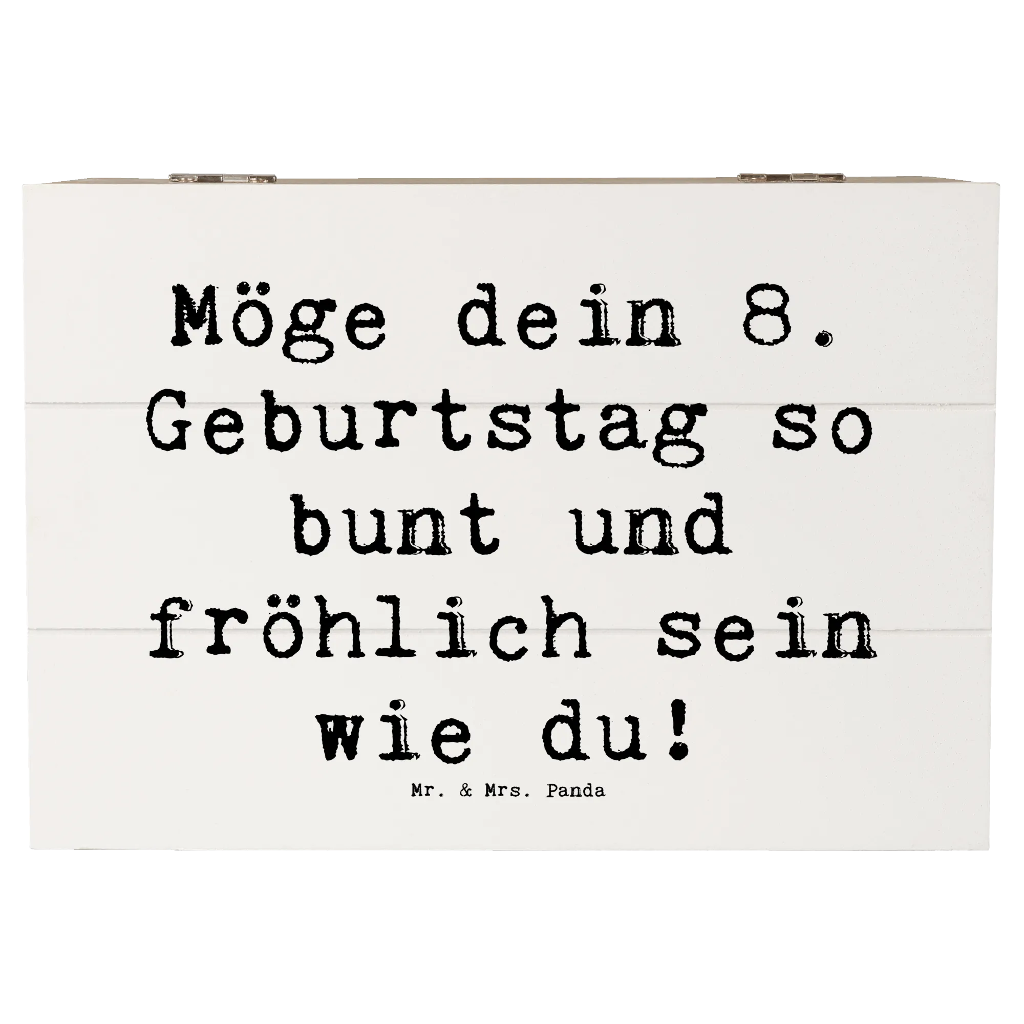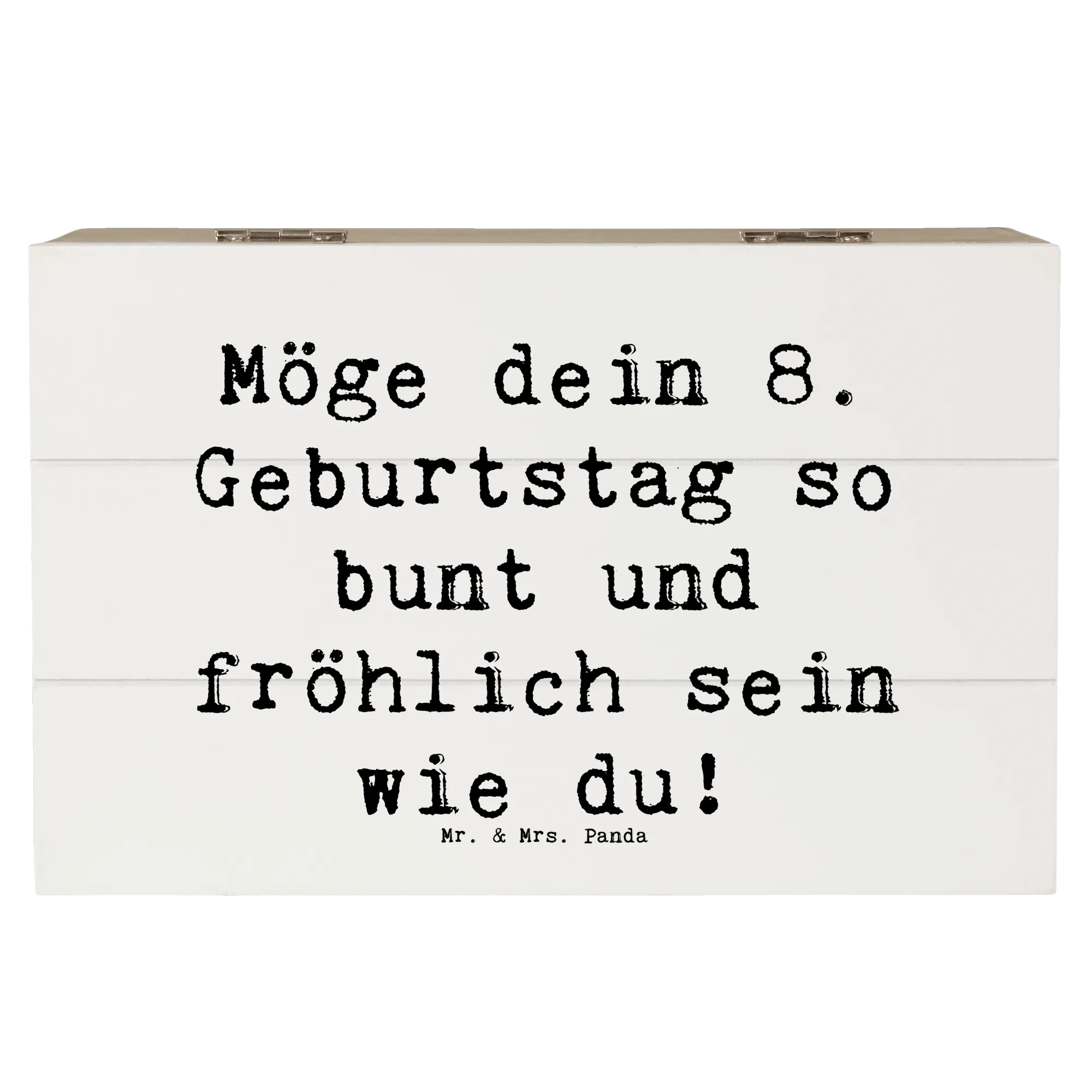 Suchst du nach dem perfekten Geschenk für einen besonderen 8. Geburtstag? Unsere wunderschöne Holzkiste von Mr. & Mrs. Panda ist genau das Richtige! Gedruckt mit dem lebensfrohen Spruch 'Möge dein 8. Geburtstag so bunt und fröhlich sein wie du!', ist diese Kiste eine zauberhafte Erinnerung an einen unvergesslichen Tag.