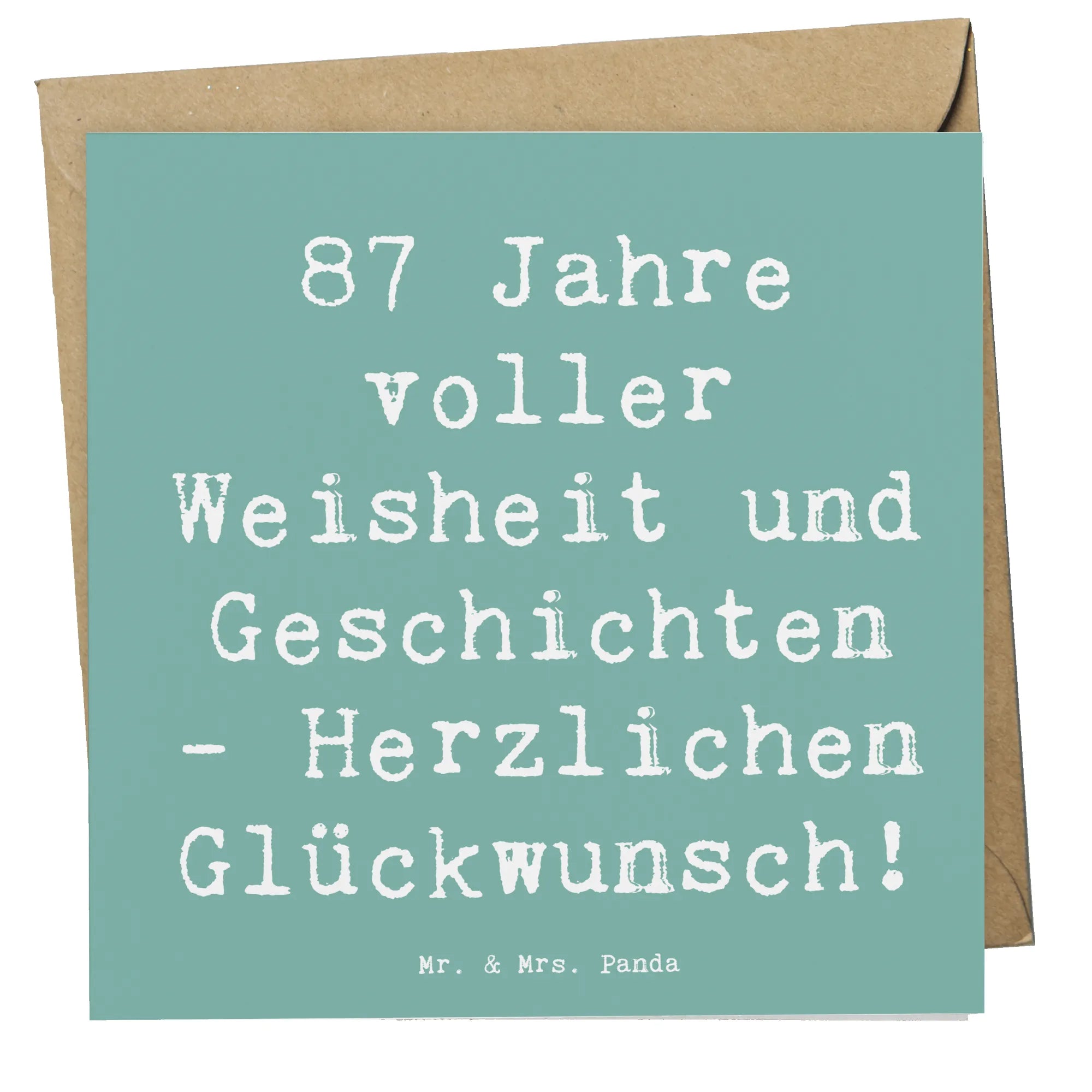 Wenn Du auf der Suche nach dem perfekten Geschenk zum 87. Geburtstag bist, dann ist die Deluxe Karte von Mr. & Mrs. Panda genau das richtige für Dich! Mit dem liebevollen Spruch '87 Jahre voller Weisheit und Geschichten - Herzlichen Glückwunsch!' zauberst Du garantiert ein Lächeln auf das Gesicht des Geburtstagskindes. Diese hochwertige Klappkarte mit einem bezaubernden Hochglanz-Motiv ist nicht nur ein Blickfang, sie bietet zudem Platz für Deine persönlichen Glückwünsche.