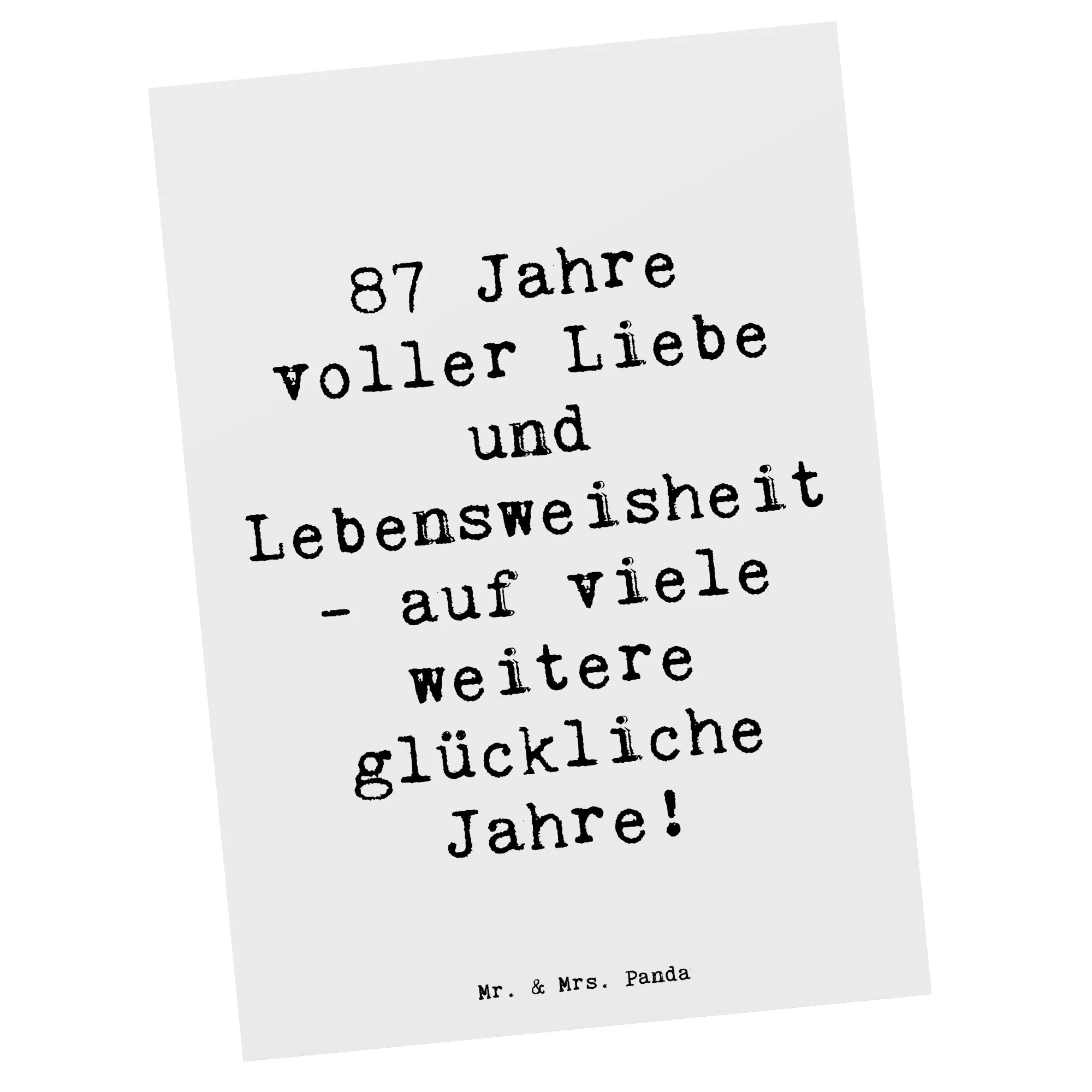 Mach den 87. Geburtstag zu etwas ganz Besonderem mit unserer einzigartigen Postkarte von Mr. & Mrs. Panda! Diese liebevoll gestaltete Karte ist perfekt für alle, die einem lieben Menschen zu diesem besonderen Jubiläum gratulieren möchten.