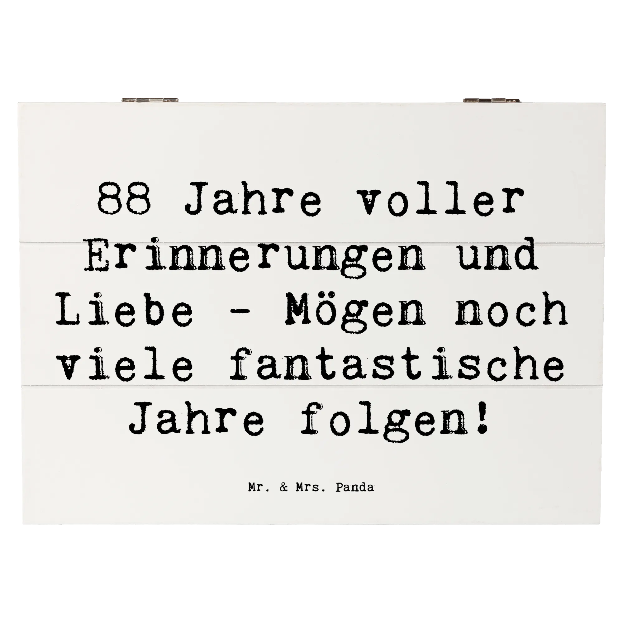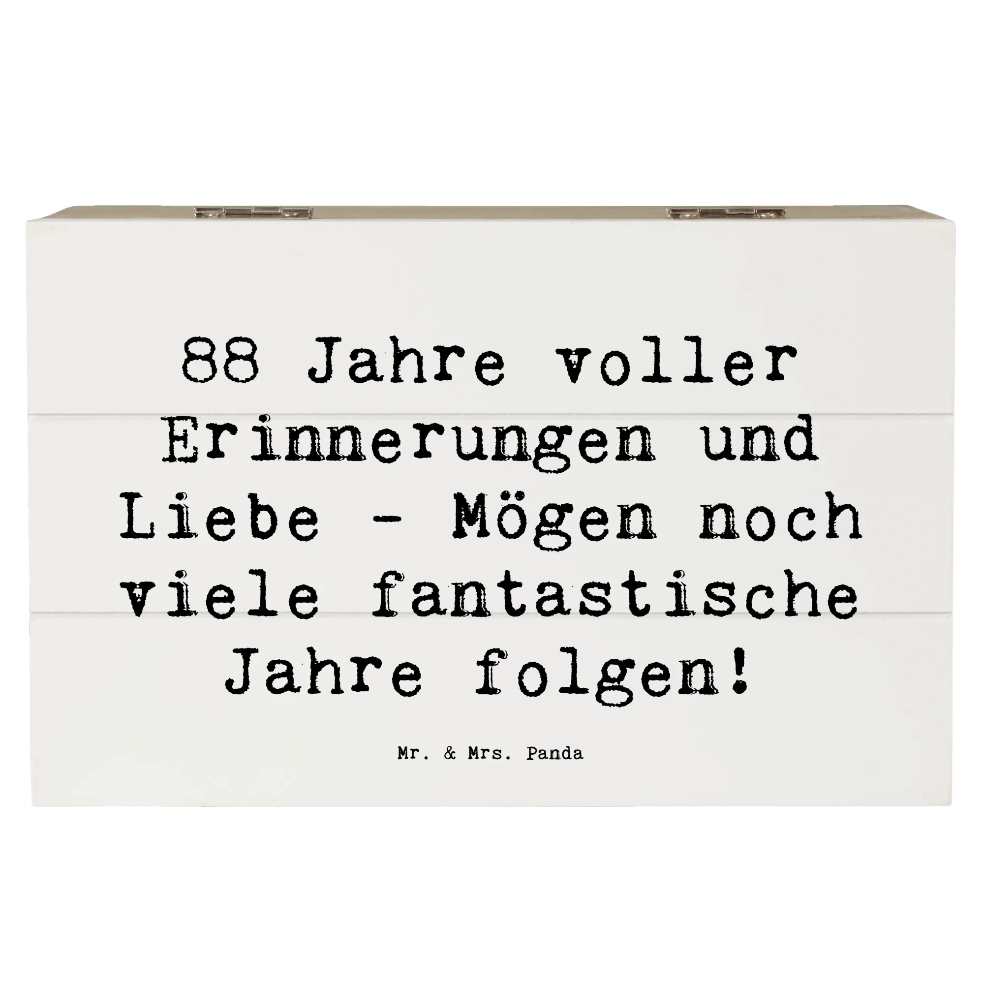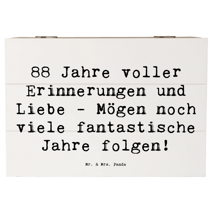 Unsere wunderschöne Holzkiste zum 88. Geburtstag von Mr. & Mrs. Panda ist das ideale Geschenk für alle, die das Leben in vollen Zügen genießen. Mit dem liebevollen Spruch '88 Jahre voller Erinnerungen und Liebe - Mögen noch viele fantastische Jahre folgen!' wird diese Kiste nicht nur zum praktischen Aufbewahrungsort, sondern auch zu einem wundervollen Erinnerungsstück.