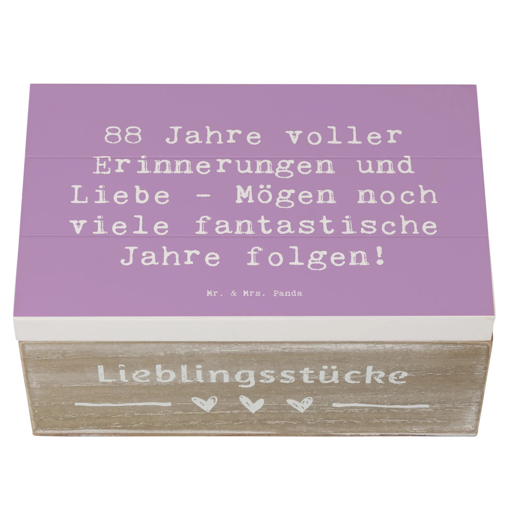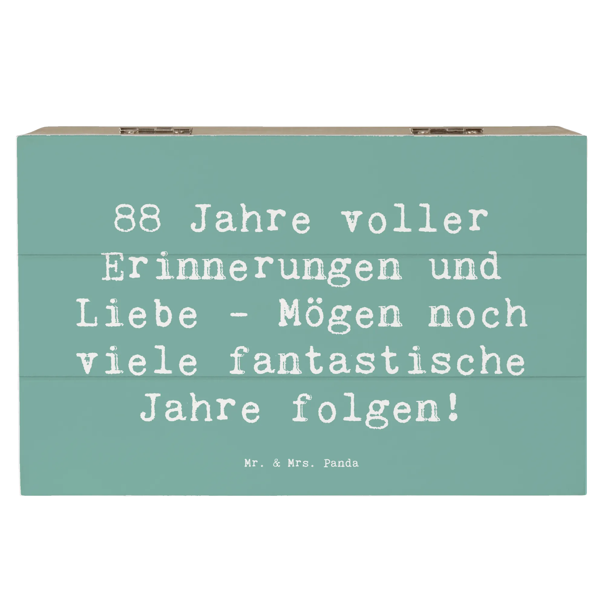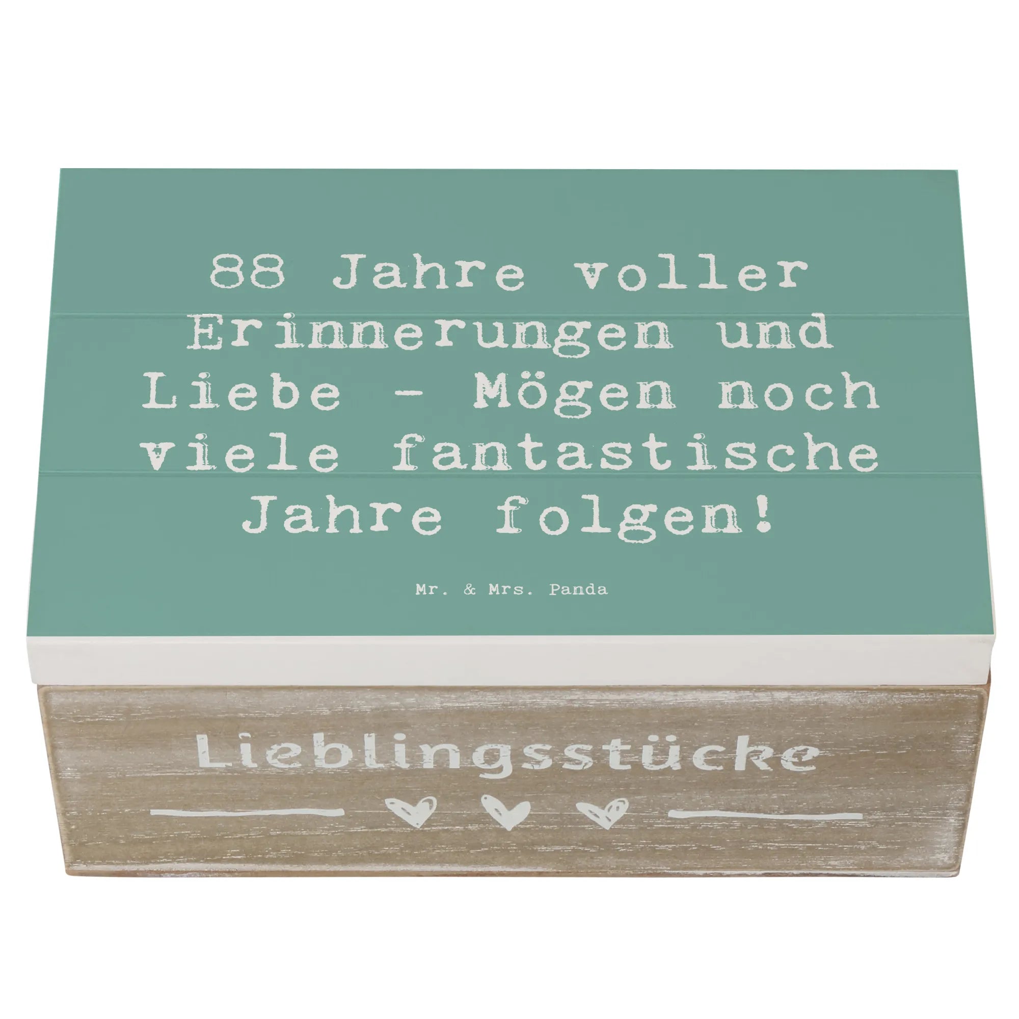 Ob für die Bewahrung von Fotos, kleinen Schätzen oder besonderen Andenken – diese Schatzkiste ist vielseitig einsetzbar. Der Slogan '88 Jahre voller Erinnerungen und Liebe - Mögen noch viele fantastische Jahre folgen!' macht sie zum idealen Geschenk für alle, die einen besonderen Tag gebührend feiern möchten.
