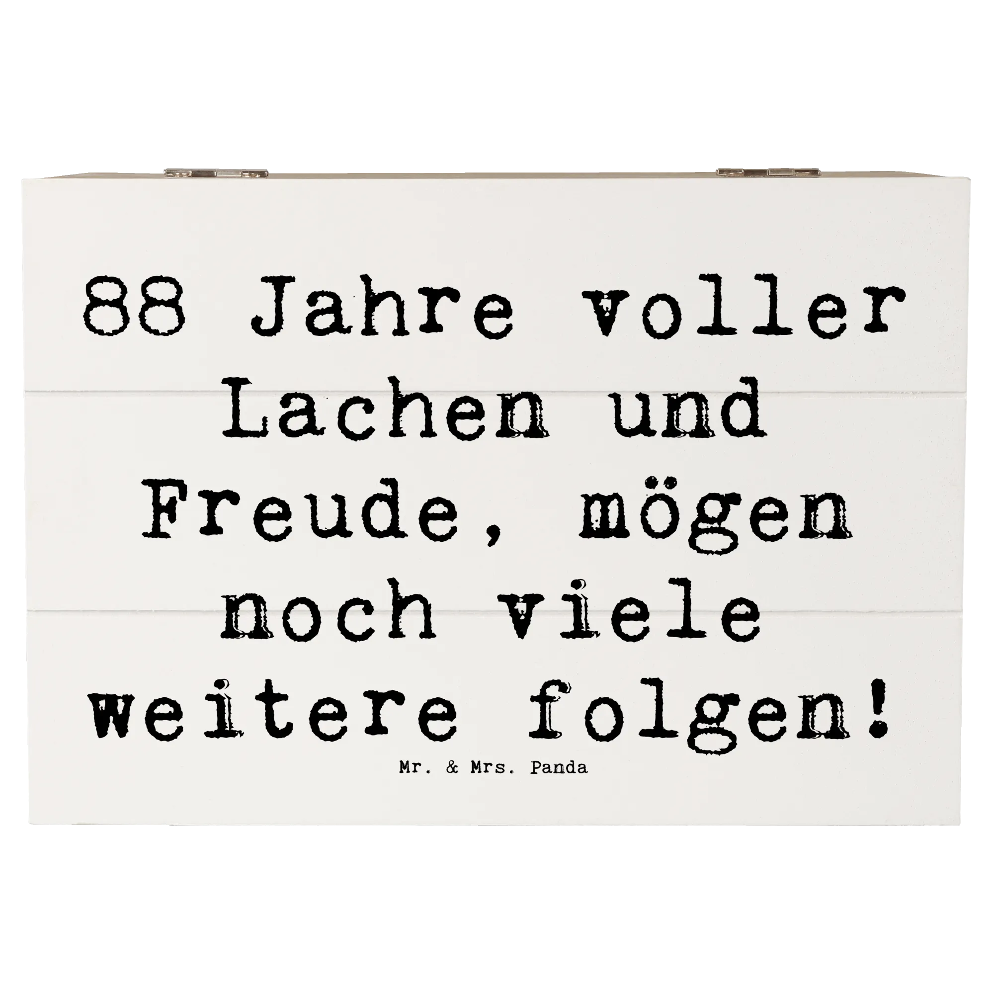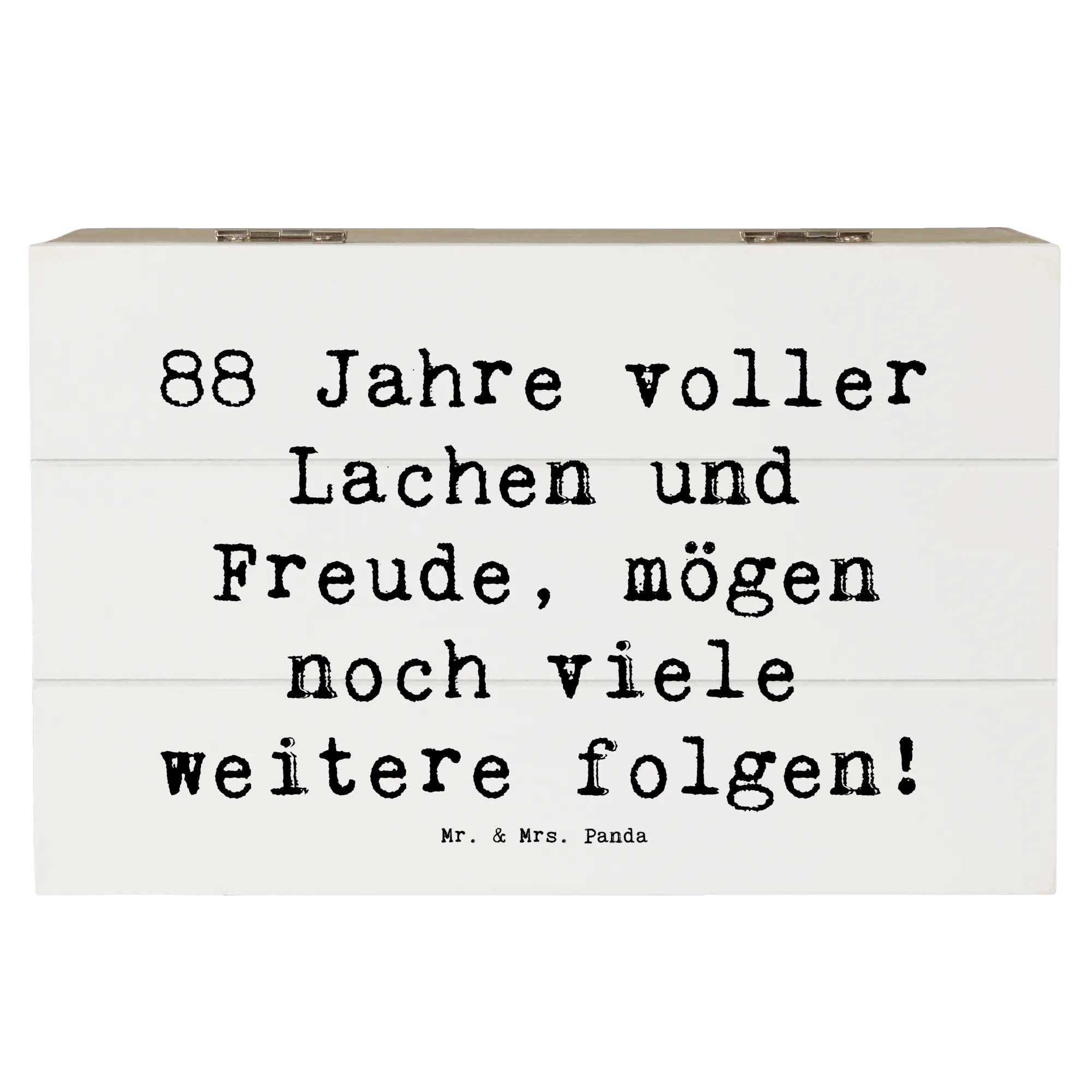 Die wunderschöne Holzkiste von Mr. & Mrs. Panda ist das perfekte Geschenk zum 88. Geburtstag! Mit dem herzlichen Spruch "88 Jahre voller Lachen und Freude, mögen noch viele weitere folgen!" bereitet sie Freude und schafft Erinnerungen. Diese Erinnerungskiste bietet den idealen Aufbewahrungsort für wertvolle Schätze aus den Jahren: Fotos, Karten, oder kleine Andenken – alles hat Platz in dieser liebevoll gestalteten Kiste.