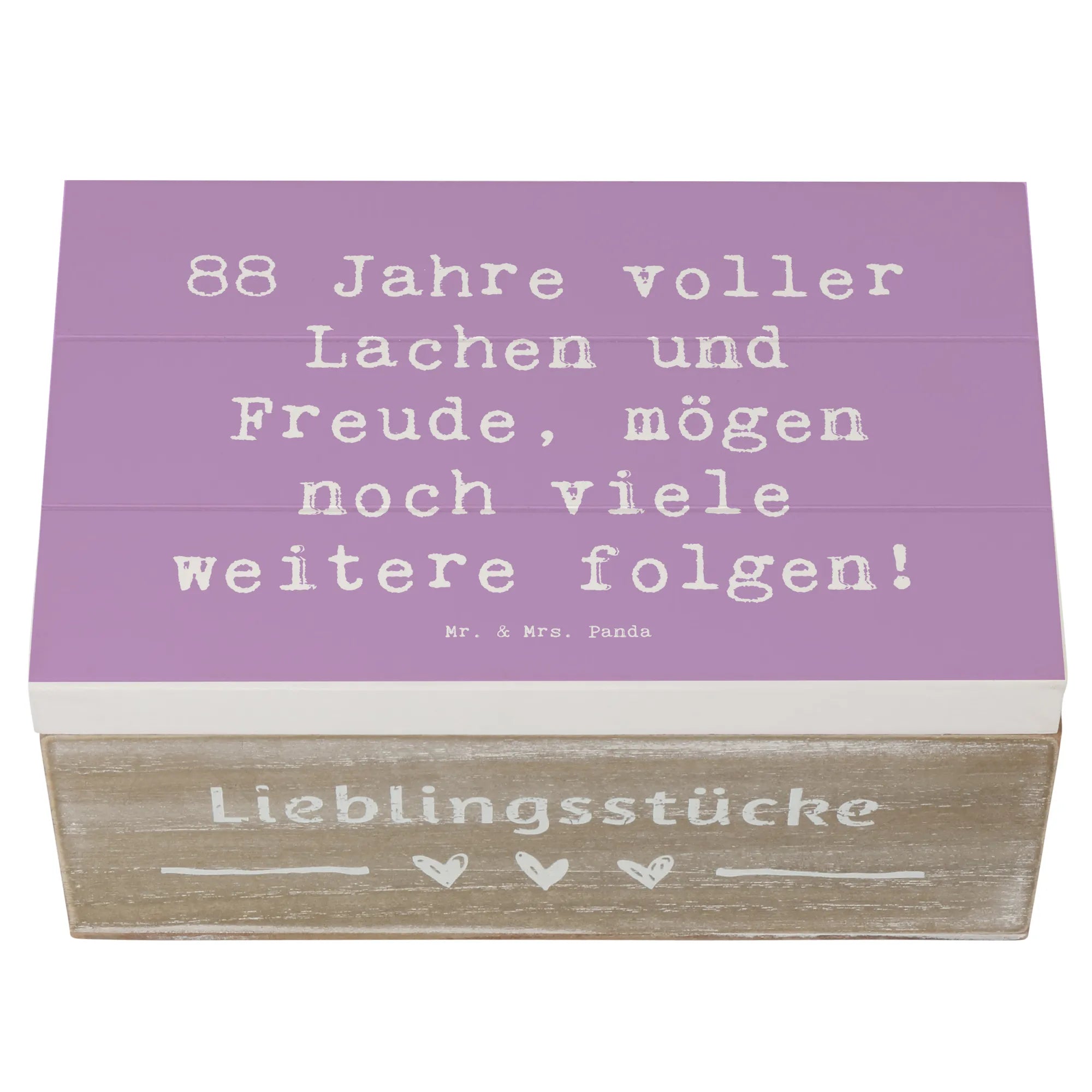 Die wunderschöne Holzkiste von Mr. & Mrs. Panda ist das perfekte Geschenk zum 88. Geburtstag. Mit dem liebevollen Spruch "88 Jahre voller Lachen und Freude, mögen noch viele weitere folgen!" wird sie zum idealen Begleiter für diesen ganz besonderen Tag.
