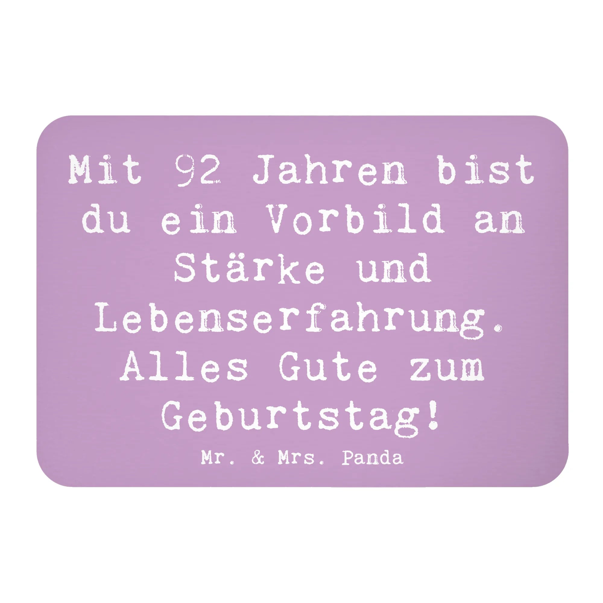 Feiere den 92. Geburtstag mit einem ganz besonderen Kühlschrankmagneten von Mr. & Mrs. Panda! 🎉 Dieser liebevoll gestaltete Magnet besticht durch seine bunten Farben und zeigt den tollen Spruch: 'Mit 92 Jahren bist du ein Vorbild an Stärke und Lebenserfahrung. Alles Gute zum Geburtstag!' Ideal für alle, die einen lieben Menschen zu diesem beeindruckenden Ehrentag überraschen möchten.