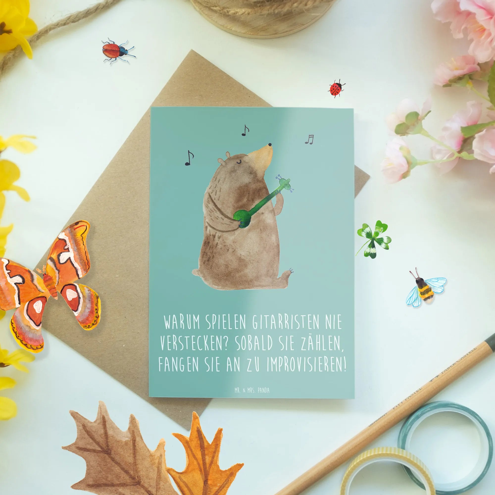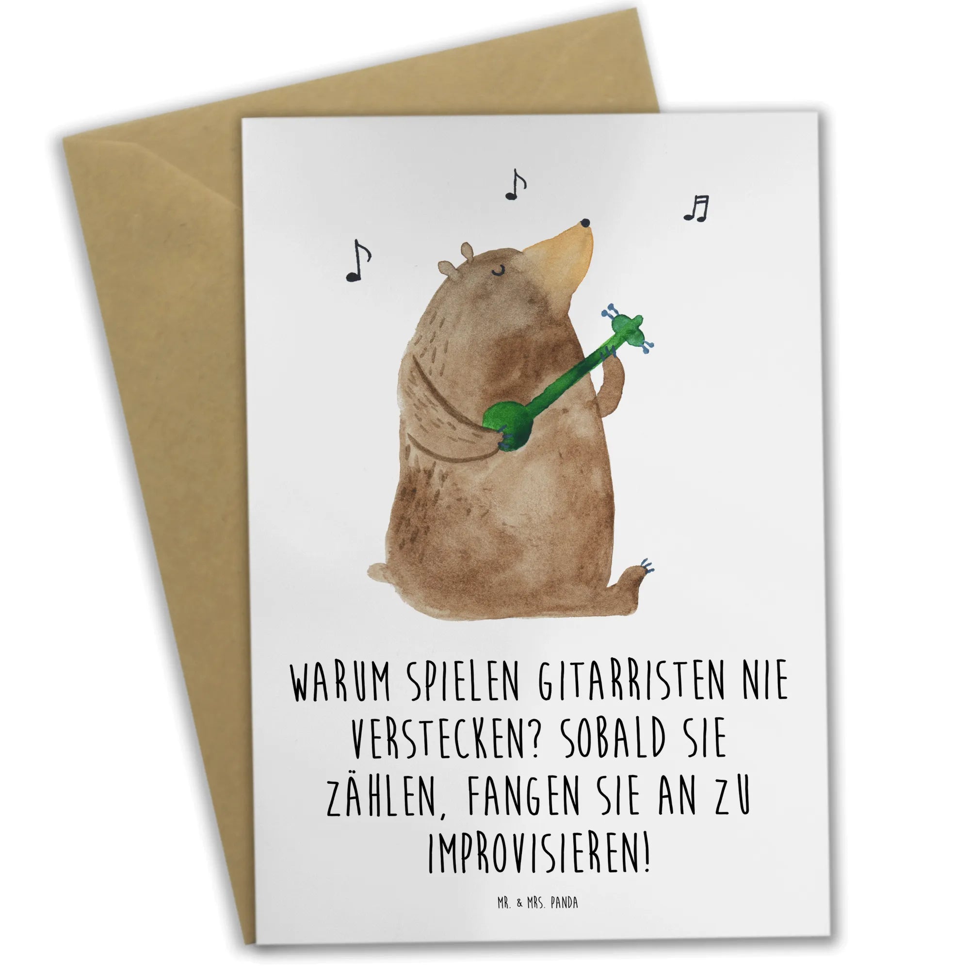 Du bist auf der Suche nach dem perfekten Geschenk für einen Musiker oder Musikliebhaber? Dann ist die wunderschöne Grußkarte von Mr. & Mrs. Panda mit dem Motiv Gitarre genau das Richtige für dich!