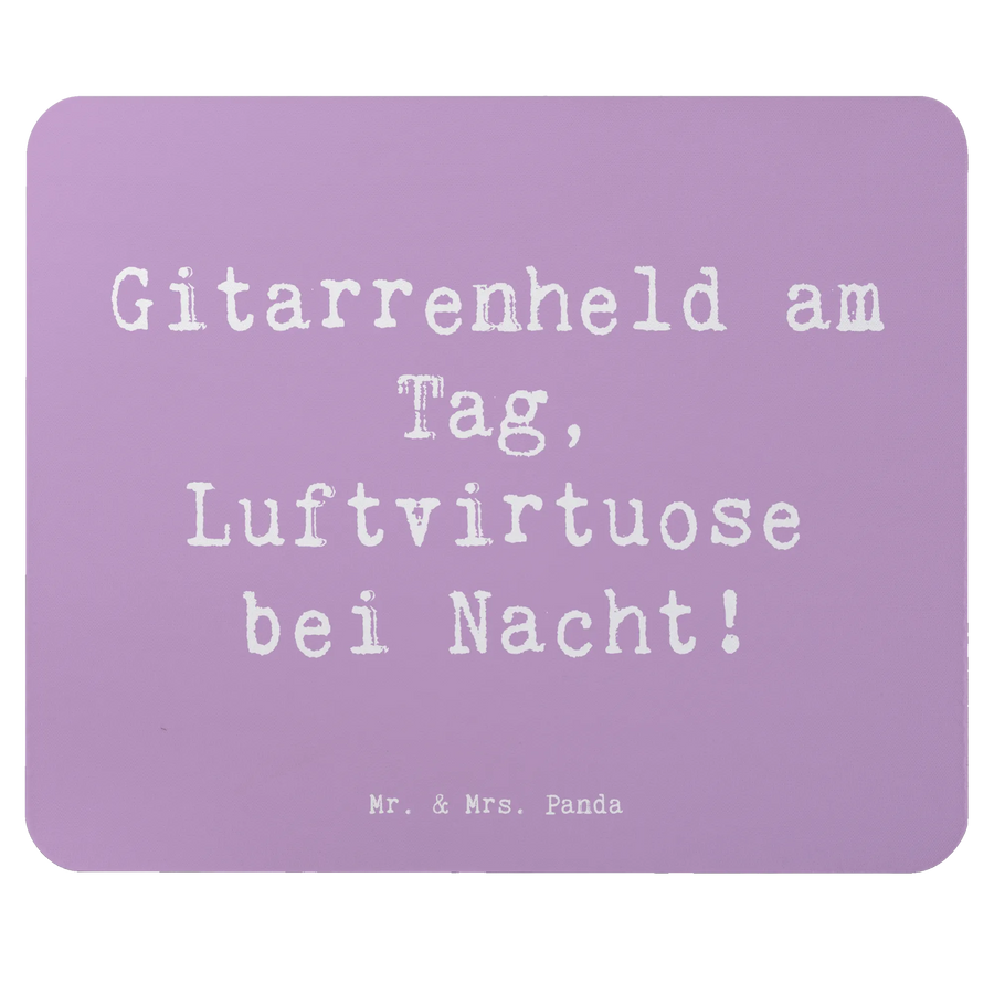 Suchst Du ein Mauspad, das Deine Liebe zur Gitarre und zur Musik zeigt? Unser Mauspad Gitarre aus der Kollektion Musizieren & Instrumente von Mr. & Mrs. Panda vereint Design und Funktionalität. Mit dem liebevollen Spruch "Gitarrenheld am Tag, Luftvirtuose bei Nacht!" und der sanften Hintergrundfarbe Lavendeltraum bringt es musikalische Stimmung an jeden Schreibtisch.