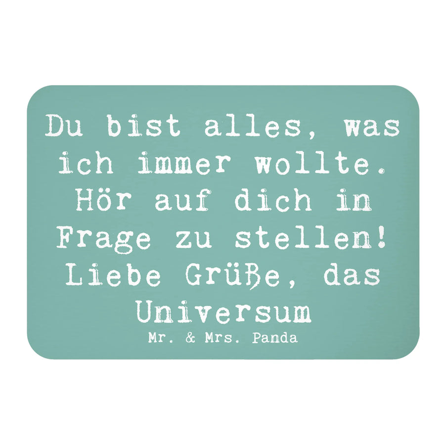 Mit den Worten "Du bist alles, was ich immer wollte. Hör auf dich in Frage zu stellen! Liebe Grüße, das Universum!" zaubert er bei jedem Blick ein Lächeln ins Gesicht und erinnert dich daran, positiv zu bleiben.