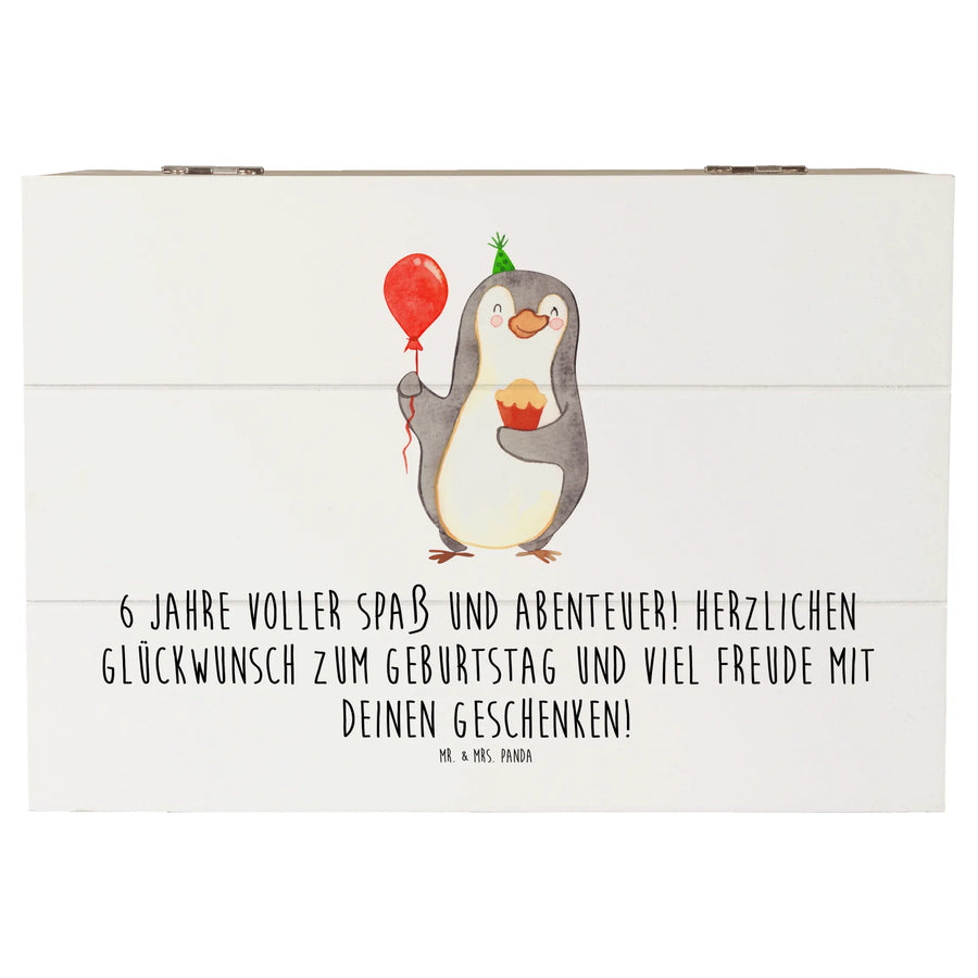 Du suchst nach dem perfekten Geschenk zum 6. Geburtstag? Dann ist die wunderschöne Holzkiste von Mr. & Mrs. Panda genau das Richtige für dich! Bedruckt mit dem liebevollen Motiv "6 Jahre voller Spaß und Abenteuer! Herzlichen Glückwunsch zum Geburtstag und viel Freude mit deinen Geschenken!" wird diese Kiste zum idealen Begleiter für jeden kleinen Schatz.