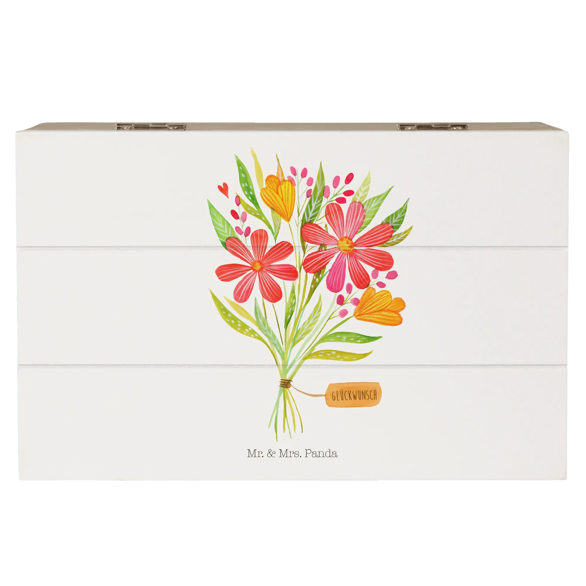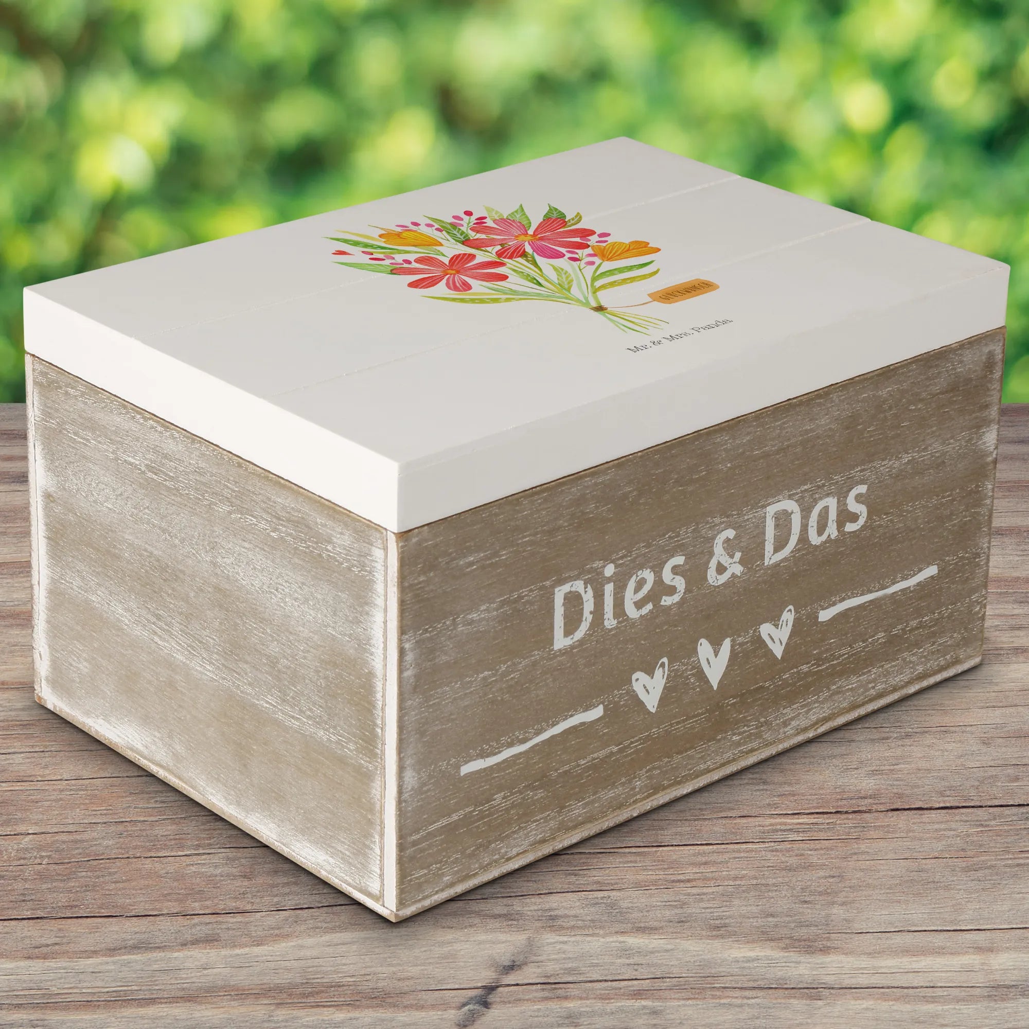Die wunderschöne Holzkiste mit Blumenstrauß-Motiv aus der Kollektion Wild & Free von Mr. & Mrs. Panda ist das perfekte Geschenk für jeden Anlass. Sie erinnert an die Schönheit der Natur und verkörpert Dankbarkeit in ihrer besten Form.