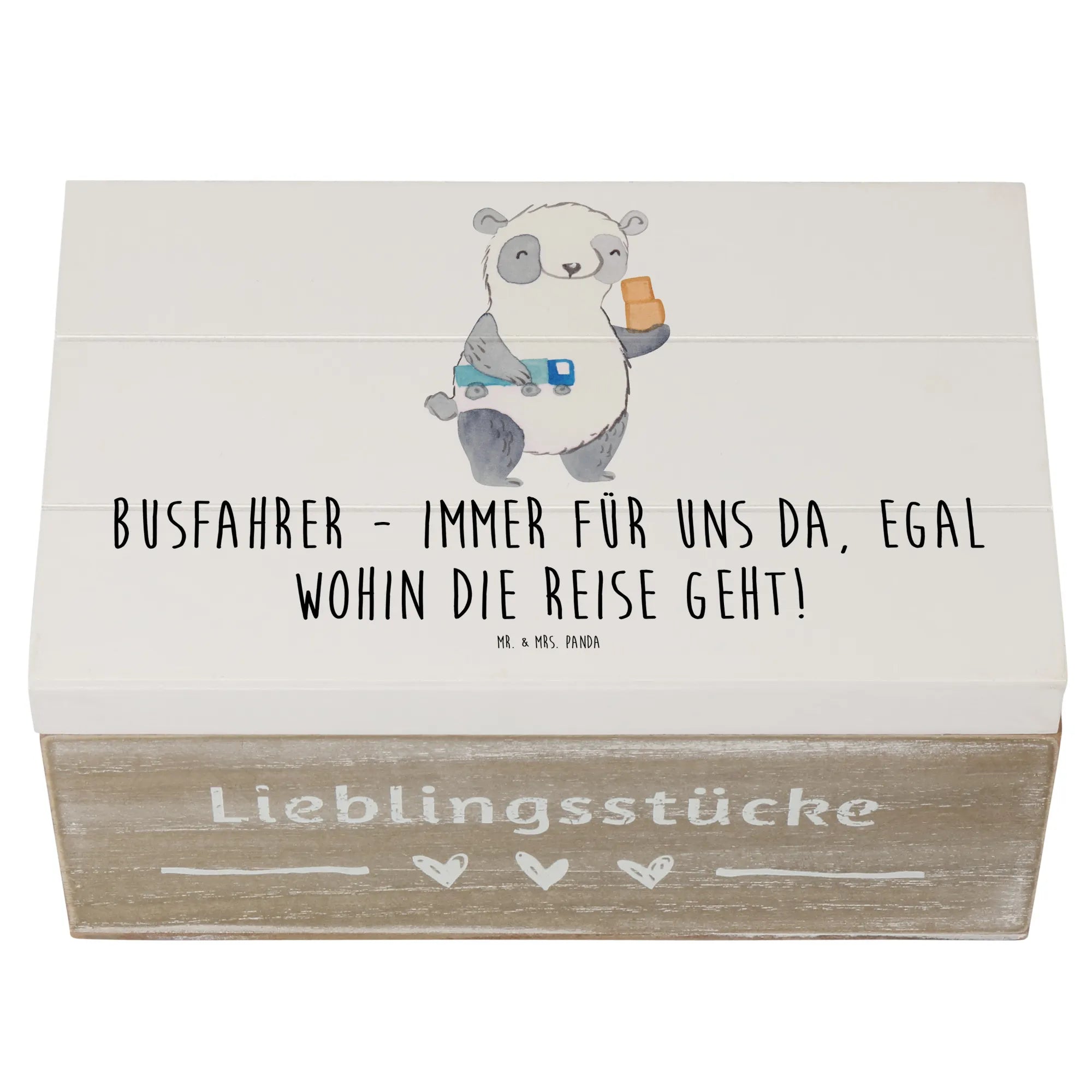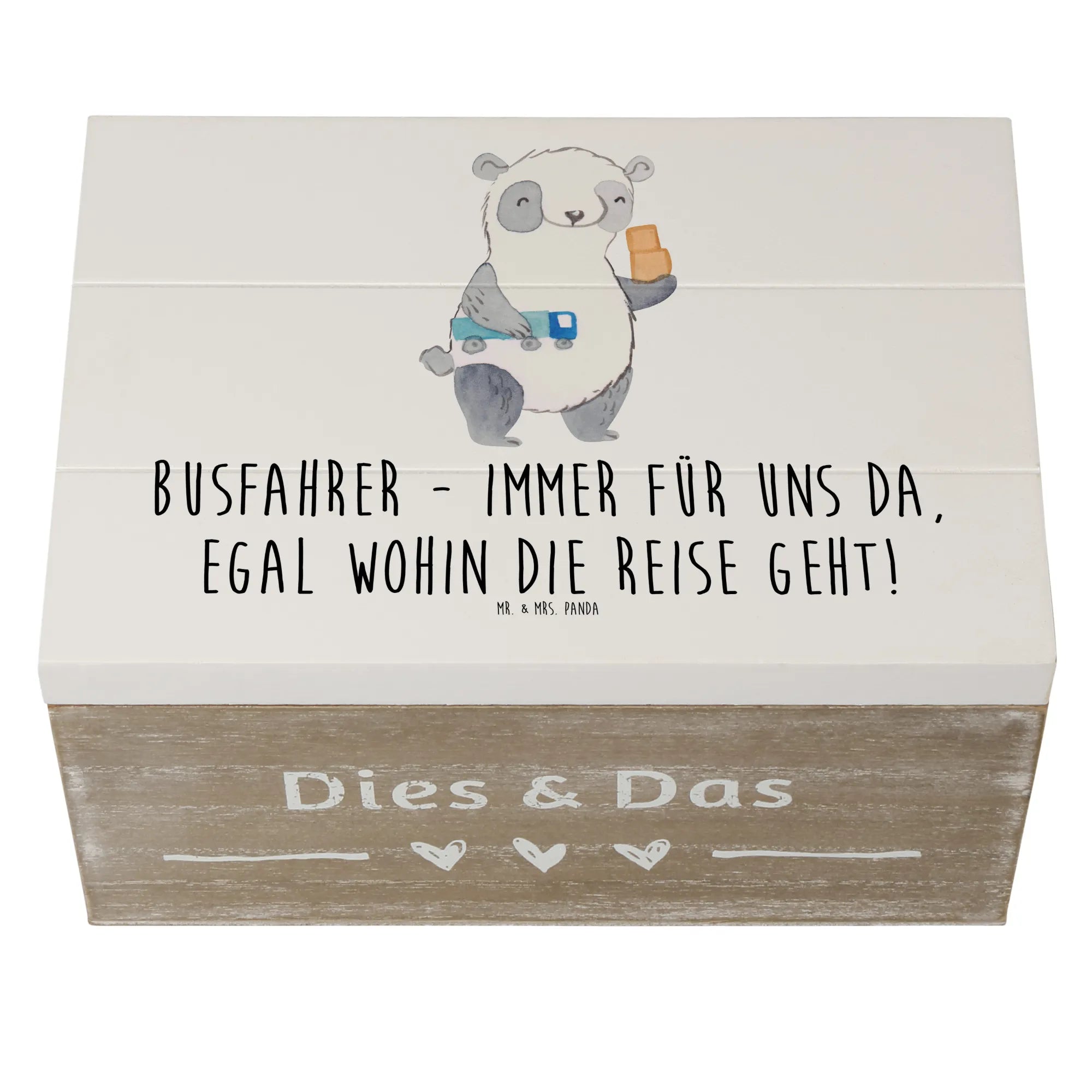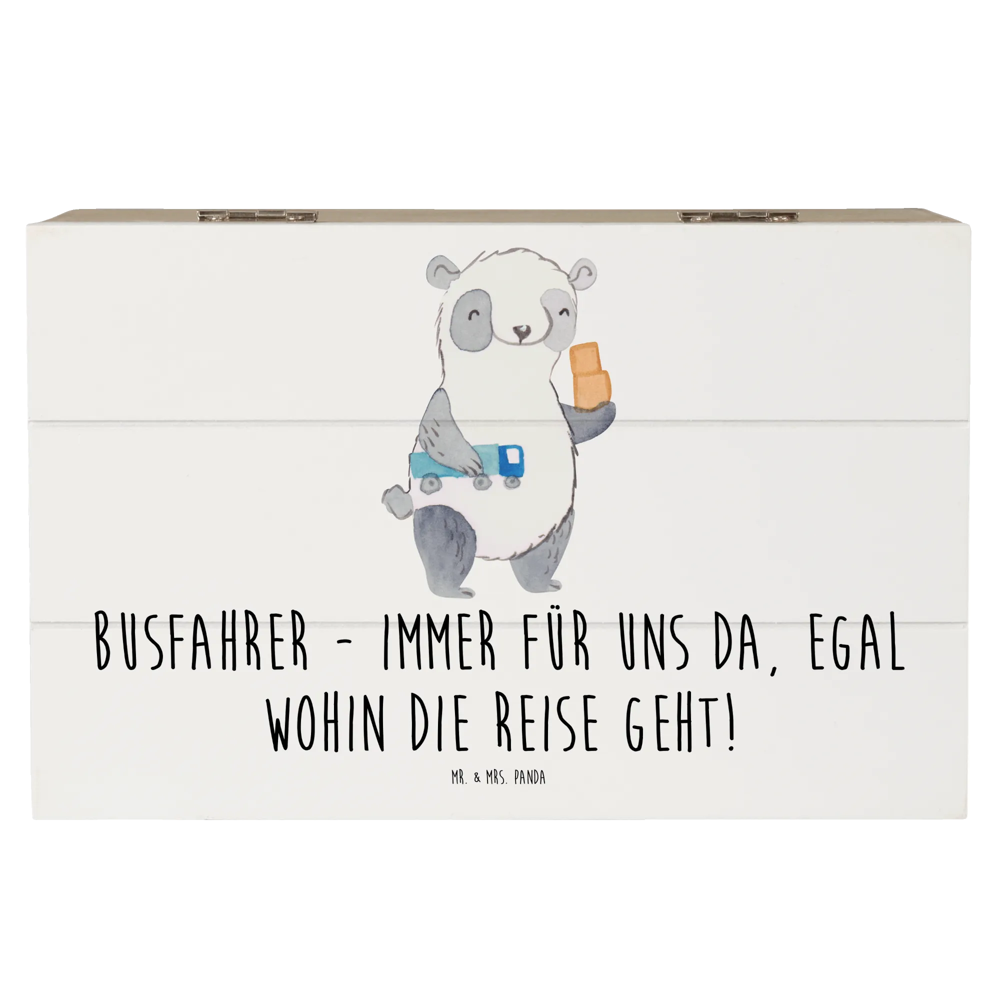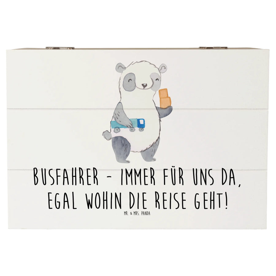 Die wunderschöne Holzkiste von Mr. & Mrs. Panda mit dem Motiv "Busfahrer - Immer für uns da, egal wohin die Reise geht!" ist das perfekte Geschenk für all jene, die ihren Dank auf eine besondere Art und Weise ausdrücken möchten.