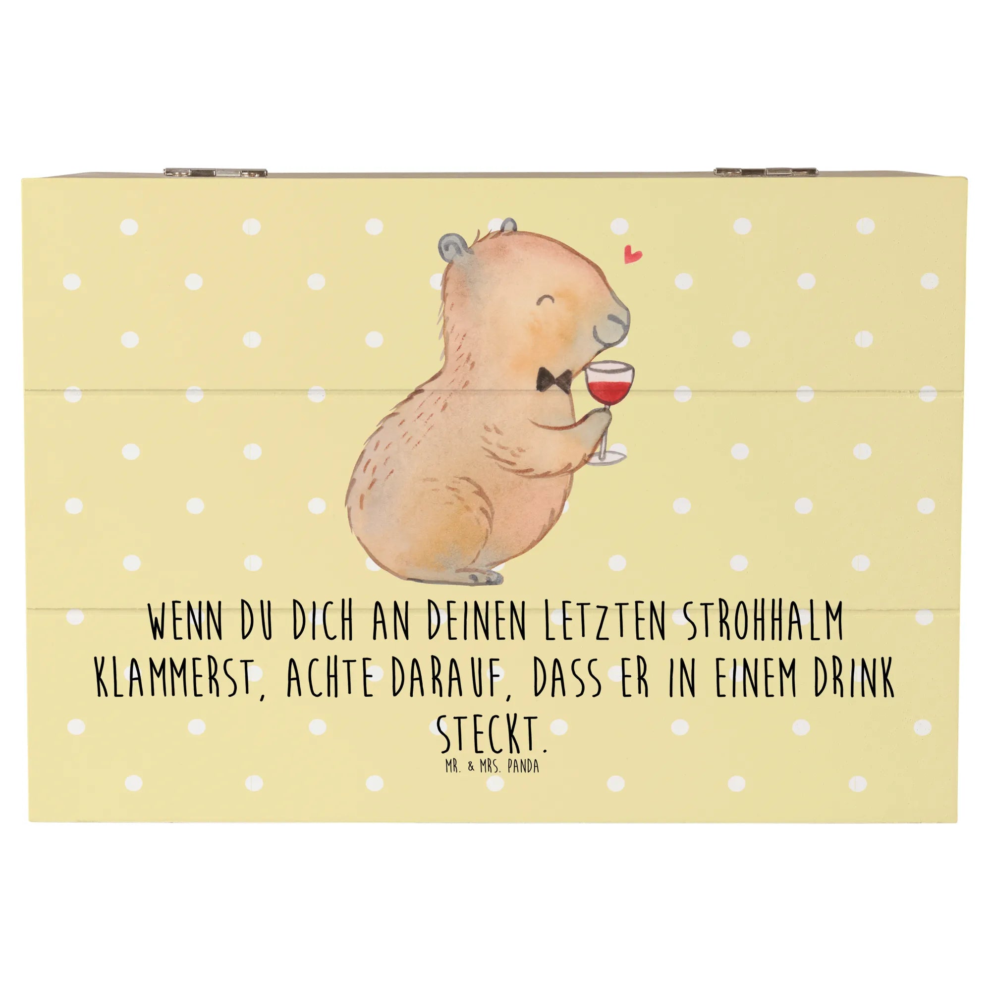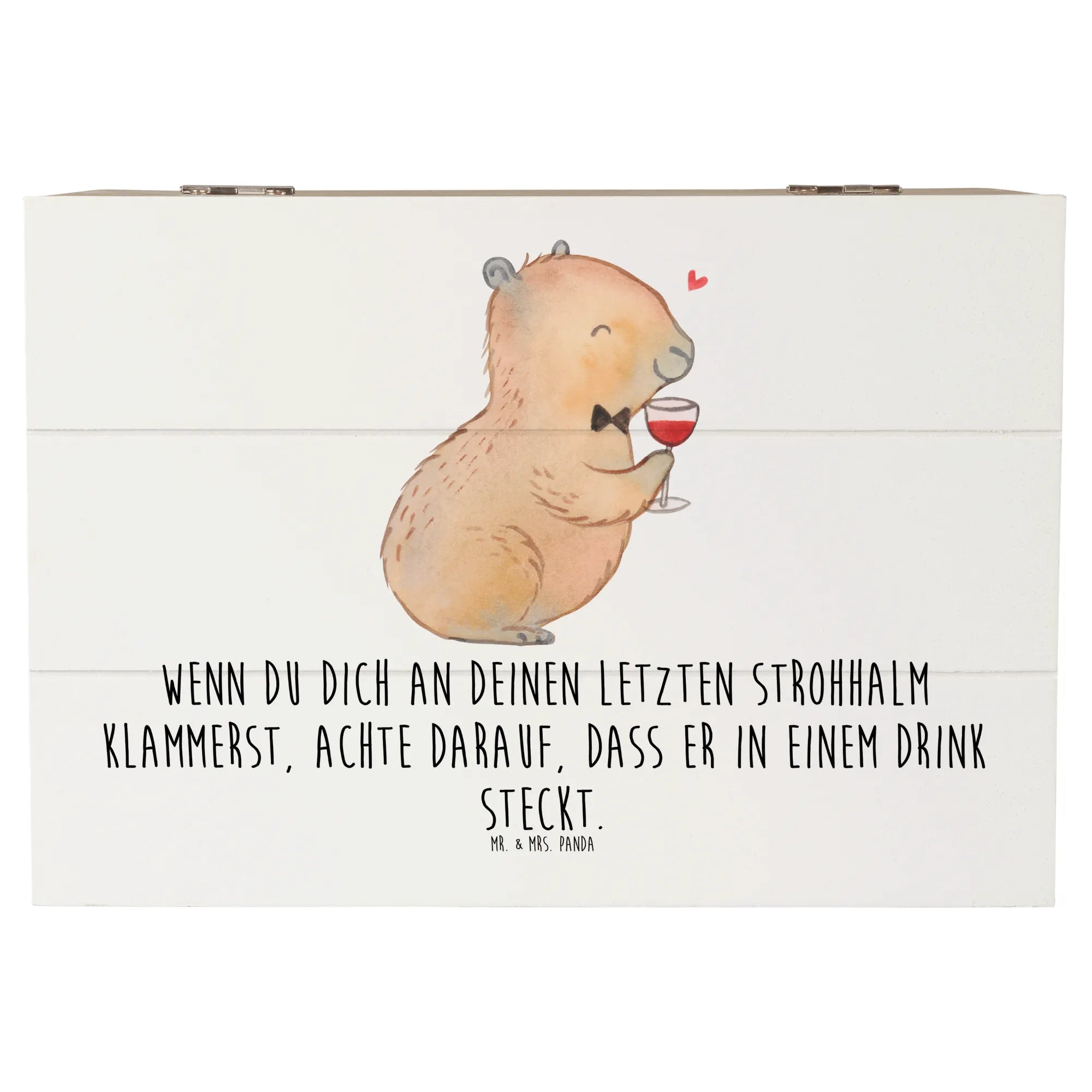 Sie misst 22 x 15 cm und ist aus robuster Premium Hartfaser gefertigt, was sie besonders langlebig und stabil macht. Die handgezeichnete Capybara mit Fliege, die ein Glas Wein hält, verleiht der Kiste einen charmanten Charakter und versprüht gute Laune. Dieser lustige Blickfang ist ideal für Weinliebhaber und Freunde des Lebensstils.