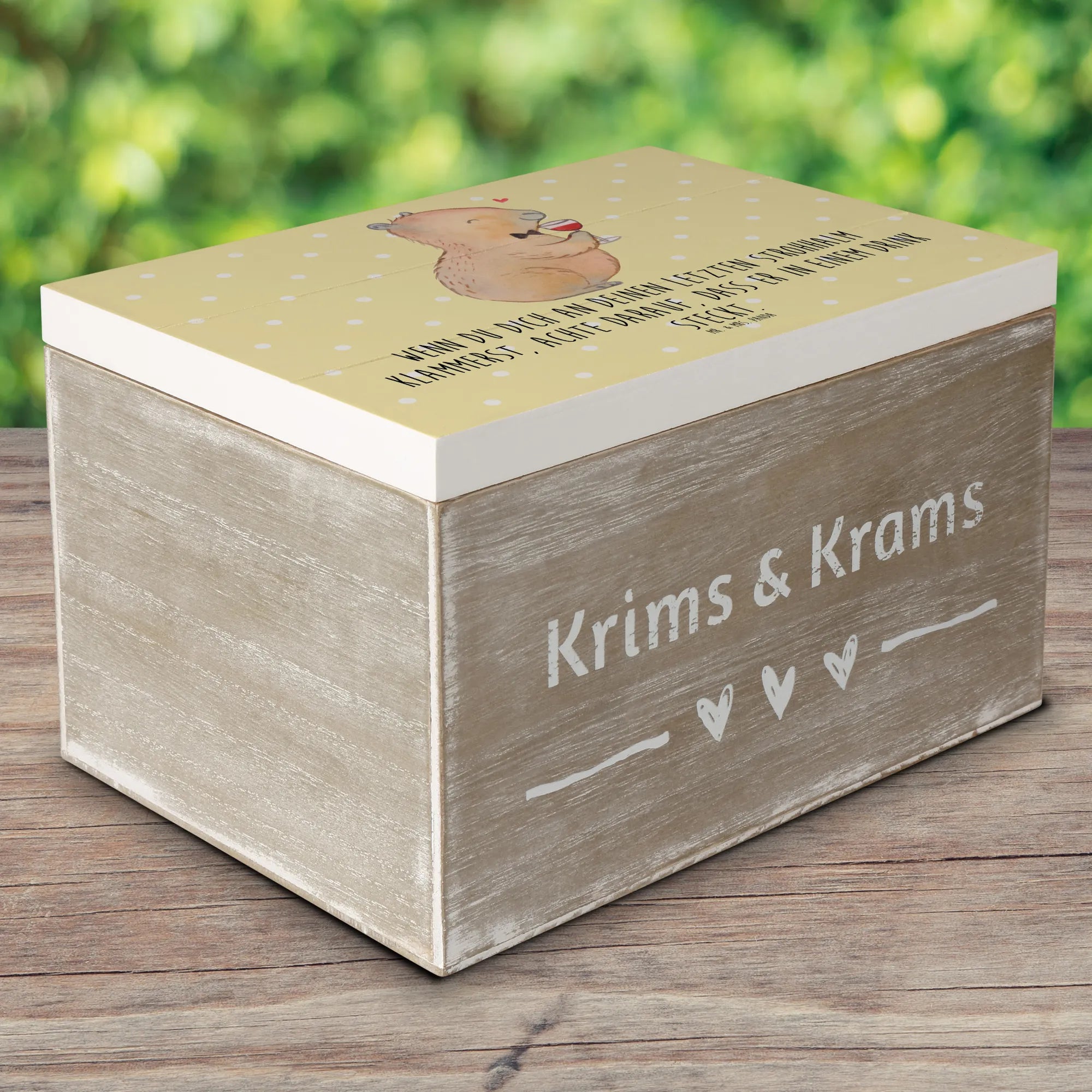Die Holzkiste von Mr. & Mrs. Panda ist ein kleiner Schatz in jedem Zuhause! Mit einem Maß von 190 mm x 120 mm x 100 mm und einem Gewicht von 350 g ist sie die perfekte Größe, um all deine besonderen Momente festzuhalten. Ob Fotografien, kleine Erinnerungsstücke oder Bestimmungen für bestimmte Anlässe – diese Kiste aus robuster Holzfaser bietet viel Platz für deine Schätze. Mit liebevollen Motiven und Sprüchen verziert, bringt sie Freude und Farbe in jedes Zimmer. Ihr besonderes Design mit Einschlagscharniere ermöglicht ein müheloses Öffnen und Schließen. Diese Kisten sind nicht nur schön, sondern auch nachhaltig und perfekt als wiederverwendbare Geschenkbox für deine Liebsten. Sie ist nicht abschließbar, damit deine Erinnerungen immer sichtbar bleiben. Pflege sie mit einem feuchten Tuch, um ihre Schönheit zu bewahren! Es gibt diese Kiste auch in verschiedenen Größen.
