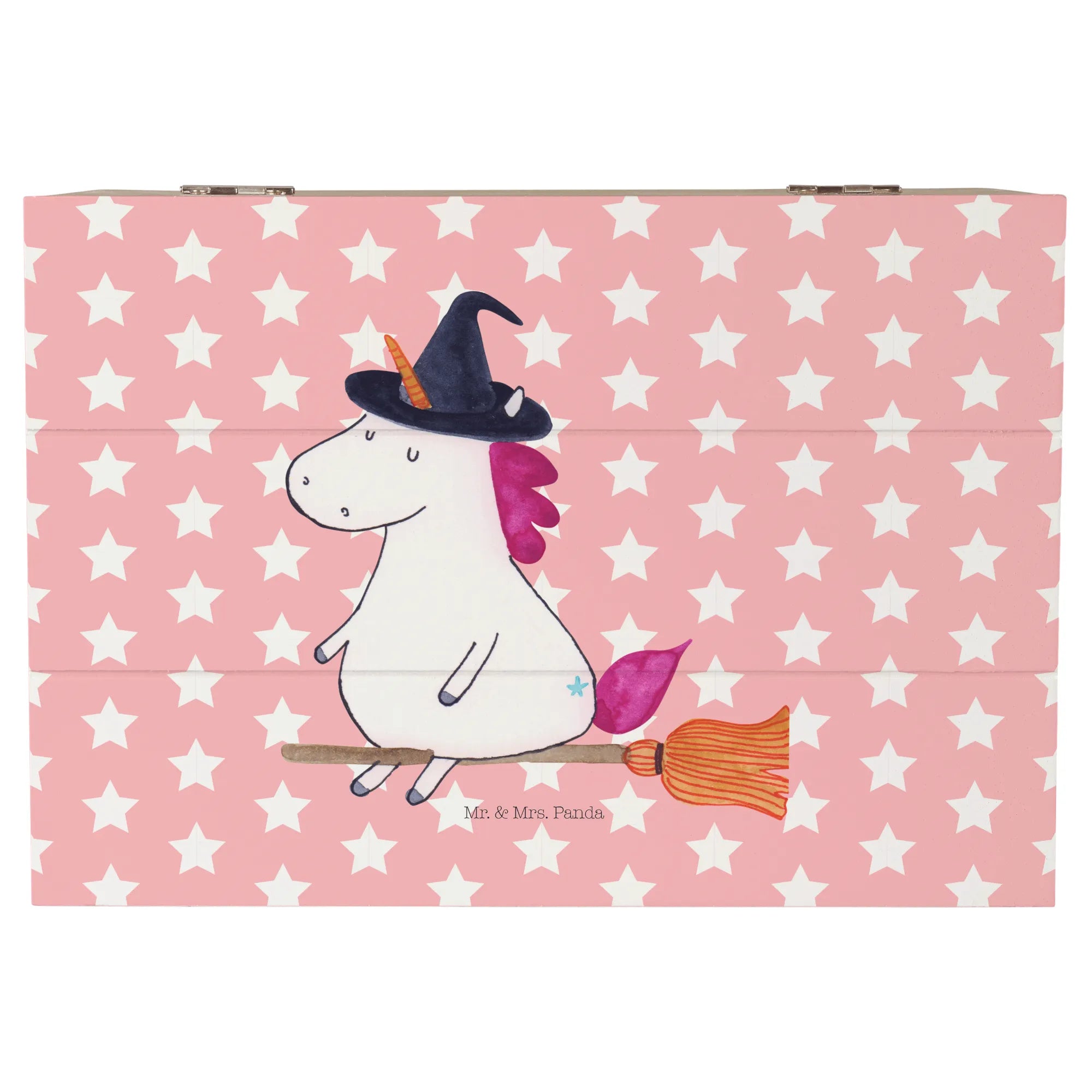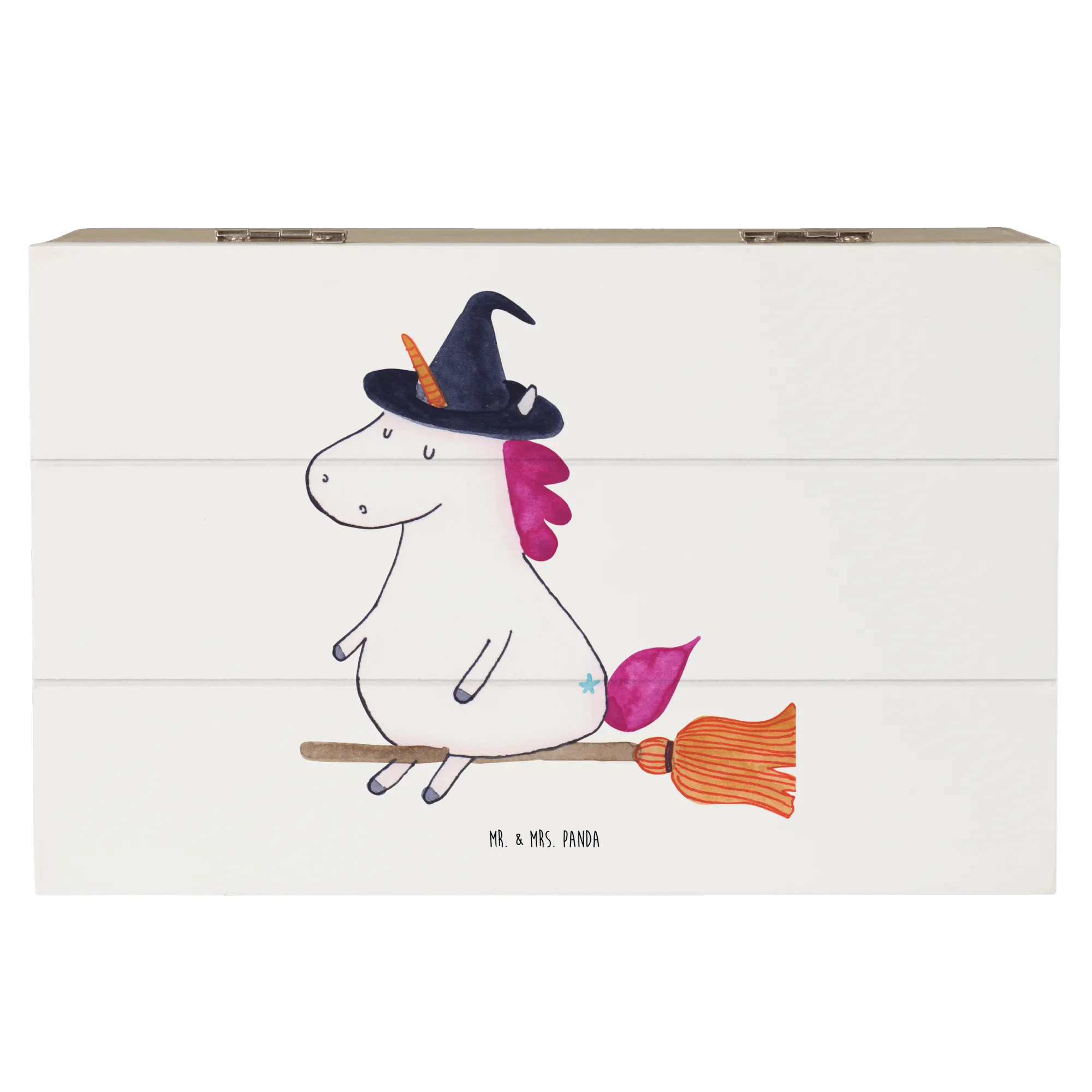 Entdecke unsere zauberhafte Holzkiste mit dem einzigartigen Einhorn-Hexe-Motiv aus der bezaubernden Einhorn-Kollektion von Mr. & Mrs. Panda!