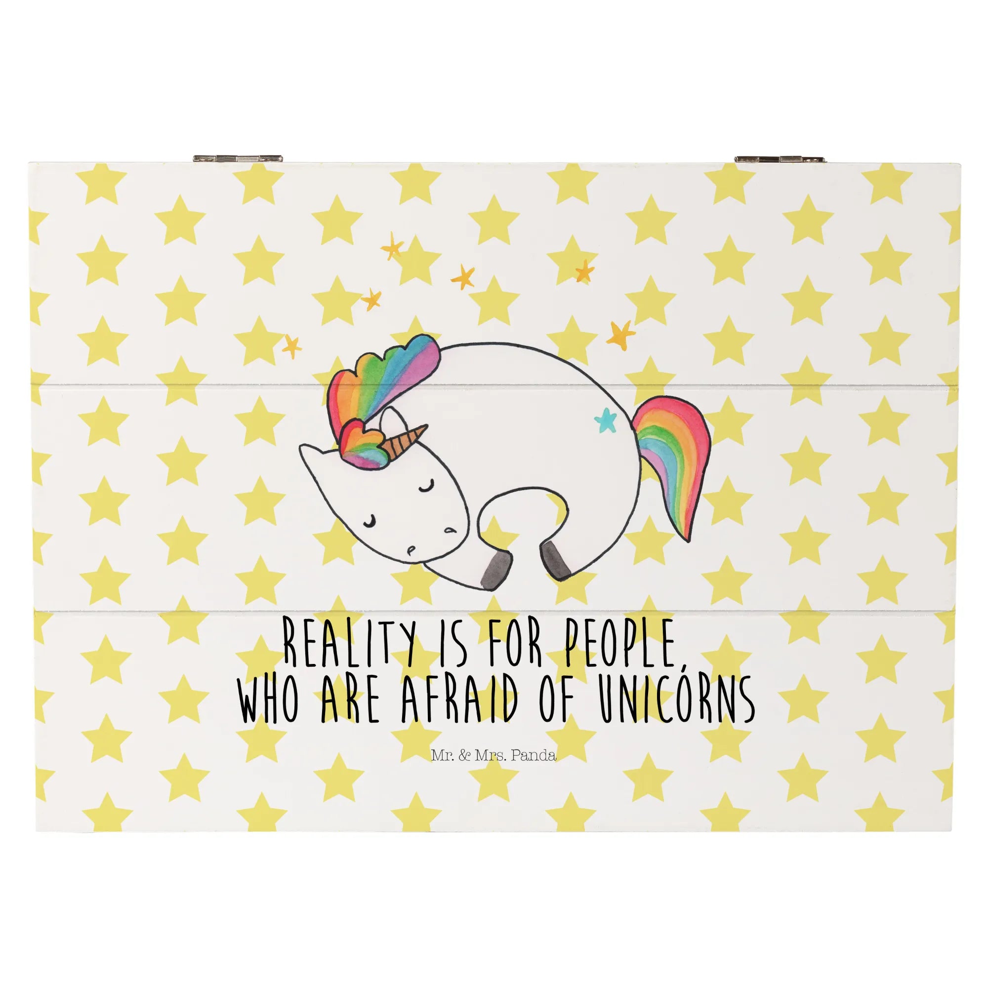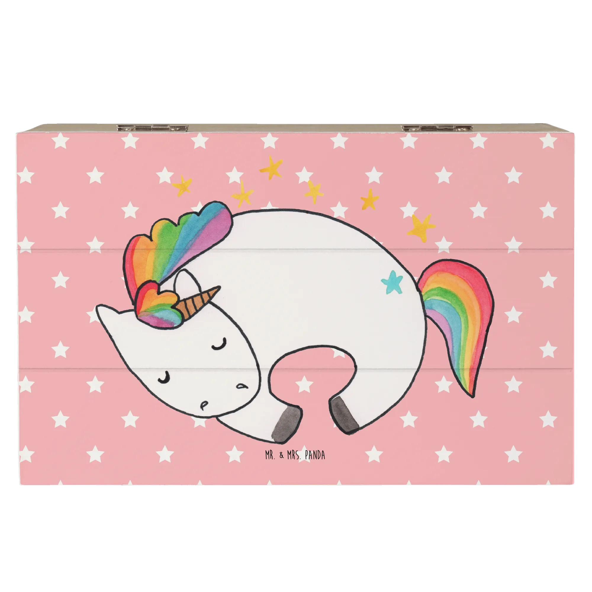Du suchst nach dem perfekten Geschenk für einen Einhorn-Fan oder möchtest einfach die zauberhafte Welt der Einhörner in dein Zuhause bringen? Dann ist die Holzkiste "Einhorn Nacht" aus der einzigartigen Einhorn-Kollektion von Mr. & Mrs. Panda genau das Richtige für dich! Diese wunderschöne Holzkiste, bedruckt mit dem niedlichen Motiv eines schlafenden Einhorns, erweckt nicht nur die Träume der kleinen und großen Einhornliebhaber, sondern bietet auch den idealen Raum, um all die besonderen Erinnerungen aufzubewahren.