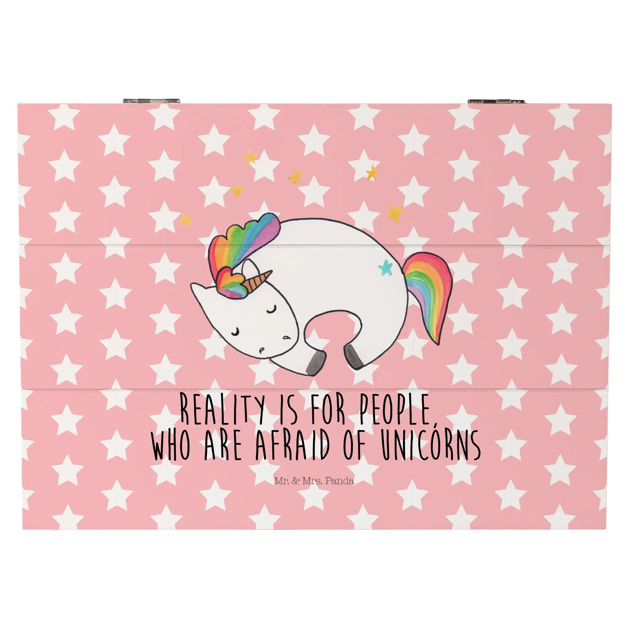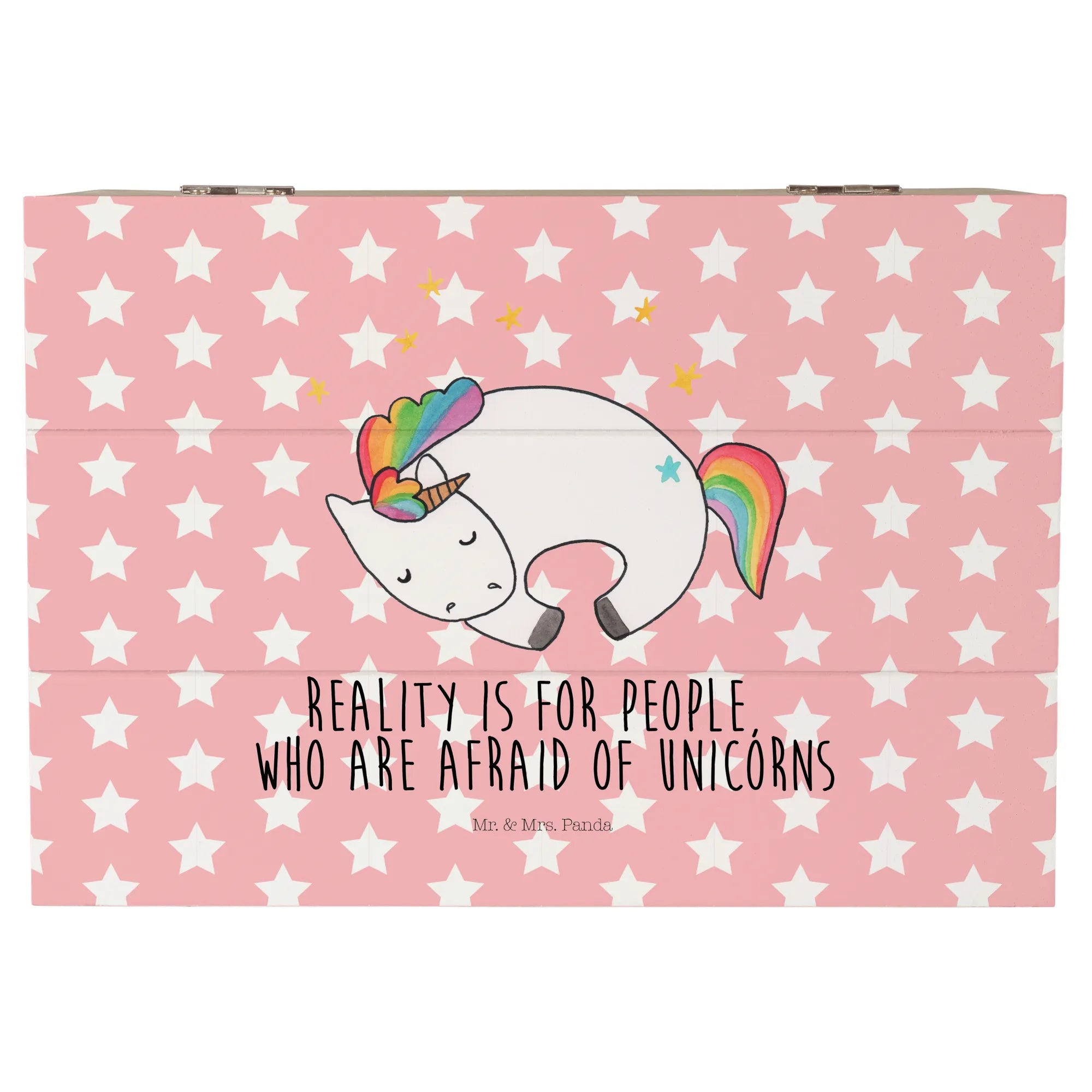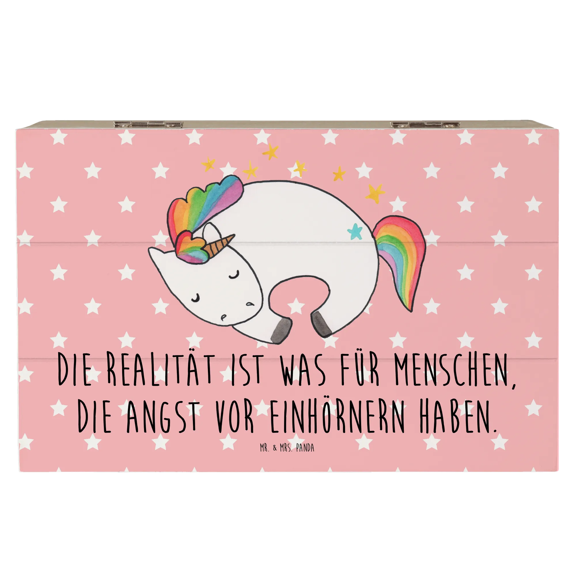 Träumst Du von einer Schatztruhe, die nicht nur praktisch ist, sondern auch das Herz berührt? Unsere Holzkiste „Einhorn Nacht“ aus der Einhorn - Kollektion von Mr. & Mrs. Panda ist genau so ein zauberhaftes Stück. Das niedliche, schlafende Einhorn auf rotem Pastell trägt den frechen Spruch „Die Realität ist was für Menschen, die Angst vor Einhörnern haben.“ und den Hinweis „Pssst... nicht so laut, sonst weckt ihr mein Einhorn!“. Ein Design, das perfekt zu Menschen passt, die lieber träumen als nur die Realität zu leben.