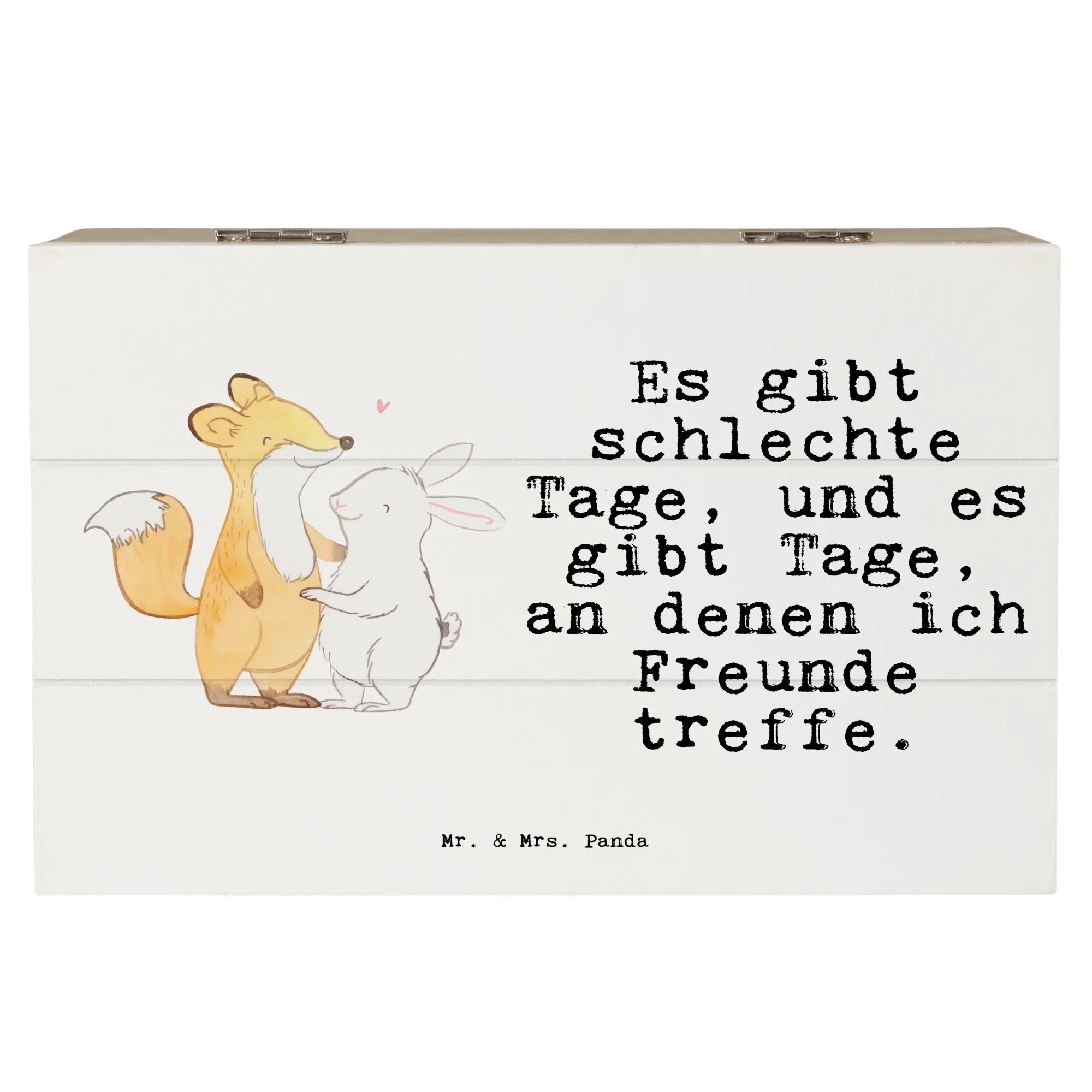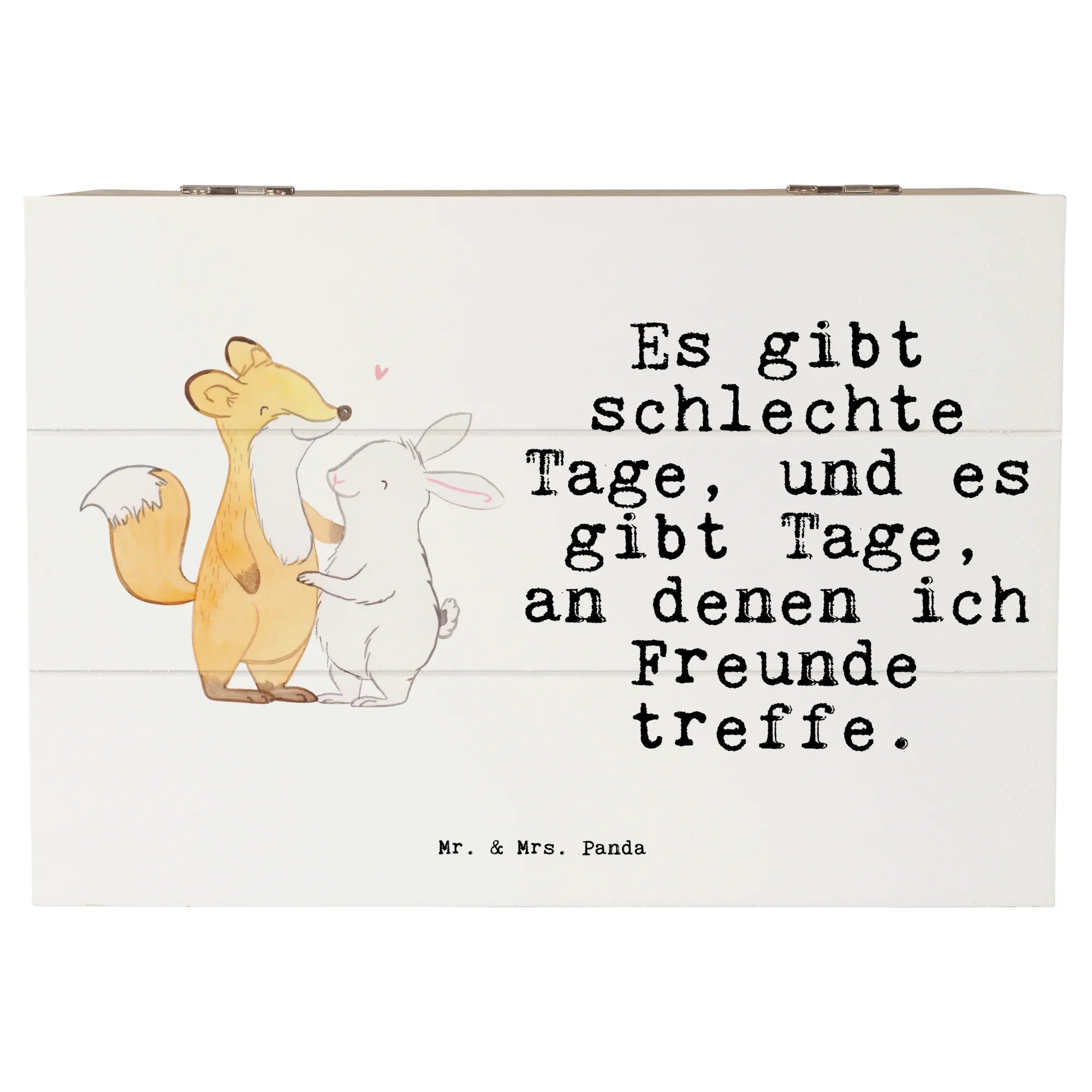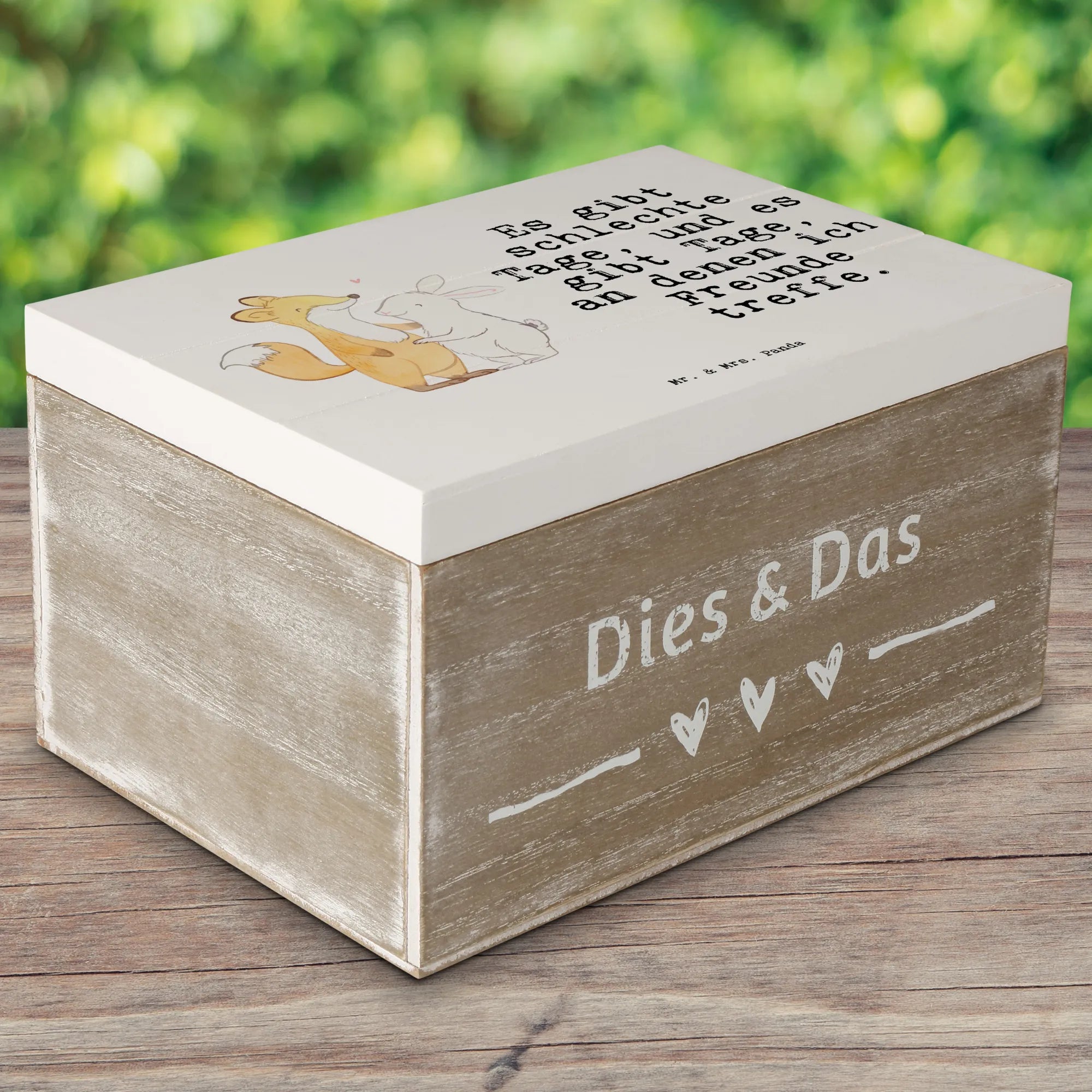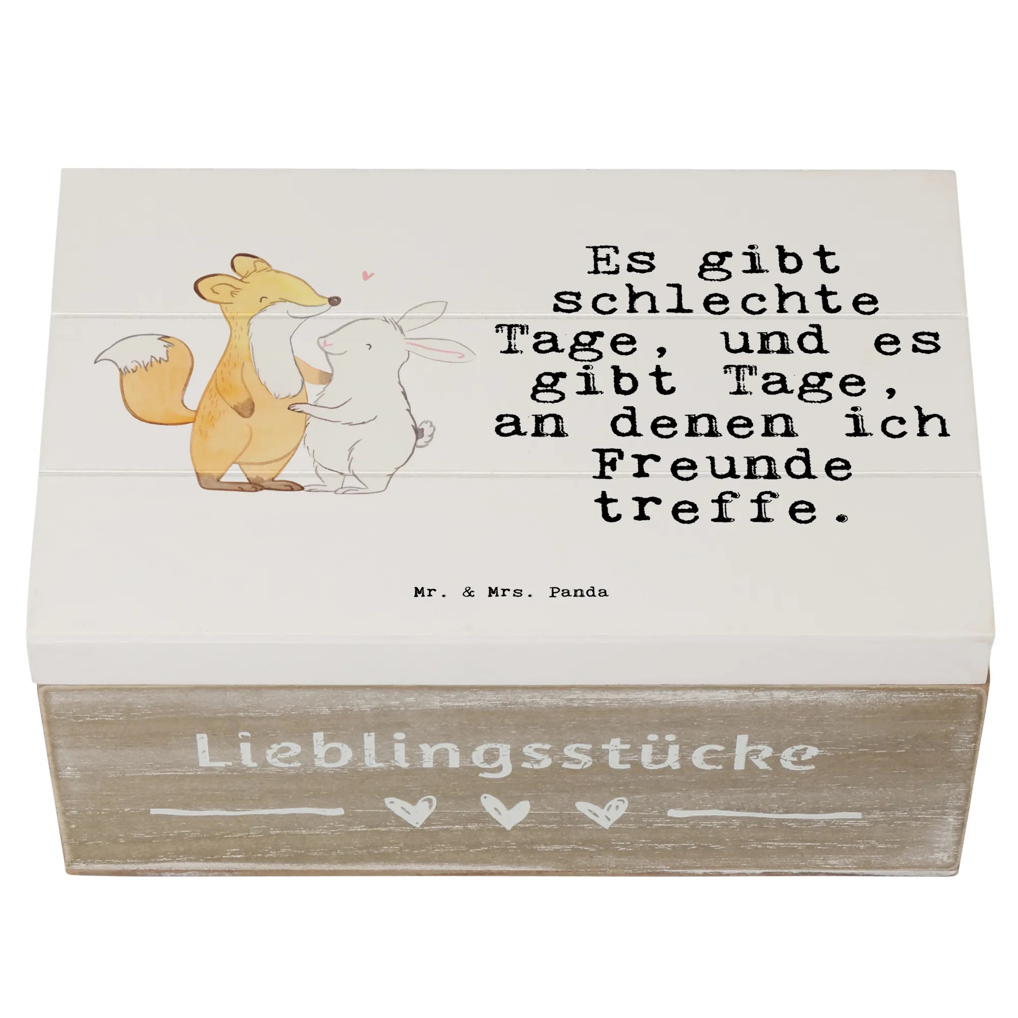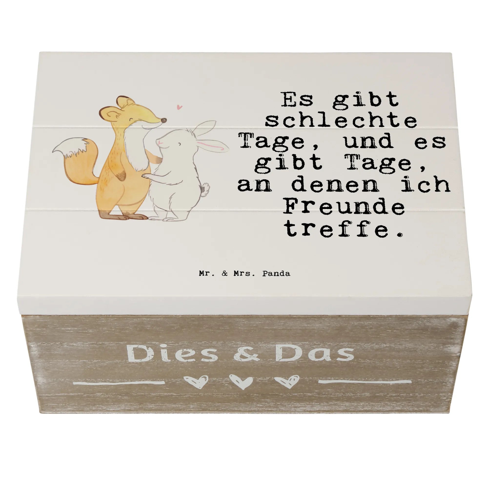 Entdecke die zauberhafte Holzkiste von Mr. & Mrs. Panda, die perfekte Erinnerungskiste für all deine besonderen Momente! Mit dem süßen Motiv "Fuchs Hase Freunde treffen Tage" bringt diese Kiste nicht nur Freude in dein Zuhause, sondern ist auch ein toller Aufbewahrungsort für all deine Schätze.