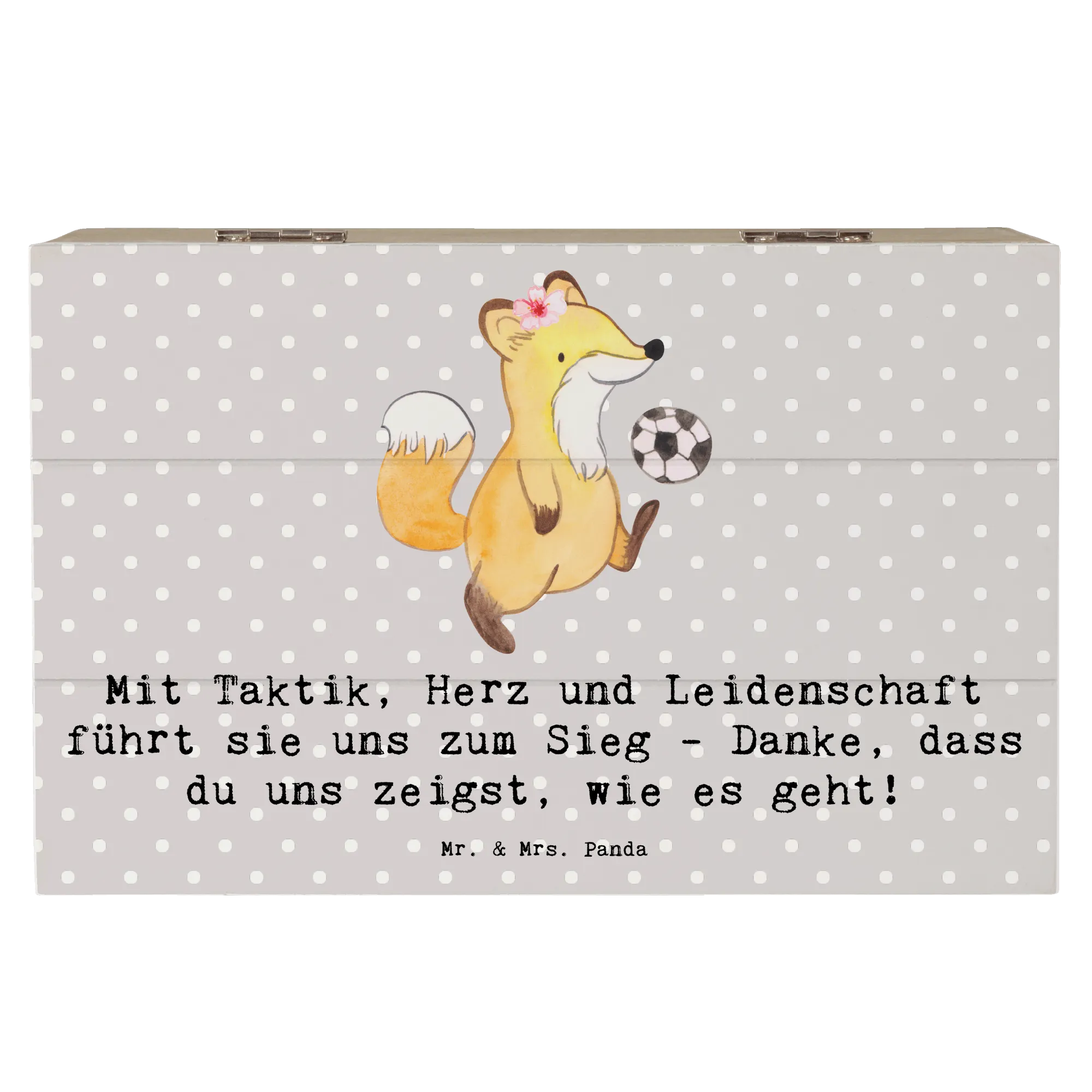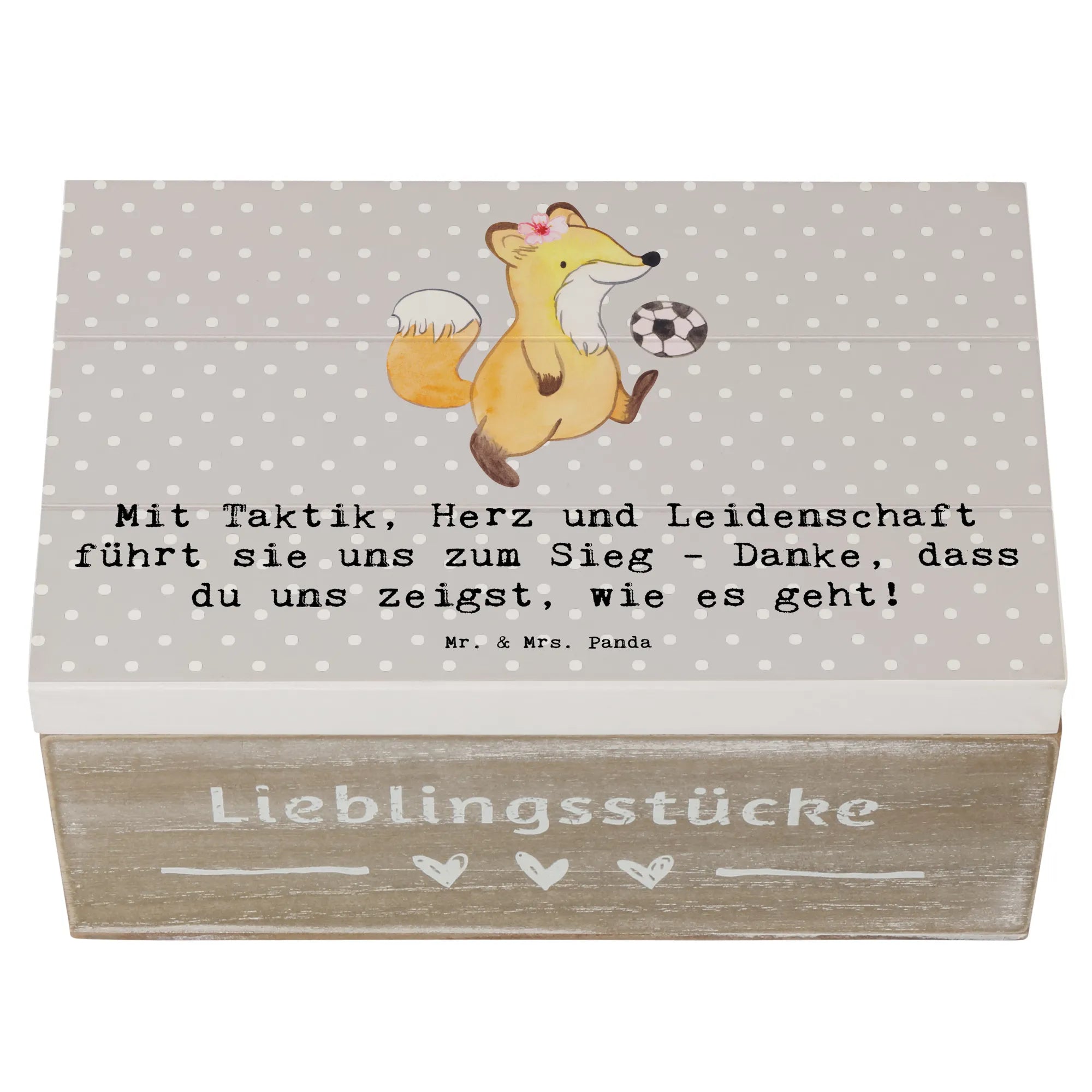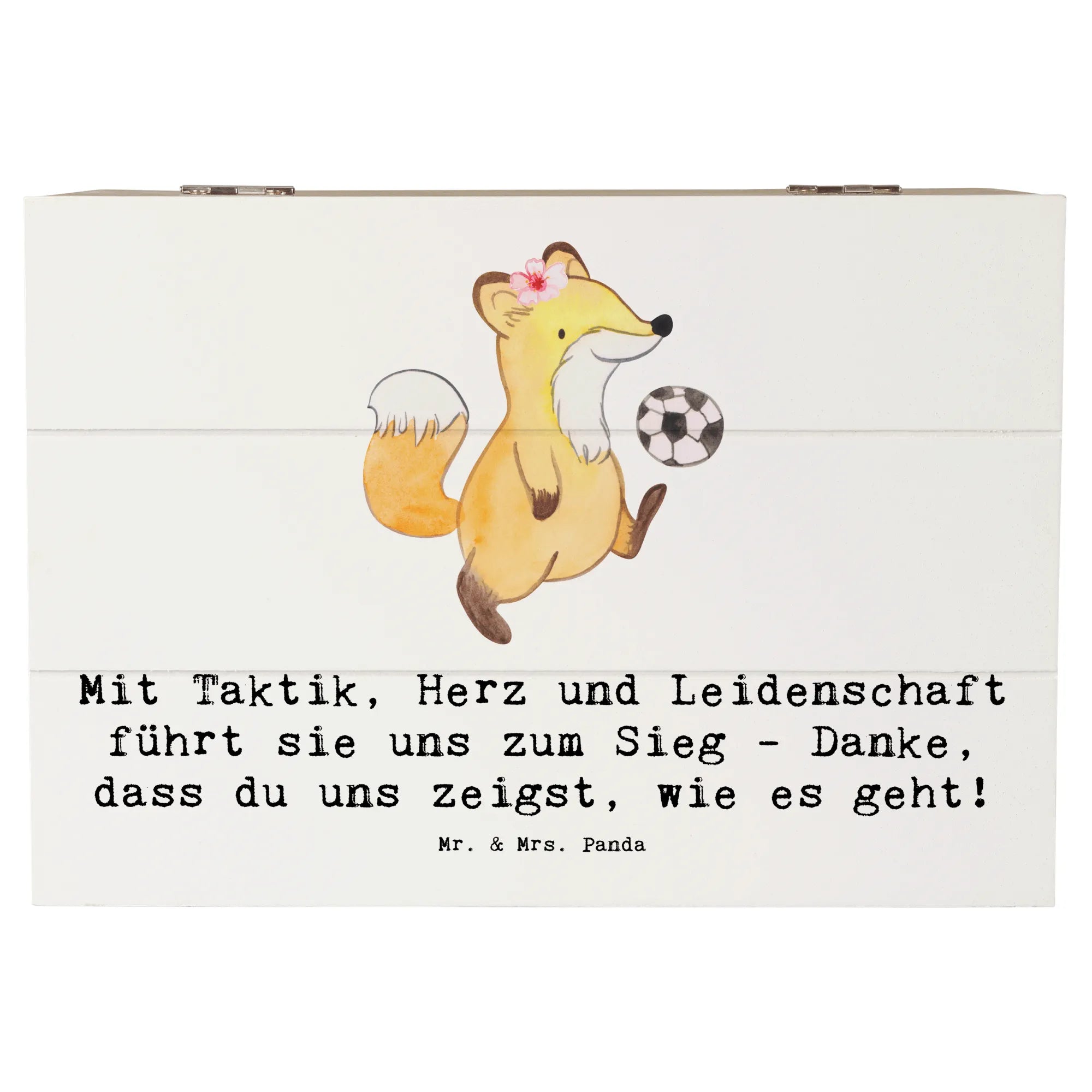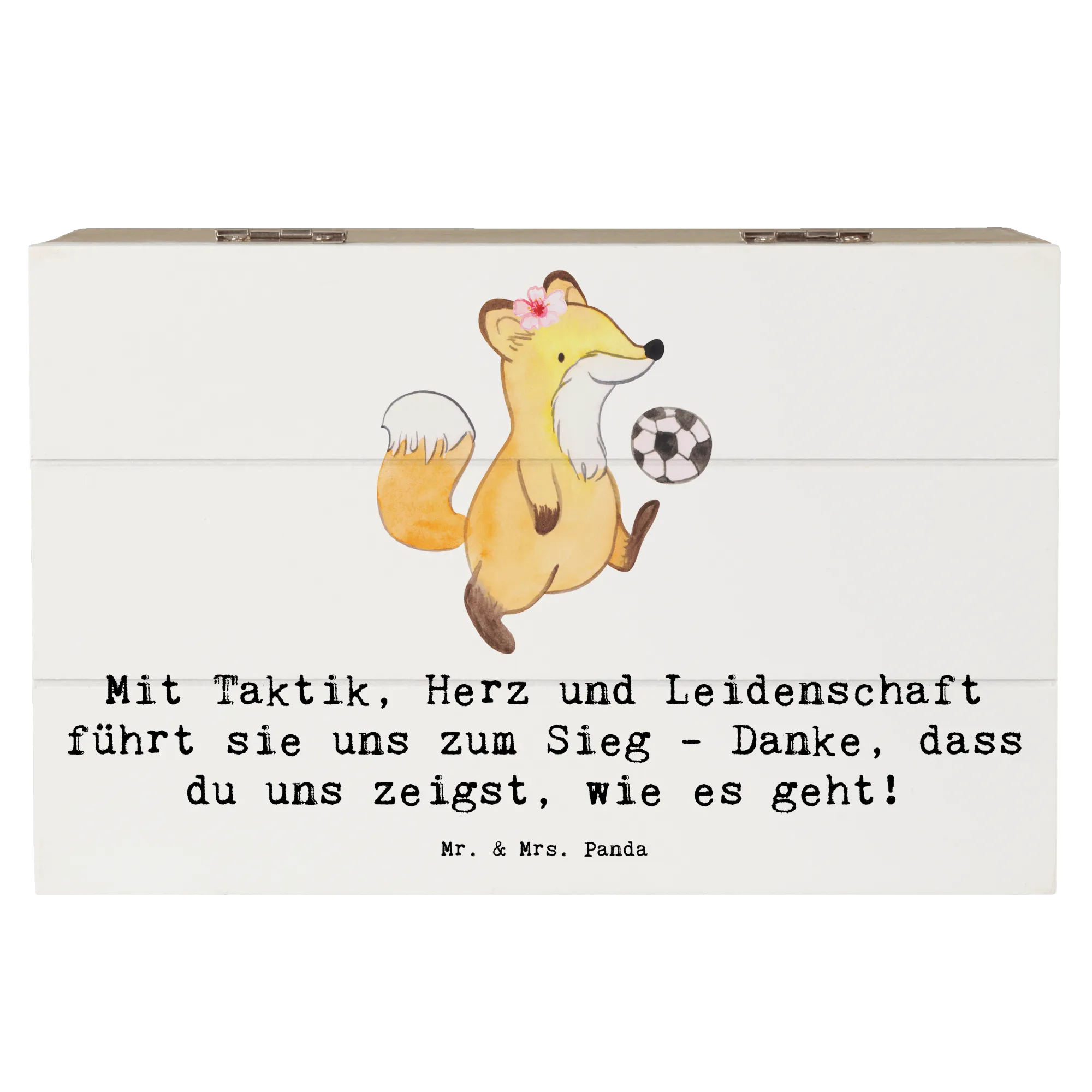 Entdecke unsere wunderschöne Holzkiste für Fußball Trainerinnen von Mr. & Mrs. Panda! Diese liebevoll gestaltete Kiste ist nicht nur ein praktischer Aufbewahrungsort, sondern auch ein ganz besonderes Erinnerungsgeschenk.