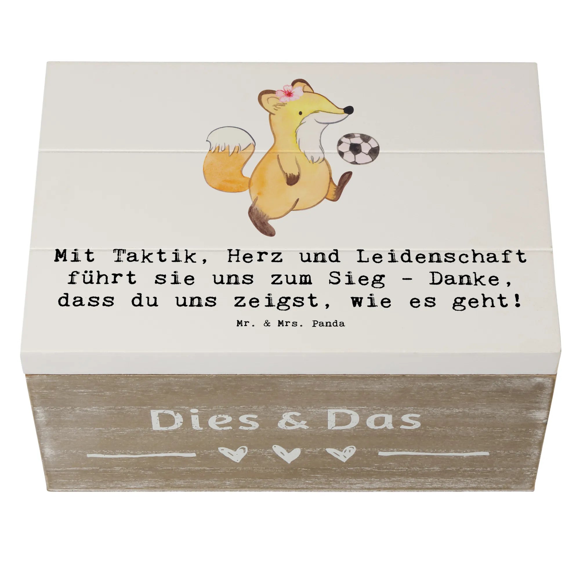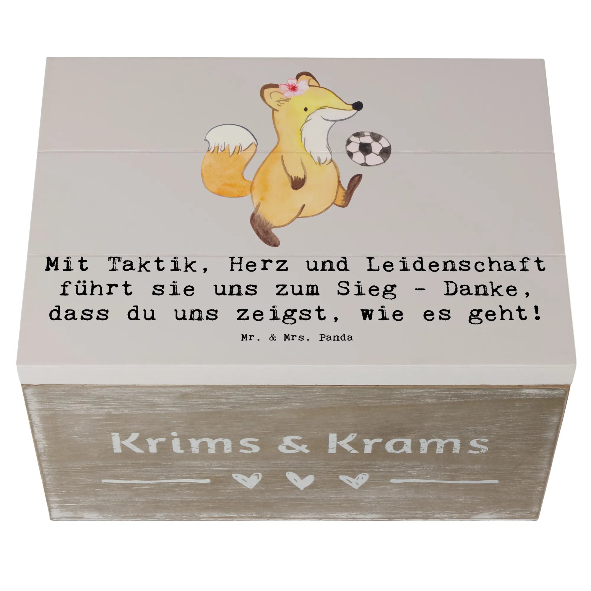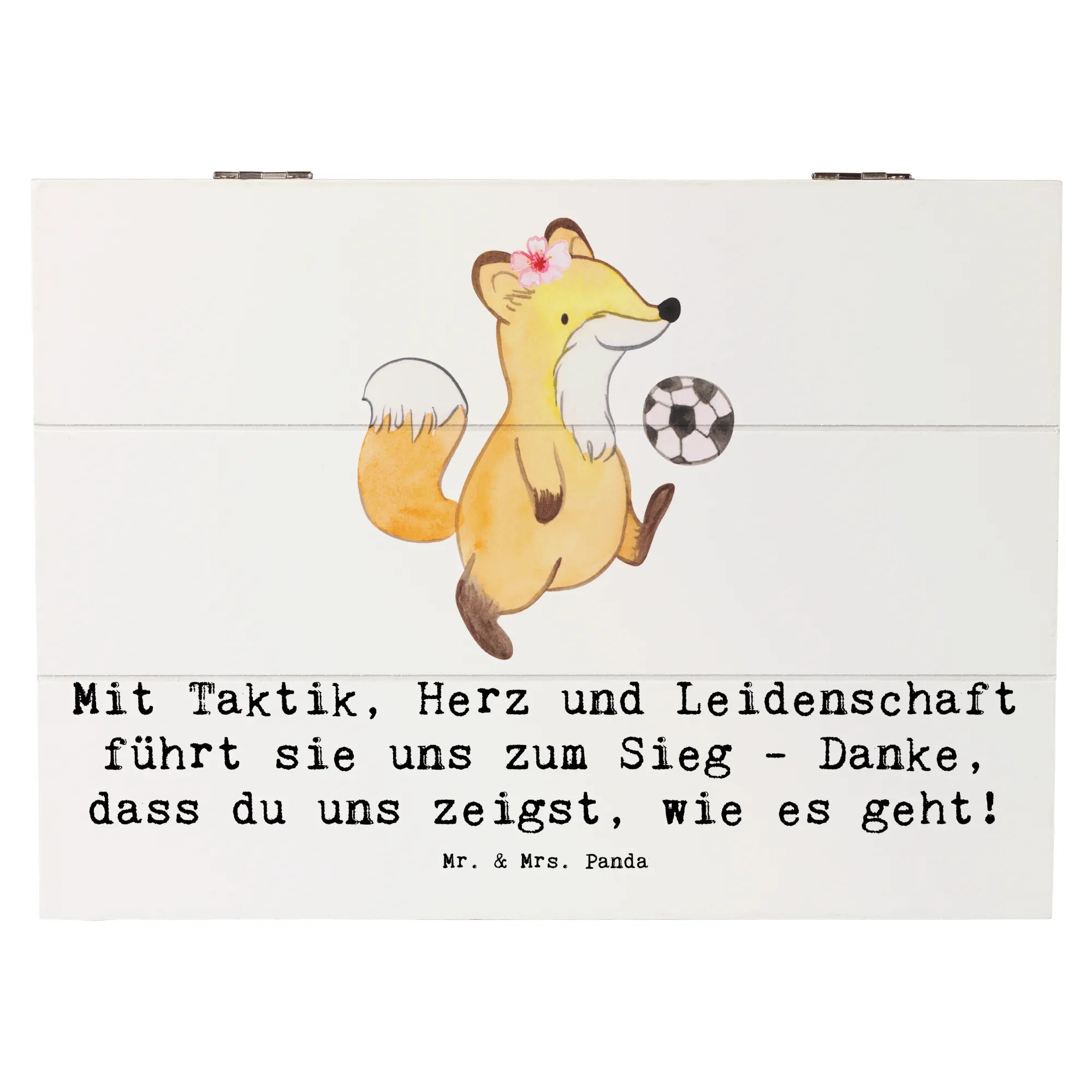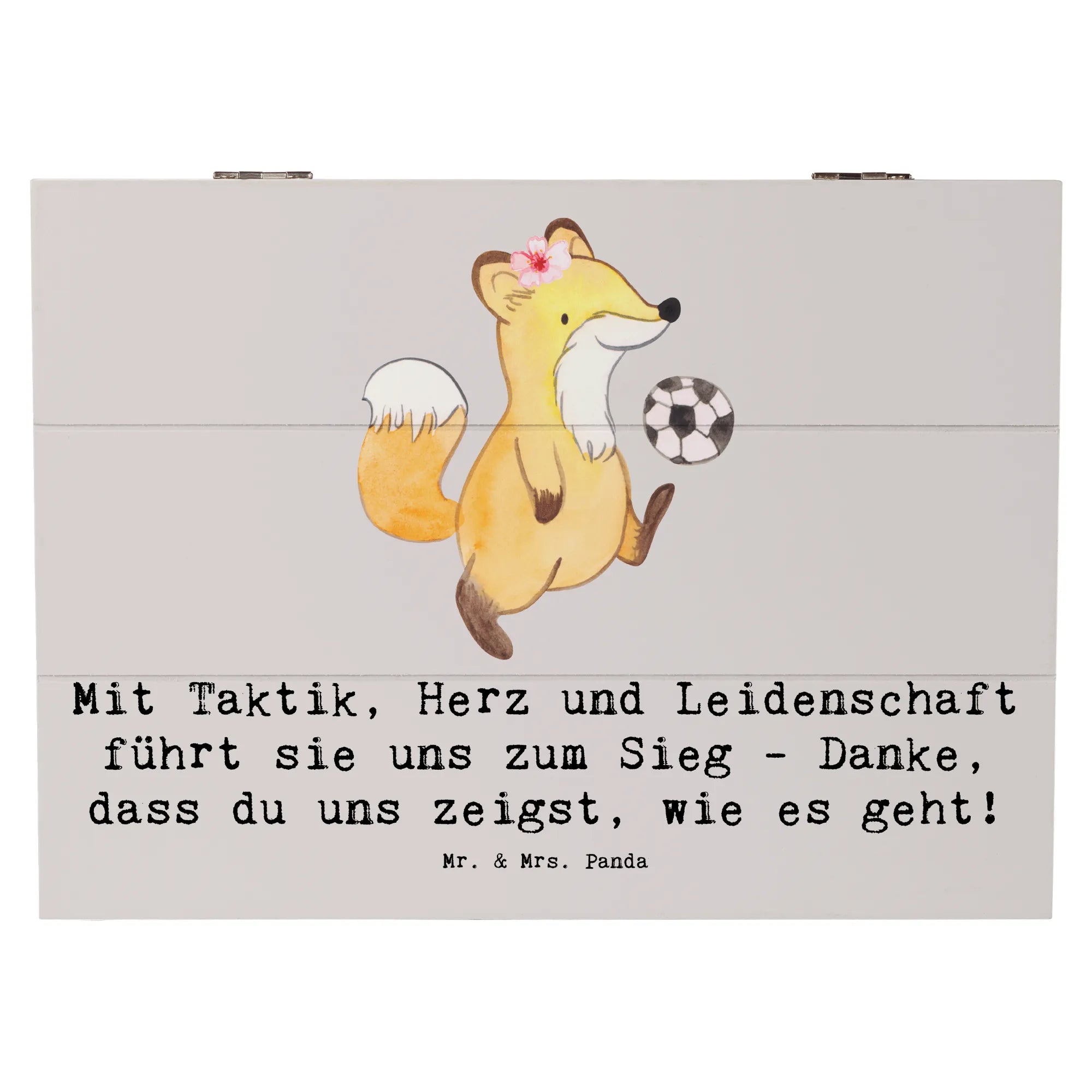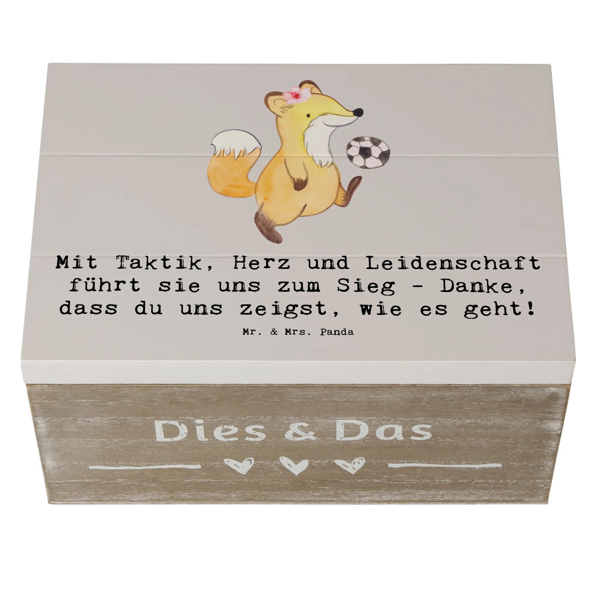 Entdecke unsere wunderschöne Holzkiste für Fußball Trainerinnen von Mr. & Mrs. Panda! Diese liebevoll gestaltete Kiste ist nicht nur ein praktischer Aufbewahrungsort, sondern auch ein ganz besonderes Erinnerungsgeschenk.