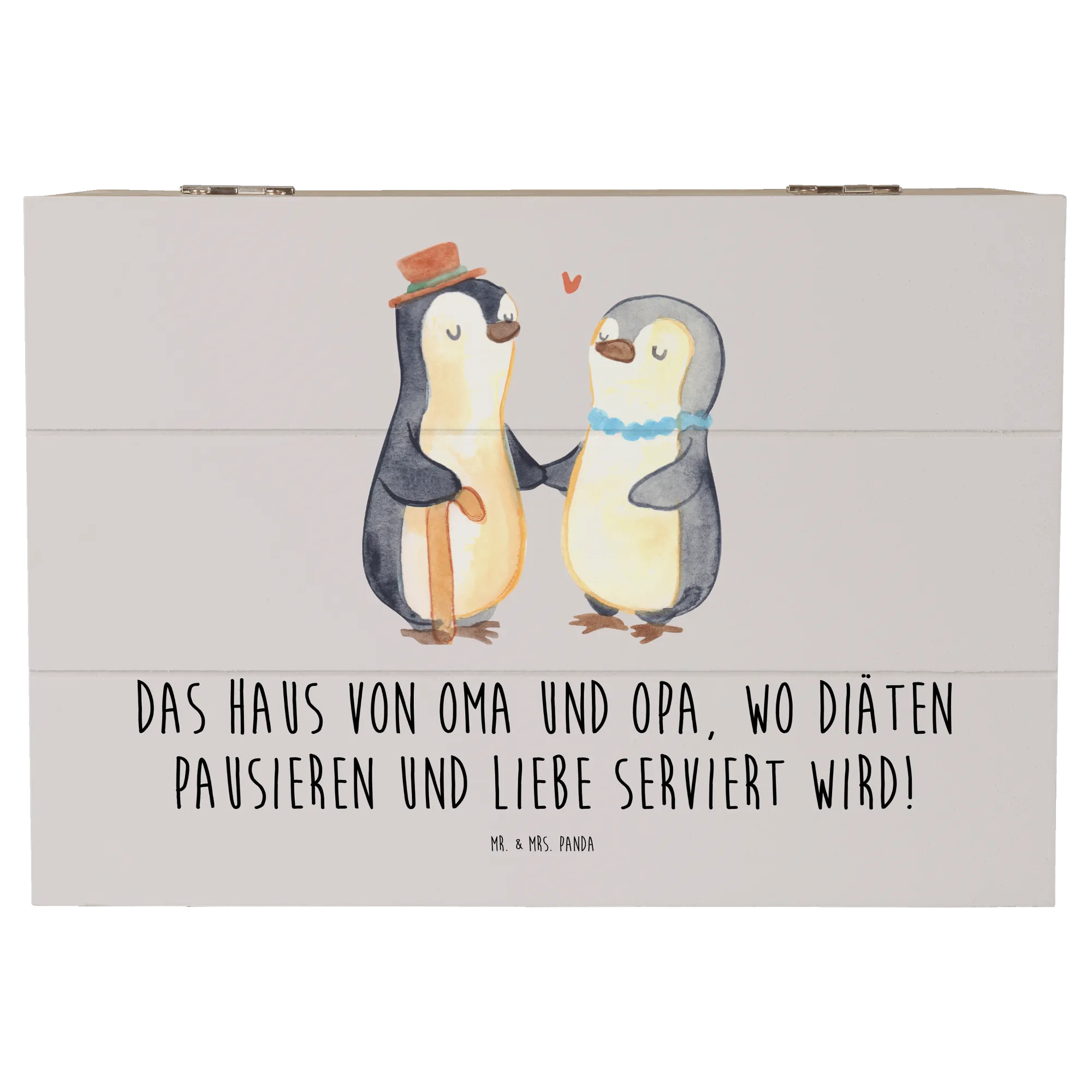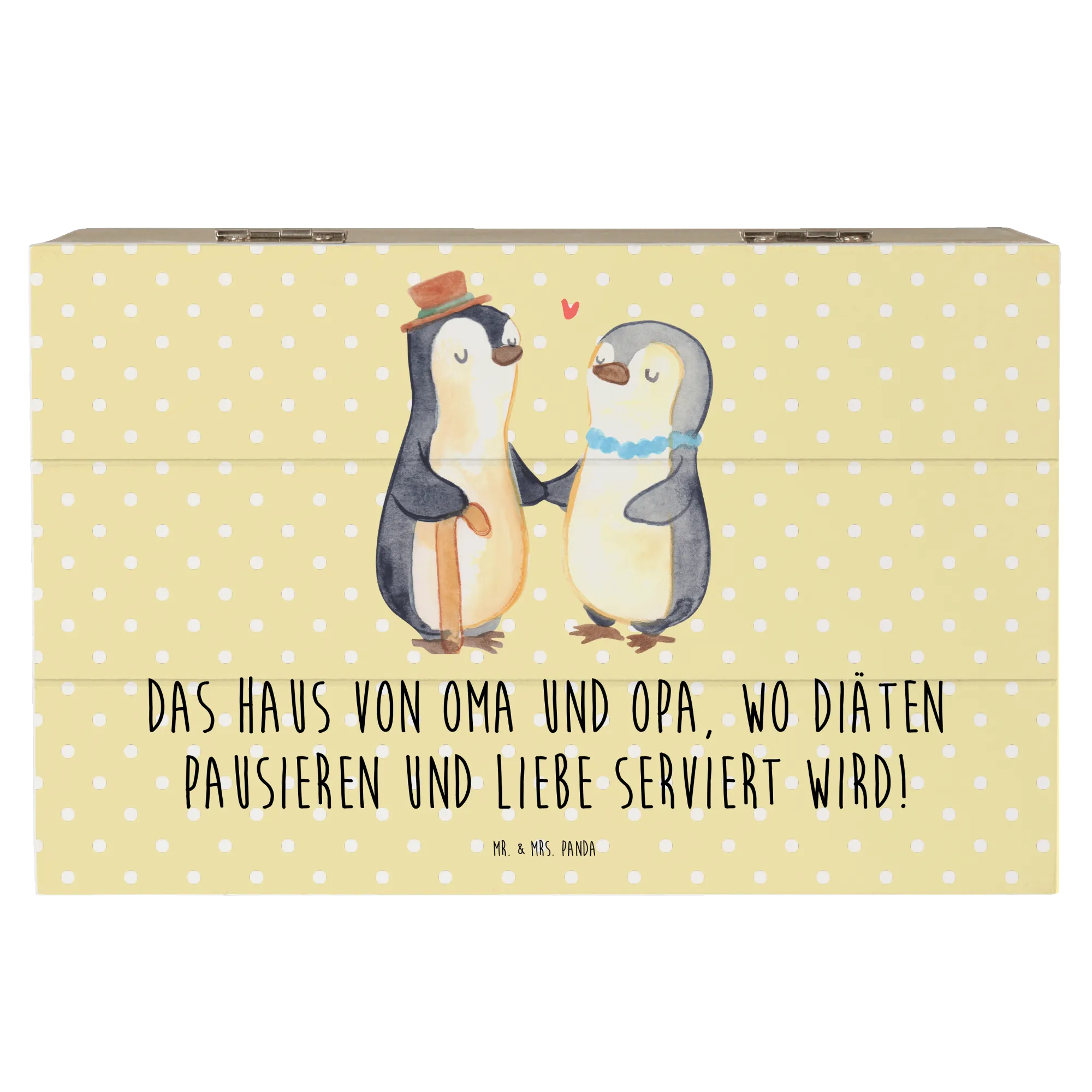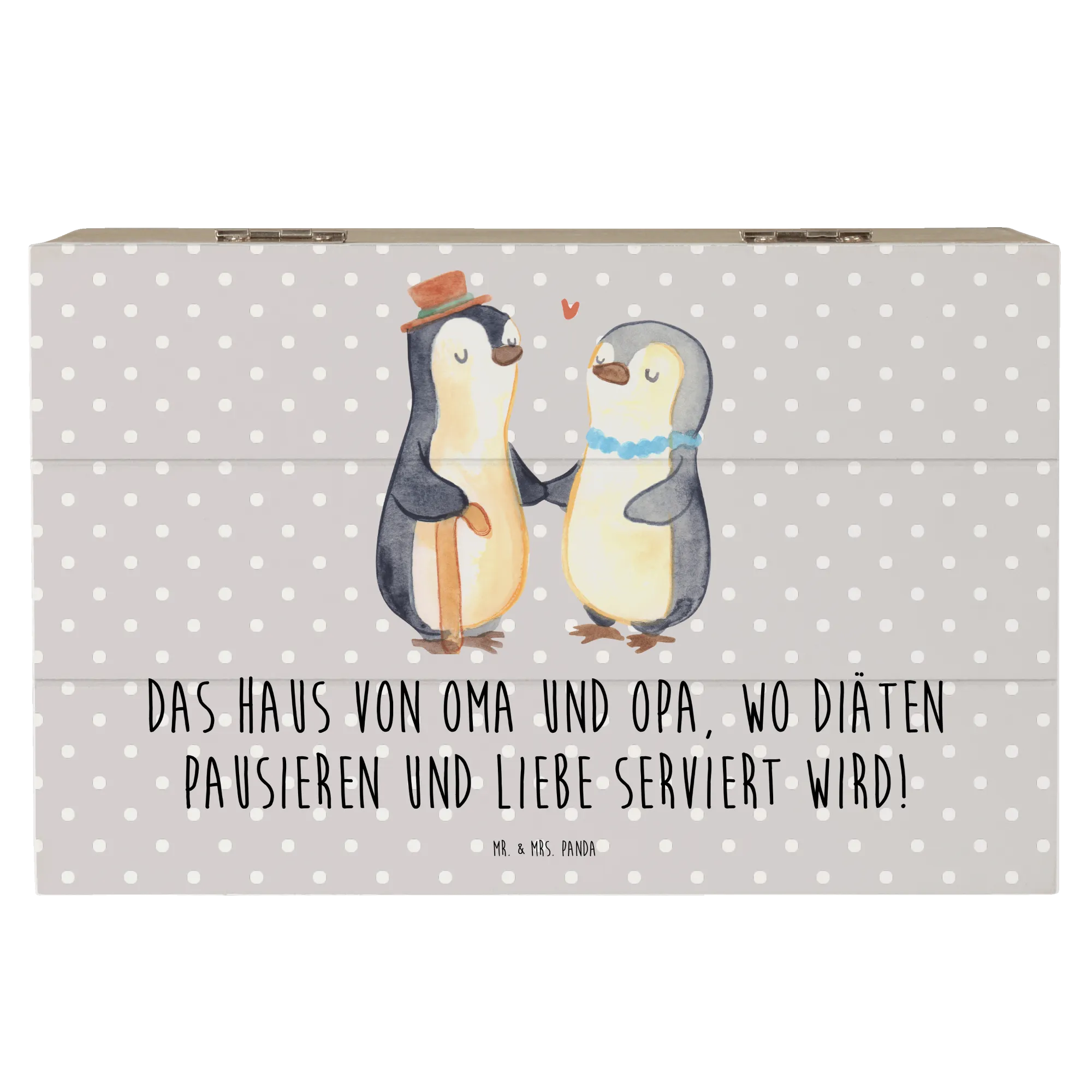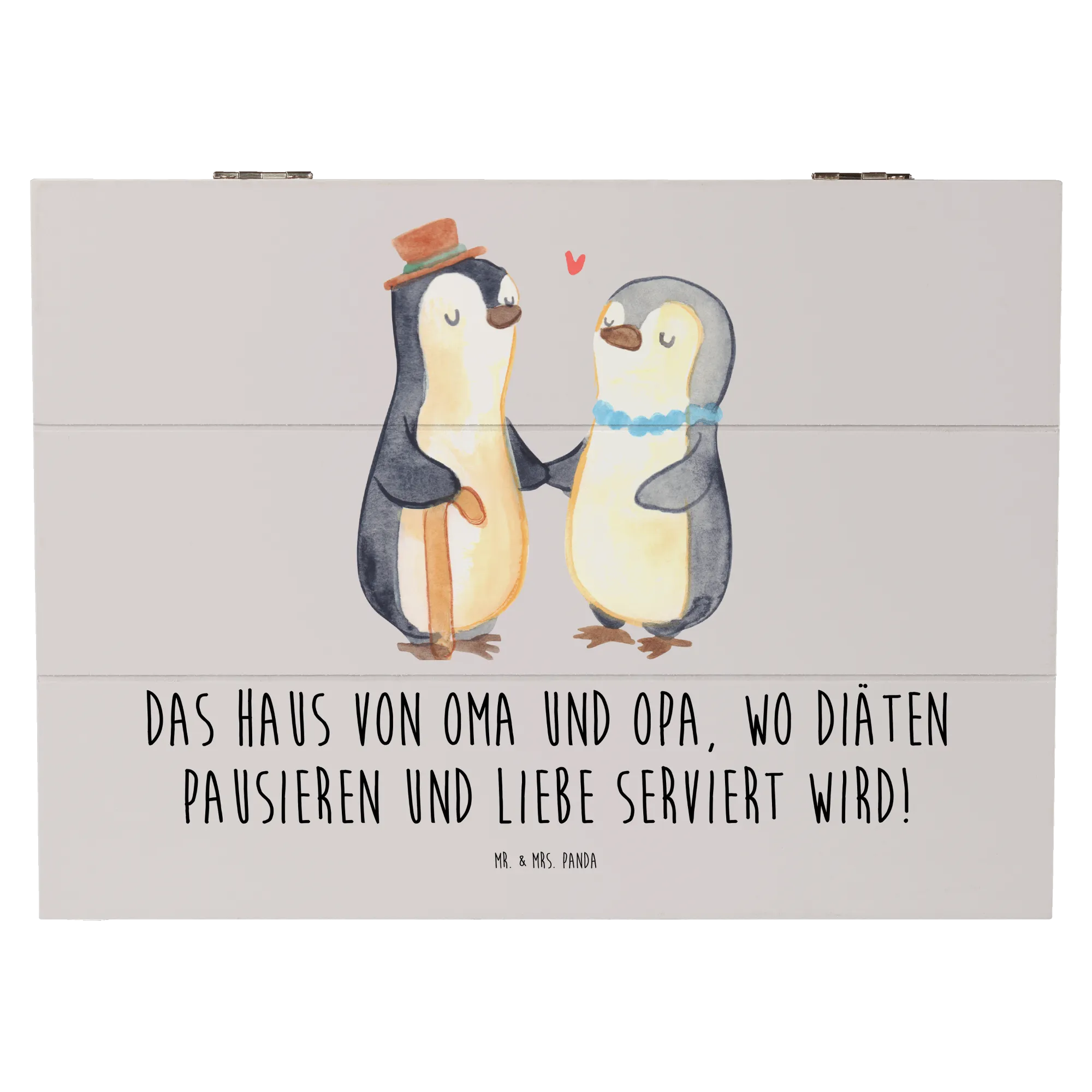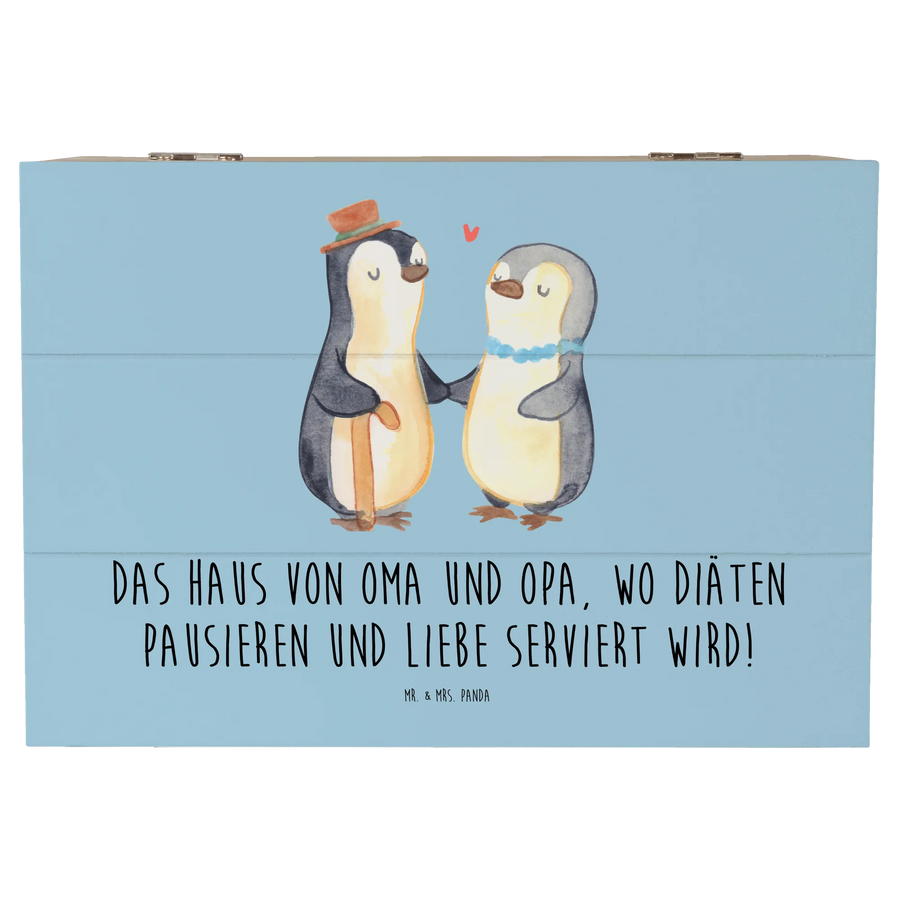 Die Holzkiste von Mr. & Mrs. Panda ist das perfekte Geschenk für Großeltern und ihre Enkelkinder. Mit einem liebevollen Design und dem Spruch "Das Haus von Oma und Opa, wo Diäten pausieren und Liebe serviert wird!" ist diese Erinnerungskiste nicht nur ein echter Hingucker, sondern auch eine wertvolle Aufbewahrungsmöglichkeit für die besonderen Schätze der Familie.