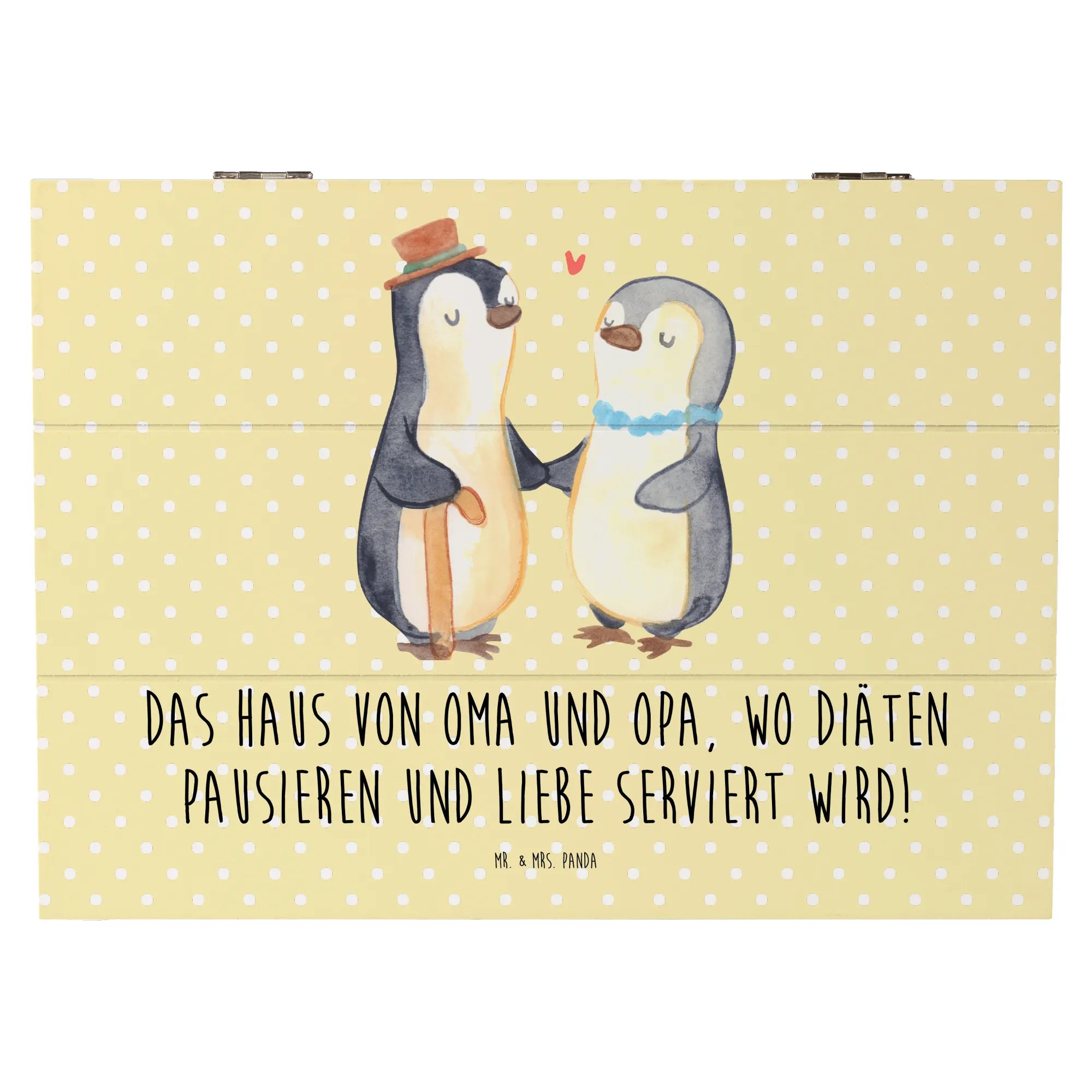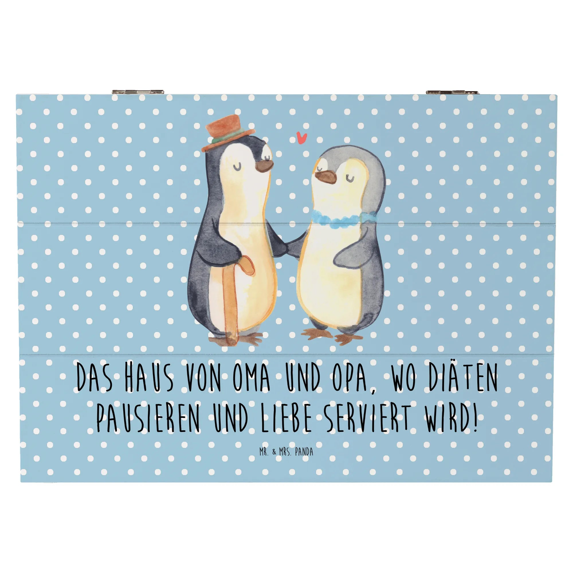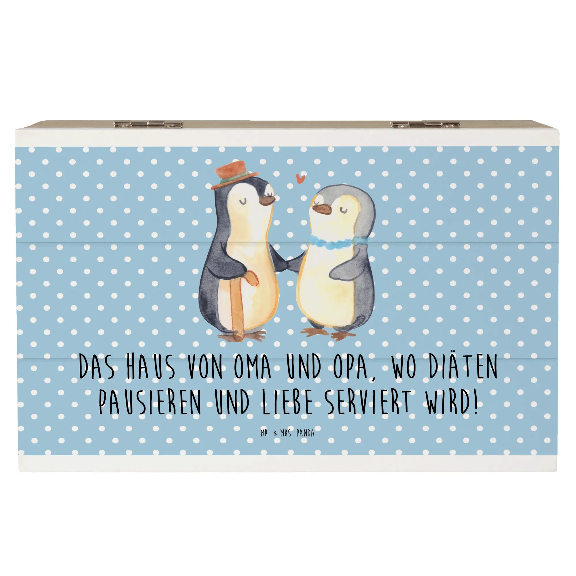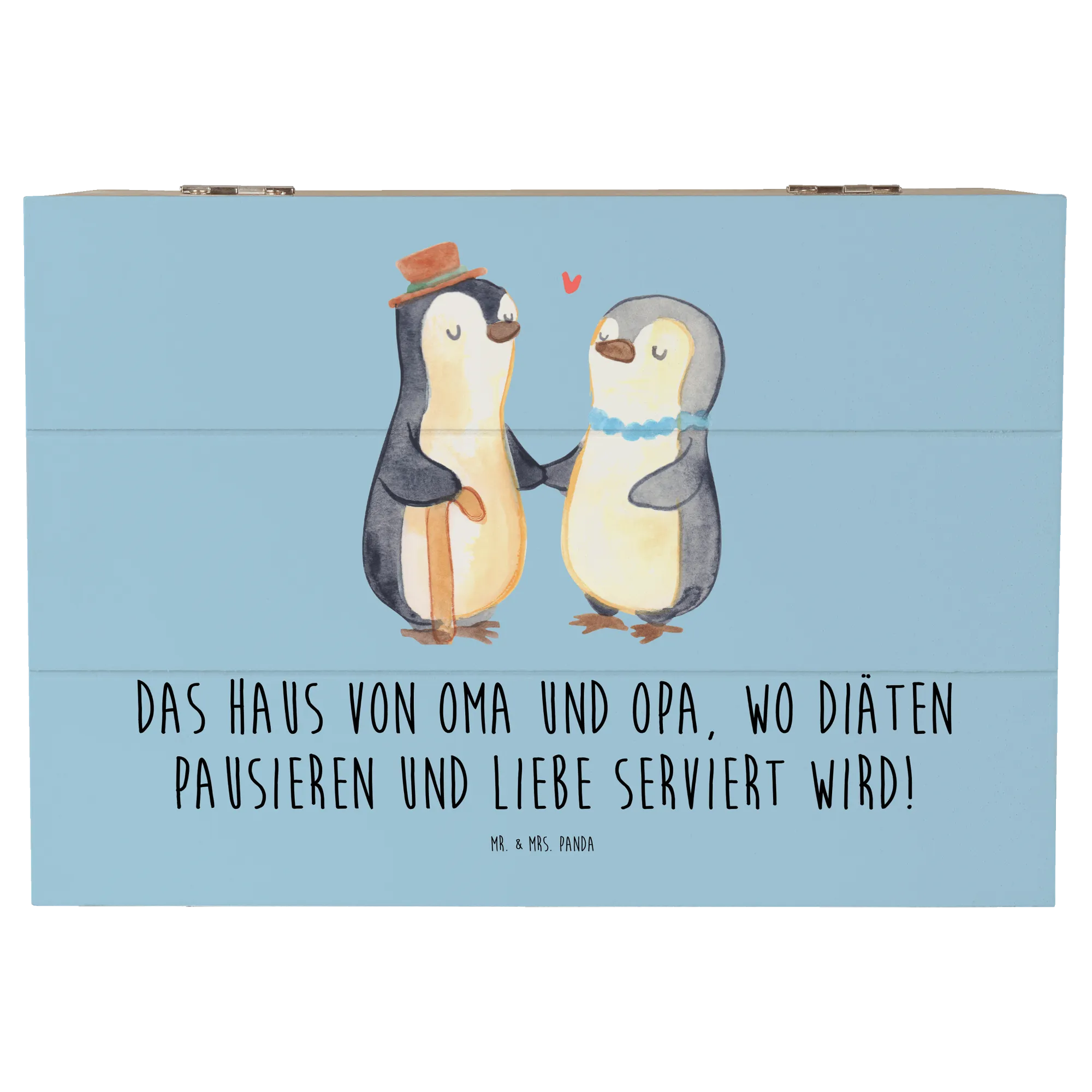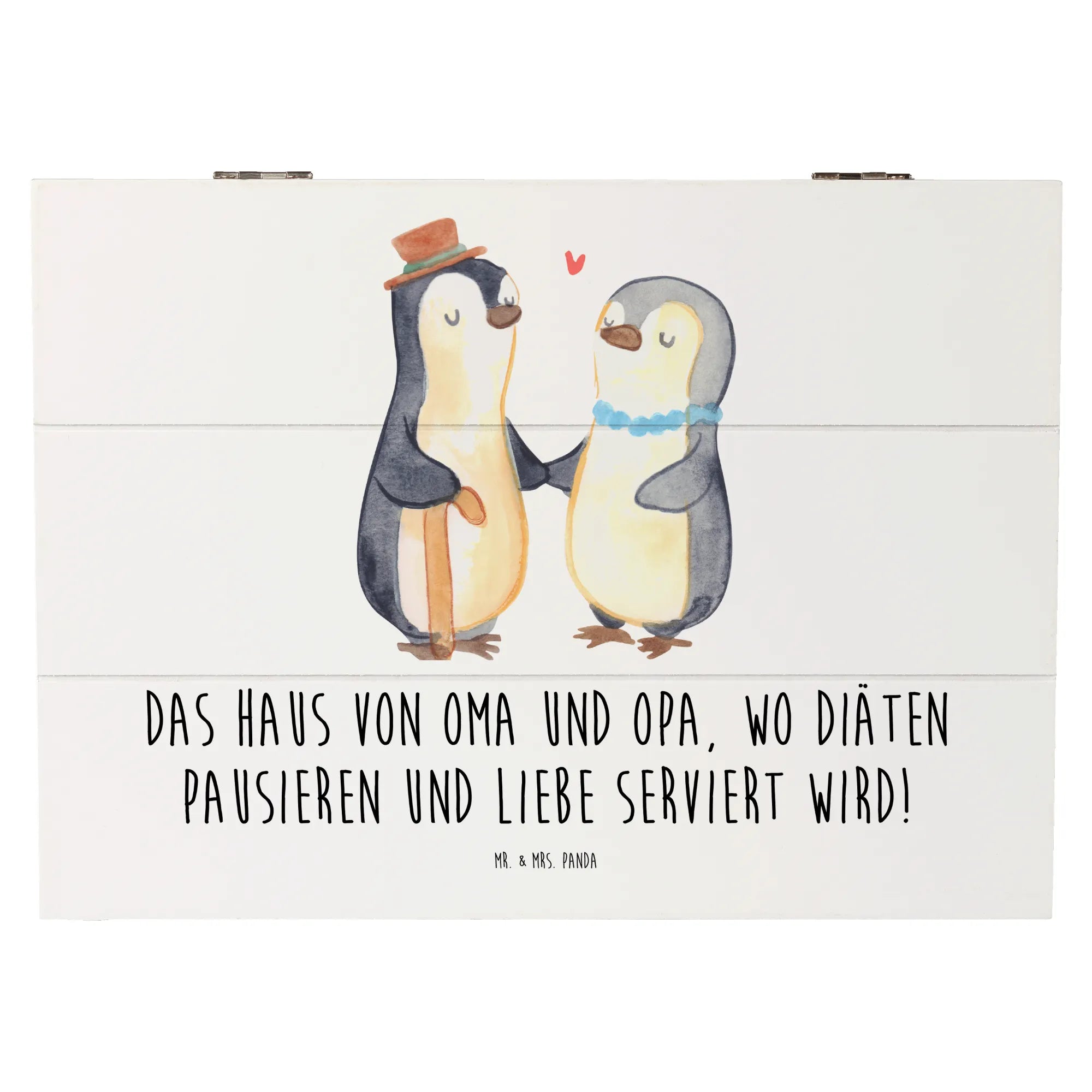 Die Holzkiste von Mr. & Mrs. Panda ist das perfekte Geschenk für Großeltern und ihre Enkelkinder. Mit einem liebevollen Design und dem Spruch "Das Haus von Oma und Opa, wo Diäten pausieren und Liebe serviert wird!" ist diese Erinnerungskiste nicht nur ein echter Hingucker, sondern auch eine wertvolle Aufbewahrungsmöglichkeit für die besonderen Schätze der Familie.