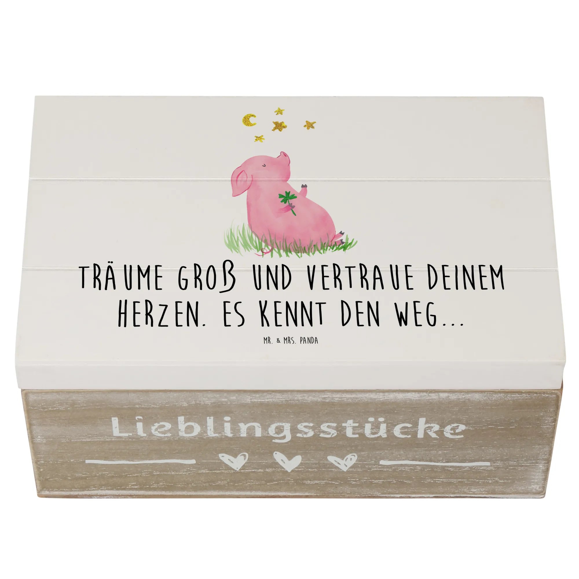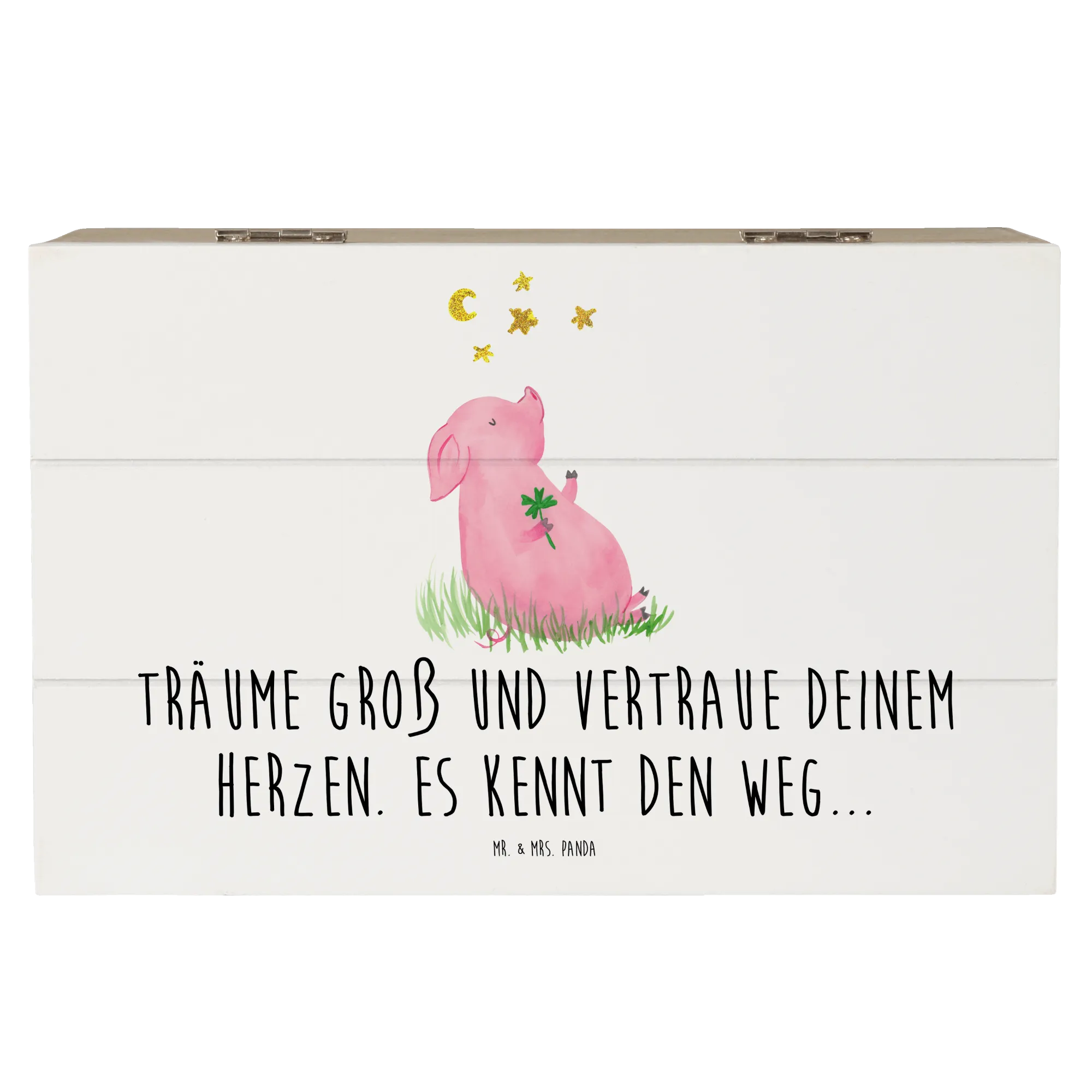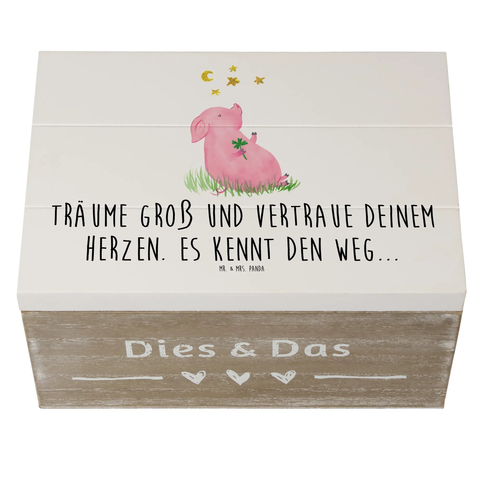 Die wunderschöne Holzkiste von Mr. & Mrs. Panda ist nicht nur ein idealer Aufbewahrungsort für deine wertvollen Schätze, sondern auch ein wahrhaft inspirierendes Geschenk. Bedruckt mit dem ermutigenden Spruch "Träume groß und vertraue deinem Herzen. Es kennt den Weg..." aus der mutmachenden Kollektion, erinnert sie dich stets an den Glauben an deine eigenen Fähigkeiten und Möglichkeiten.