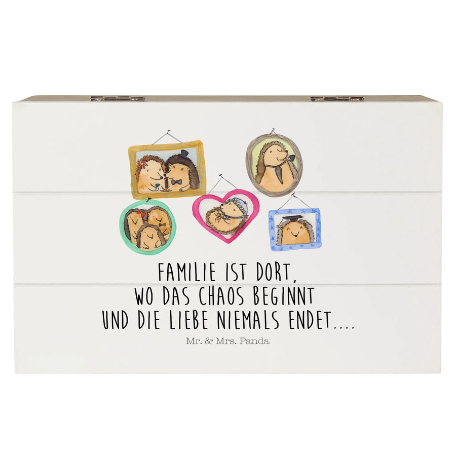 Die wunderschöne Holzkiste "Igel Familie" von Mr. & Mrs. Panda ist das perfekte Geschenk für deine Lieben. Egal ob zum Vatertag, Muttertag oder einfach als Überraschung – diese Erinnerungskiste wird Herzen höher schlagen lassen! Die Kiste ist nicht nur ein schicker Aufbewahrungsort für besondere Schätze und Erinnerungen, sondern auch ein echter Hingucker in jedem Zuhause. Mit ihrem liebevoll gestalteten Motiv, das eine charmante Igelfamilie zeigt, strahlt sie Wärme und Geborgenheit aus. Der Slogan "Familie ist dort, wo das Chaos beginnt und die Liebe niemals endet...." spricht aus, was wir in unseren Familien erfahren: viel Liebe, ein wenig Chaos und jede Menge kostbare Momente.