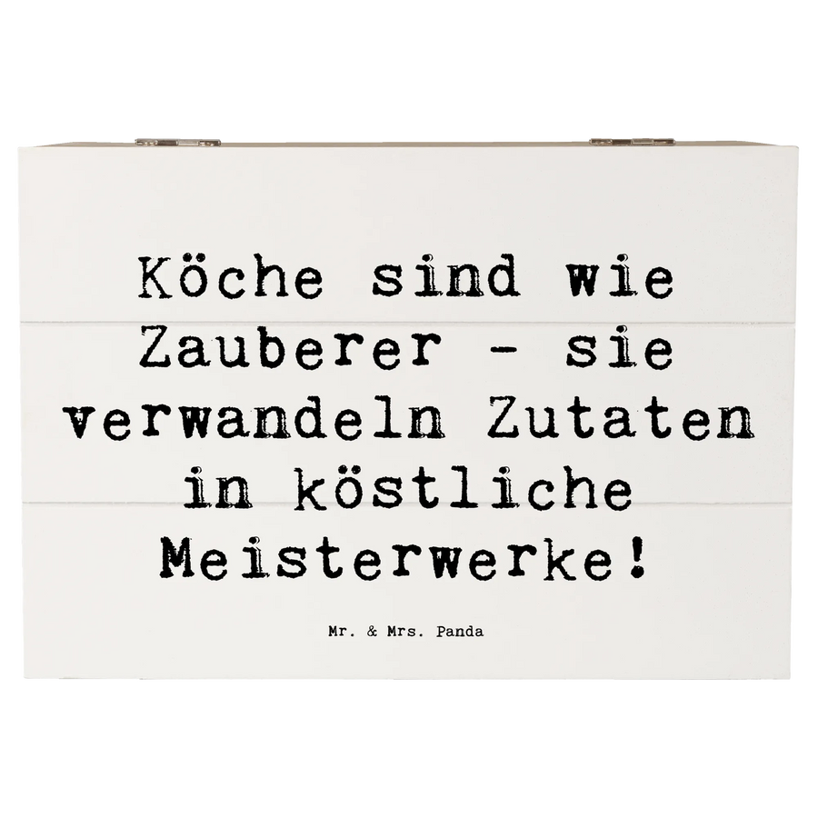 Die Einschlagscharniere ermöglichen ein einfaches Öffnen und Schließen, während das hübsche Design das Herz eines jeden Kochs höherschlagen lässt. Entdecke die Vielzahl an kreativen Geschenkmöglichkeiten mit der liebevollen Berufe Kollektion von Mr. & Mrs. Panda. Finde das perfekte Geschenk, um einem Freund, Kollegen oder Familienmitglied zu danken oder einfach nur eine Freude zu machen. Diese Holzkiste ist nicht personalisierbar, aber sie spricht mit jedem Spruch die Leidenschaft für das Kochen an und ist somit eine ideale Wahl für jeden Anlass.