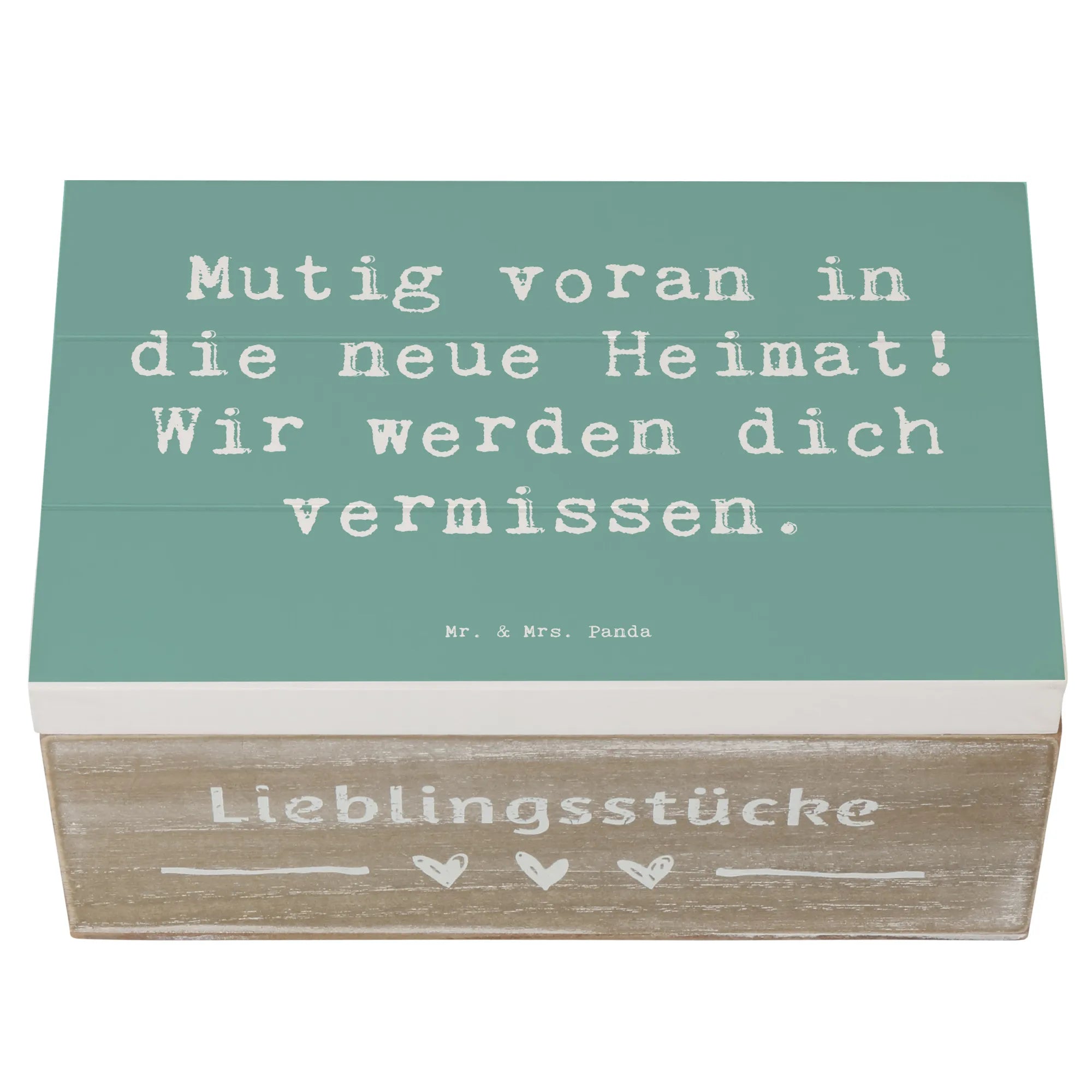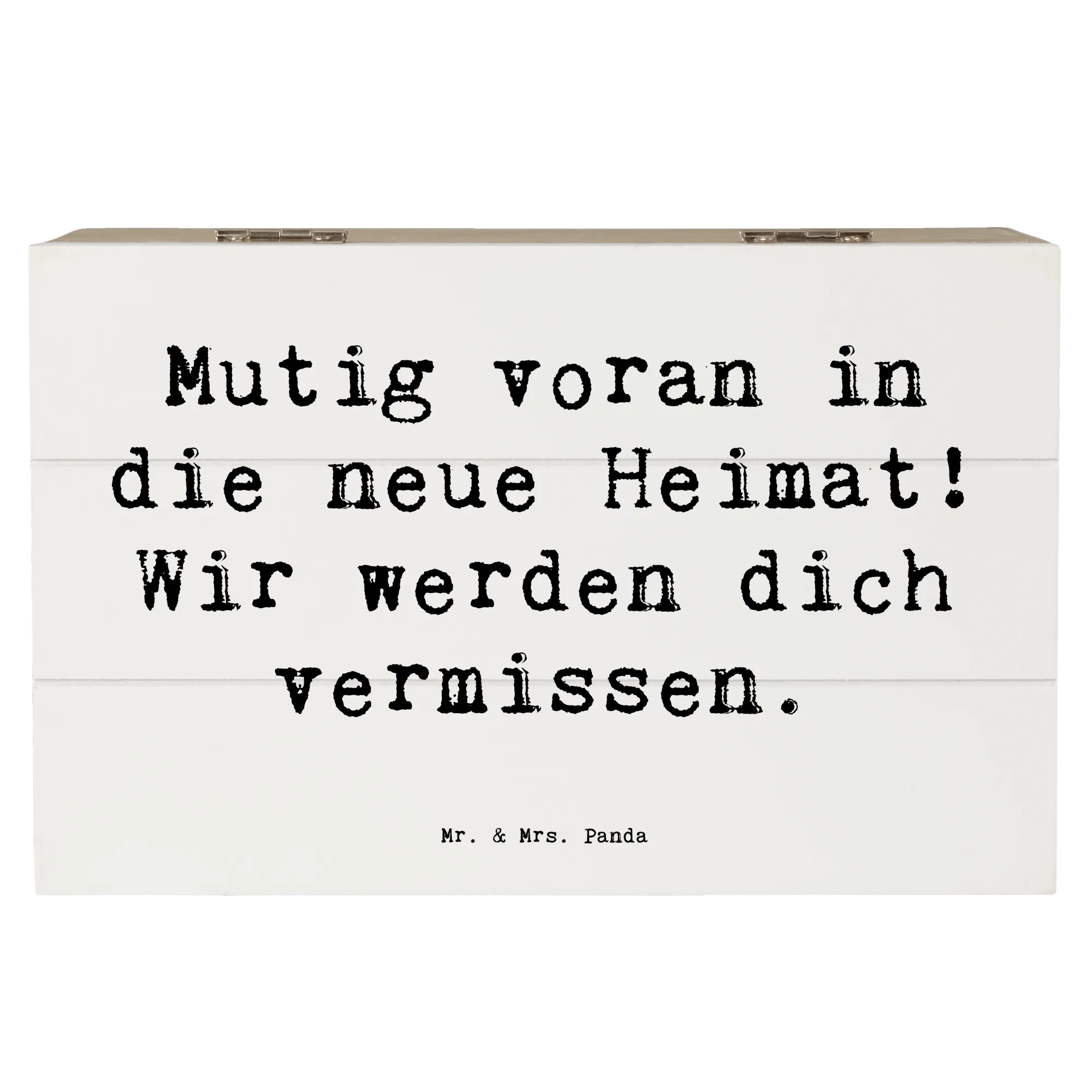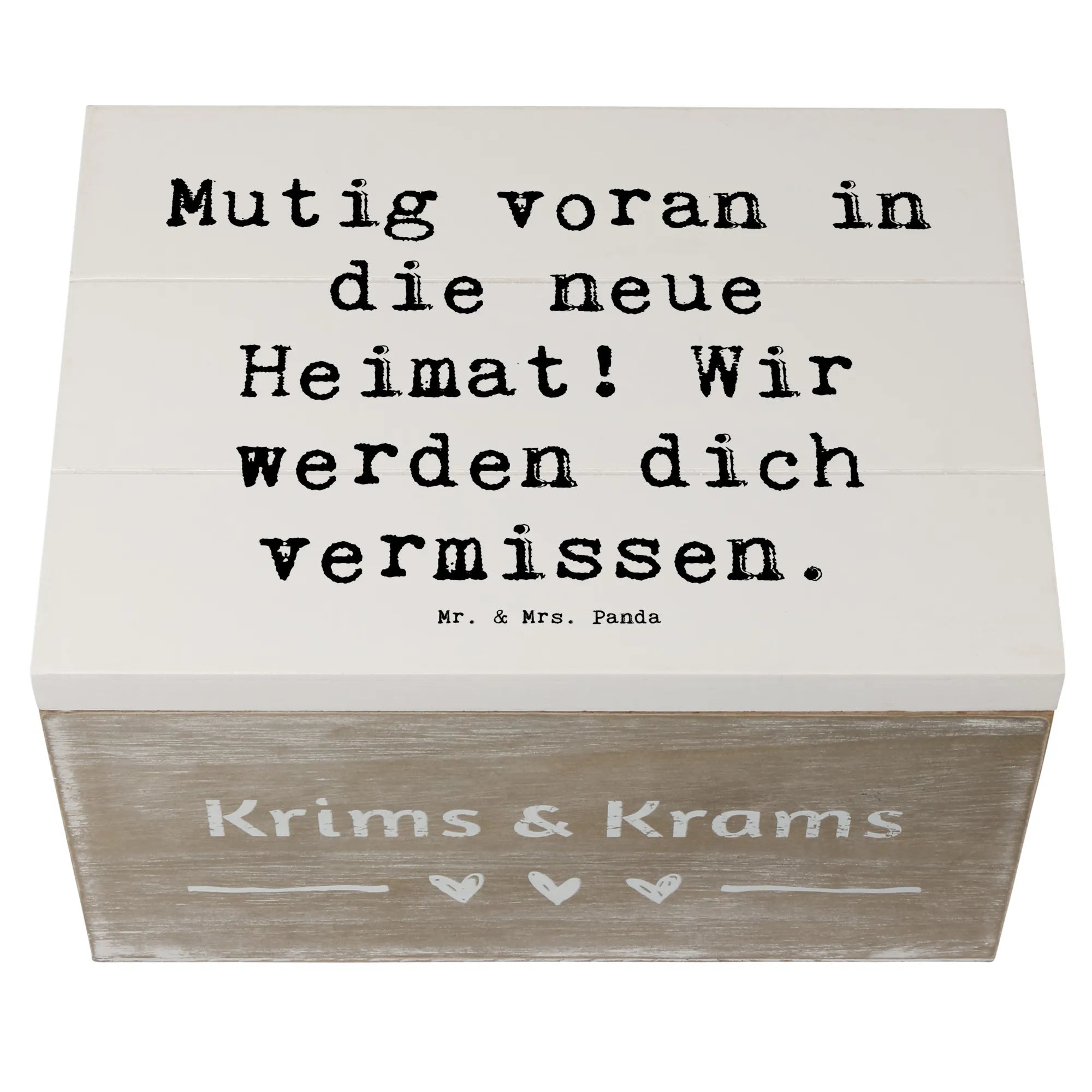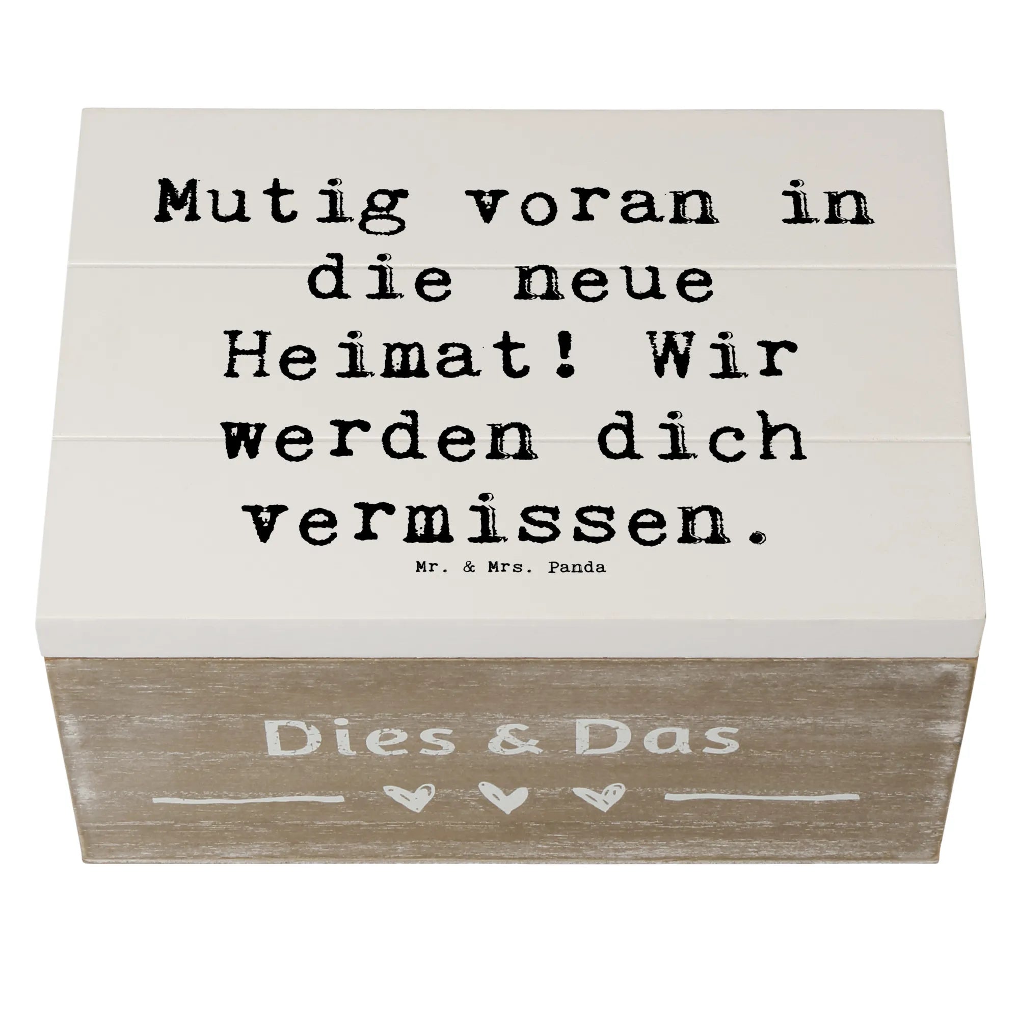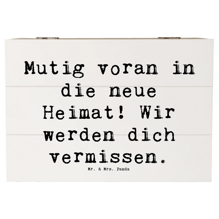 Diese wunderschöne Holzkiste von Mr. & Mrs. Panda ist das perfekte Geschenk für alle, die einen Neuanfang in einer neuen Stadt wagen. Sie trägt den ermutigenden Spruch 'Mutig voran in die neue Heimat! Wir werden dich vermissen.' und ist somit nicht nur ein hübsches Dekorationsstück, sondern auch eine Quelle der Inspiration und des Trostes.