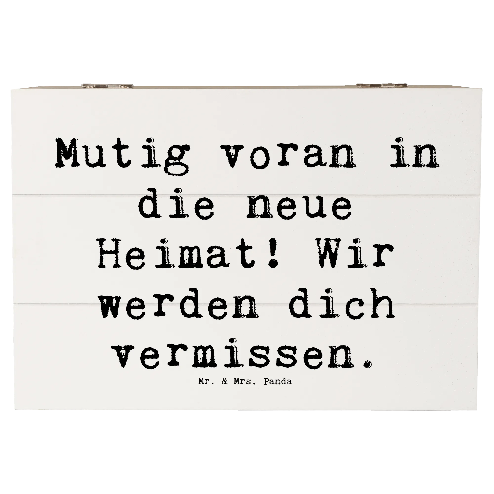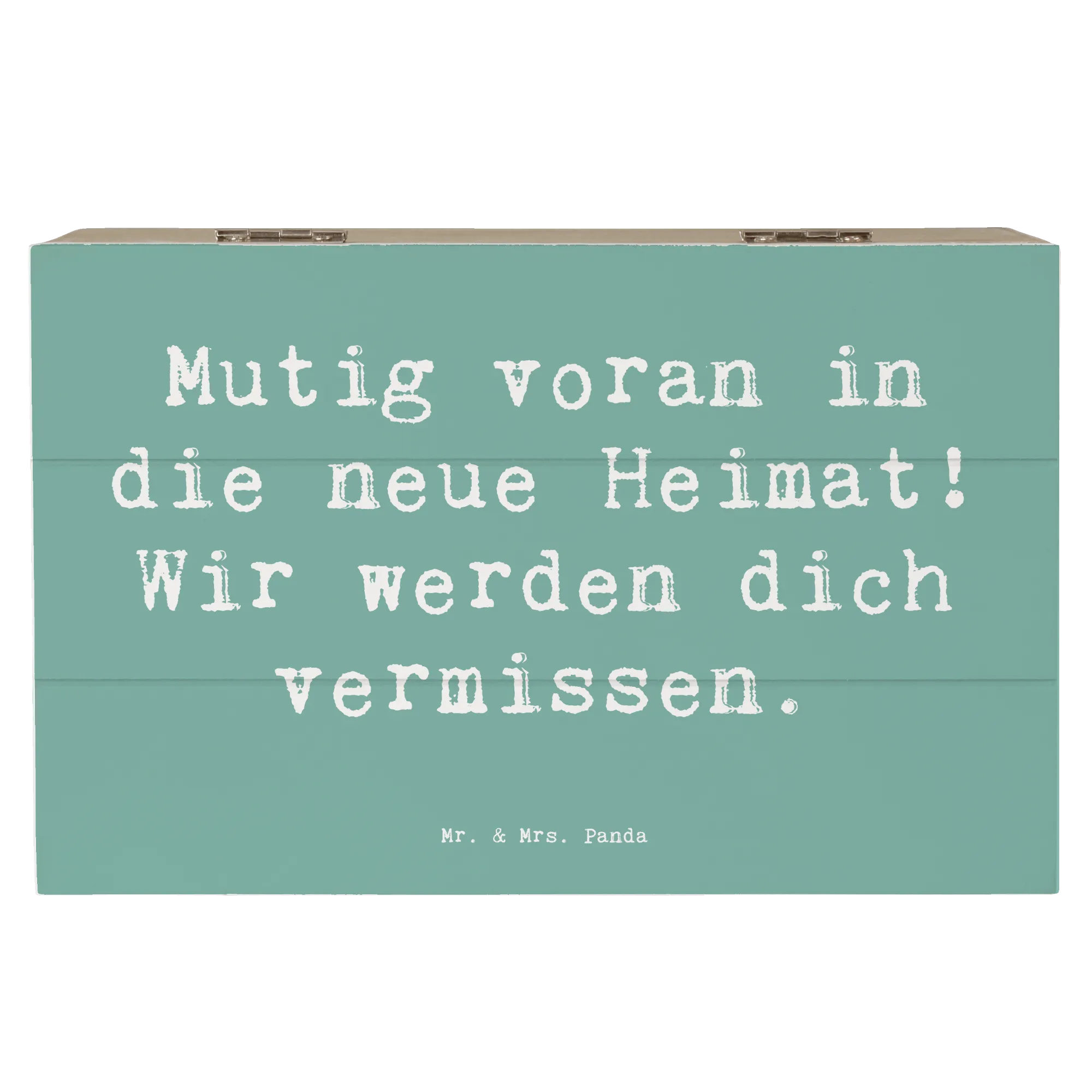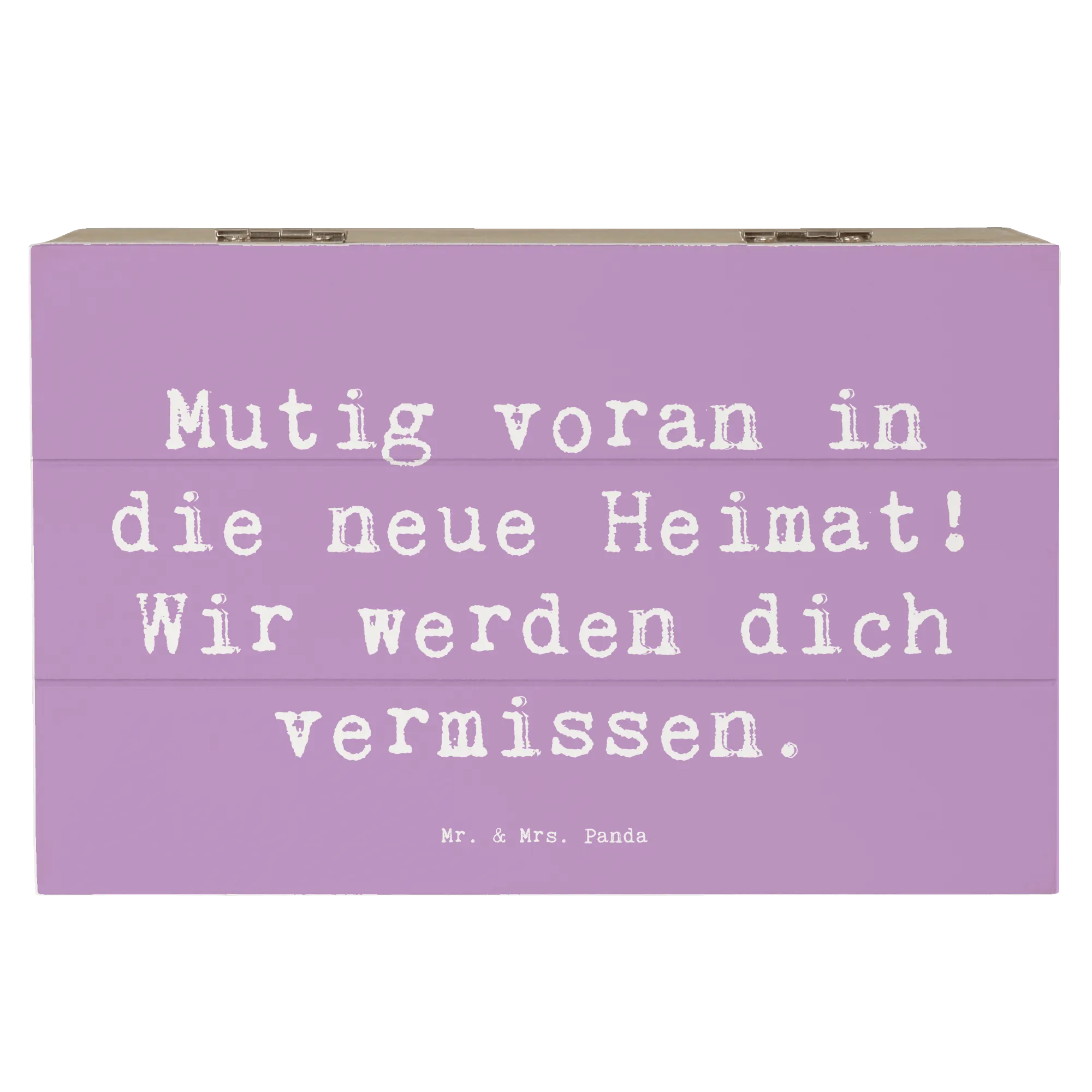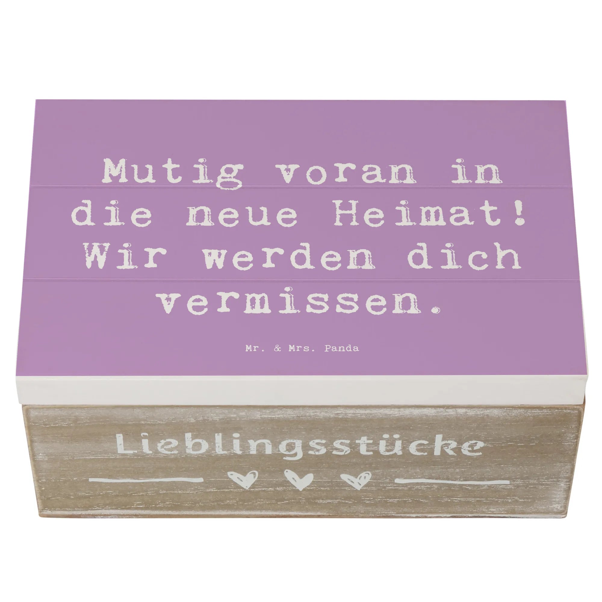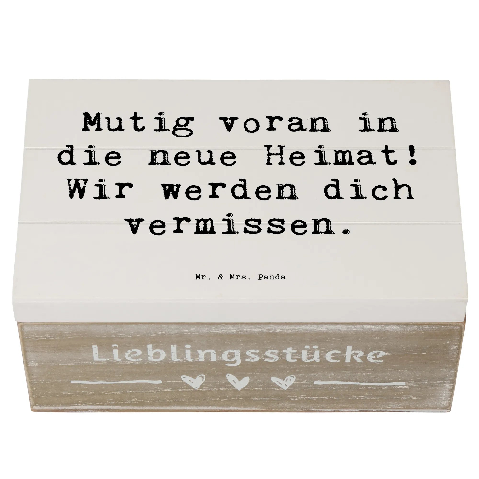Diese wunderschöne Holzkiste von Mr. & Mrs. Panda ist das perfekte Geschenk für alle, die einen Neuanfang in einer neuen Stadt wagen. Sie trägt den ermutigenden Spruch 'Mutig voran in die neue Heimat! Wir werden dich vermissen.' und ist somit nicht nur ein hübsches Dekorationsstück, sondern auch eine Quelle der Inspiration und des Trostes.