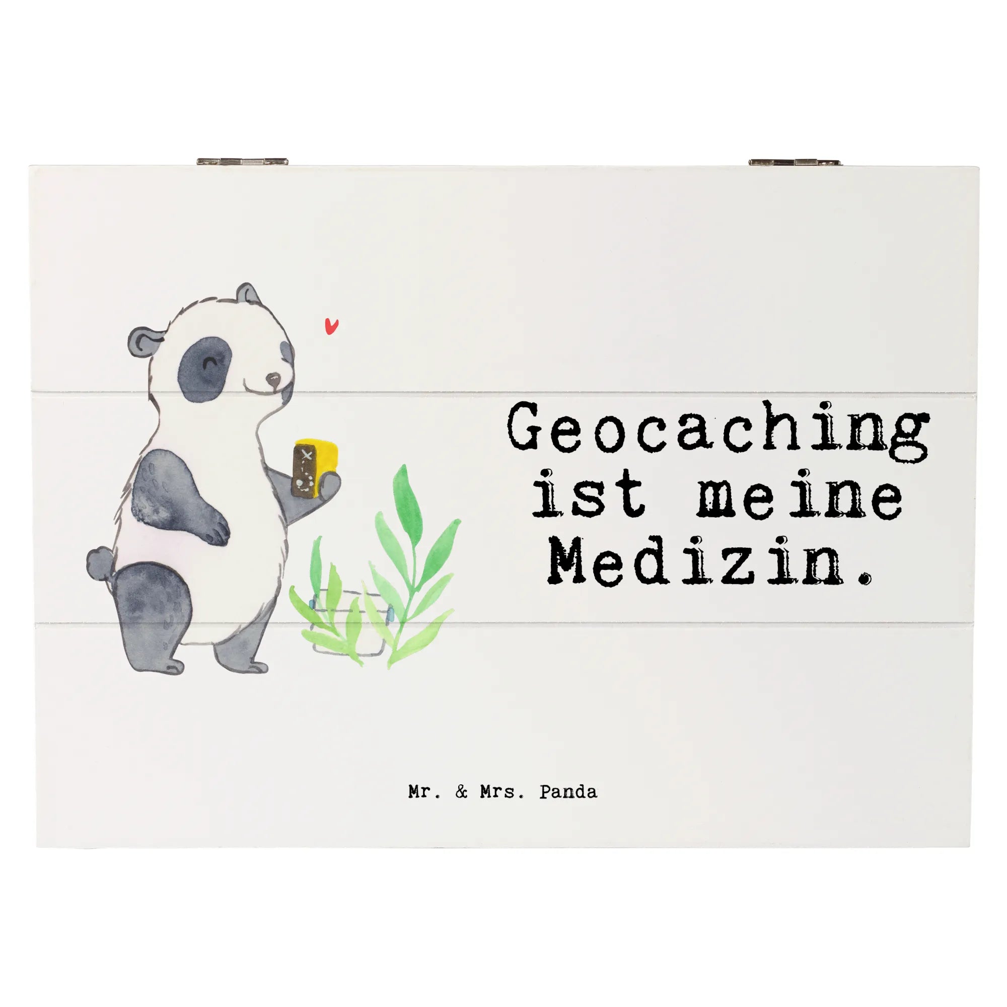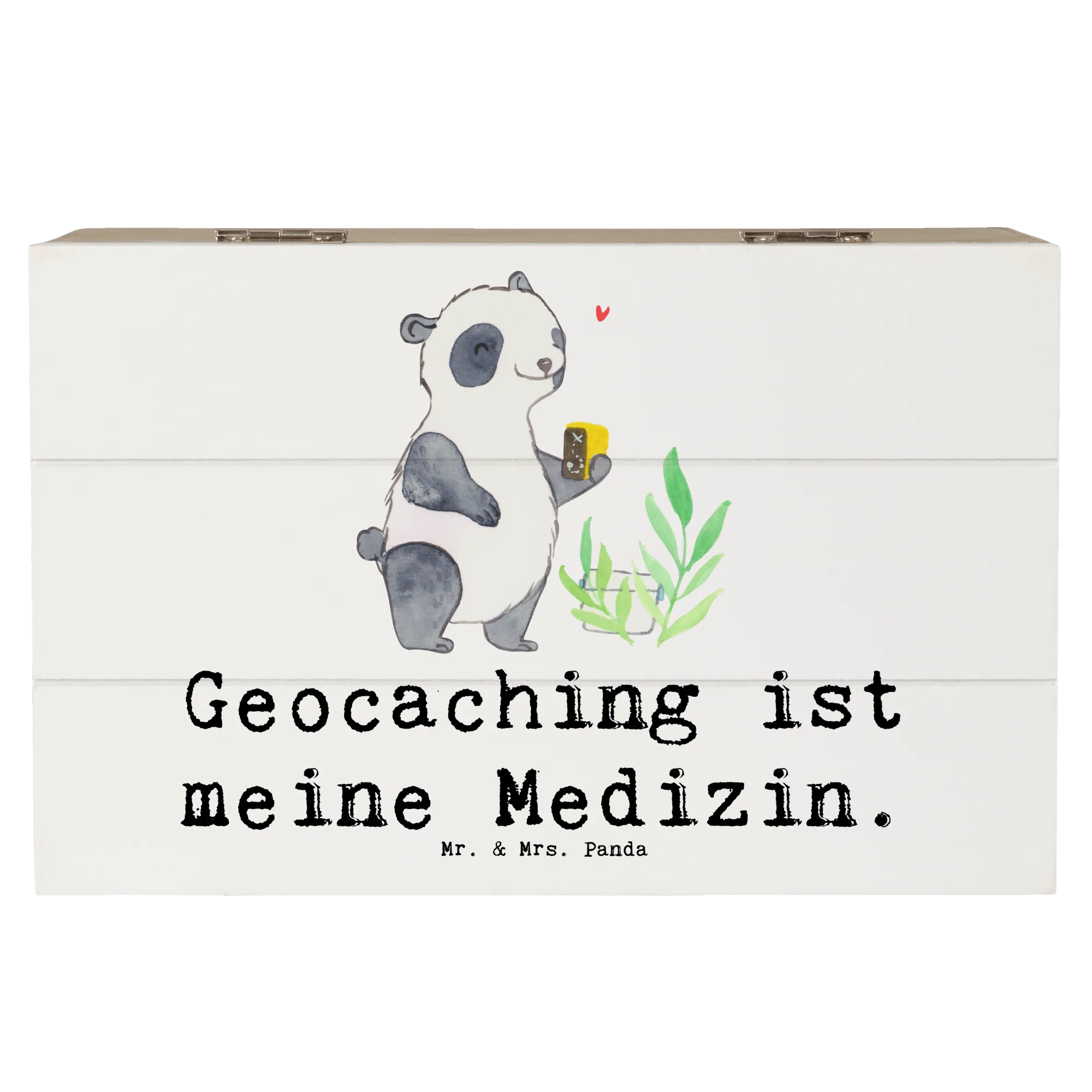Mr. & Mrs. Panda Holzkiste „Panda Geocaching Medizin“ – die liebevoll gestaltete Aufbewahrungsbox für alle Schatzsucher und Geocaching-Fans. Das Motiv zeigt einen fröhlichen Panda mit GPS-Gerät und den Spruch „Geocaching ist meine Medizin.“ Eine tolle Kombination aus praktischem Nutzen und liebevollem Design.