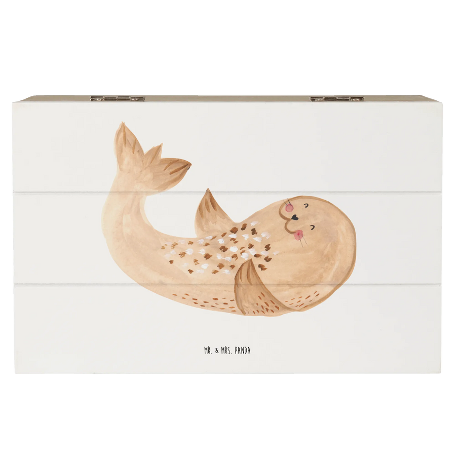 Die wunderschöne Holzkiste mit dem süßen Motiv der liegenden Robbe von Mr. & Mrs. Panda ist das perfekte Geschenk für alle, die Freude und gute Laune mögen. Diese Erinnerungskiste ist mehr als nur ein einfacher Aufbewahrungsort – sie ist ein Ort für die kostbarsten Schätze und Erinnerungen deines Lebens.