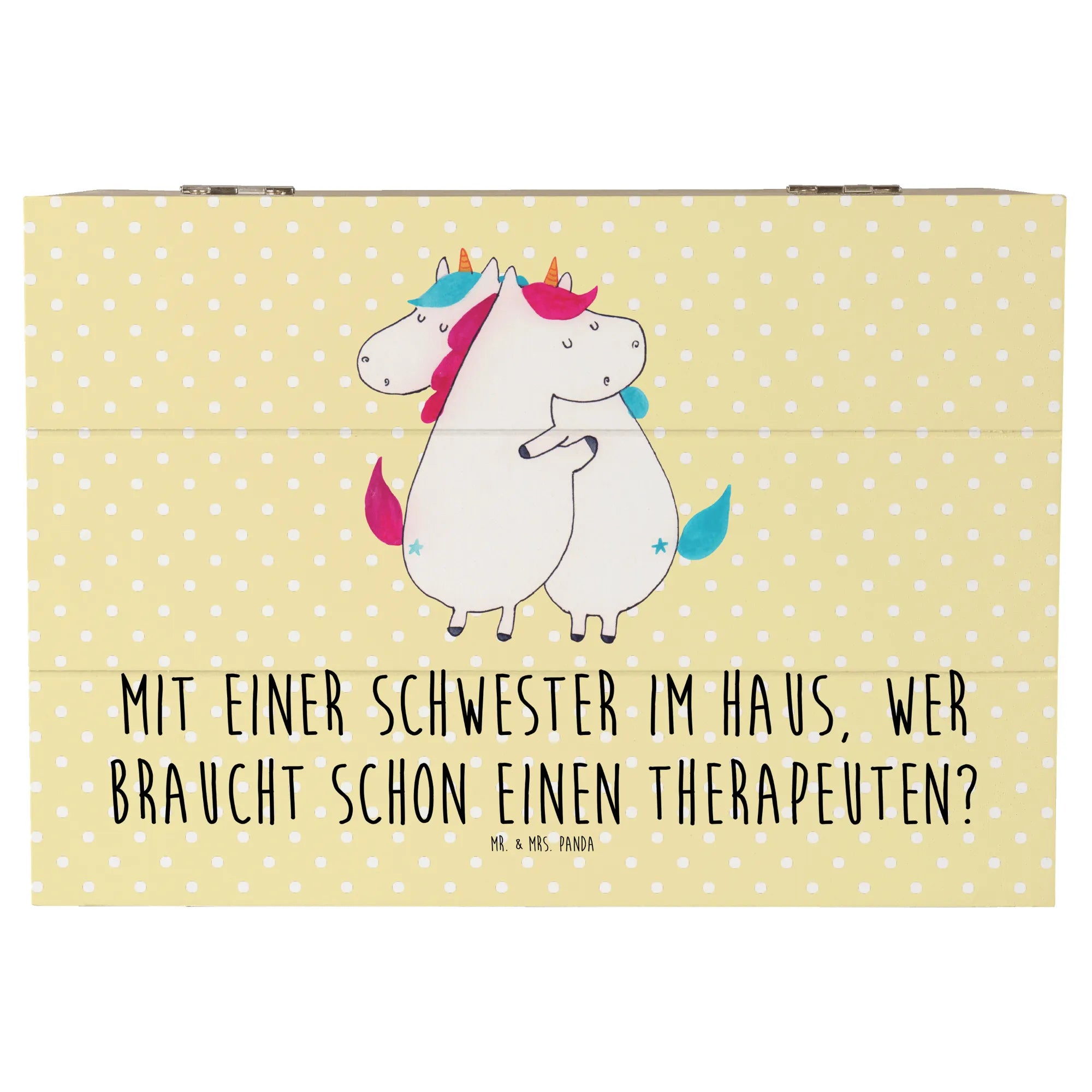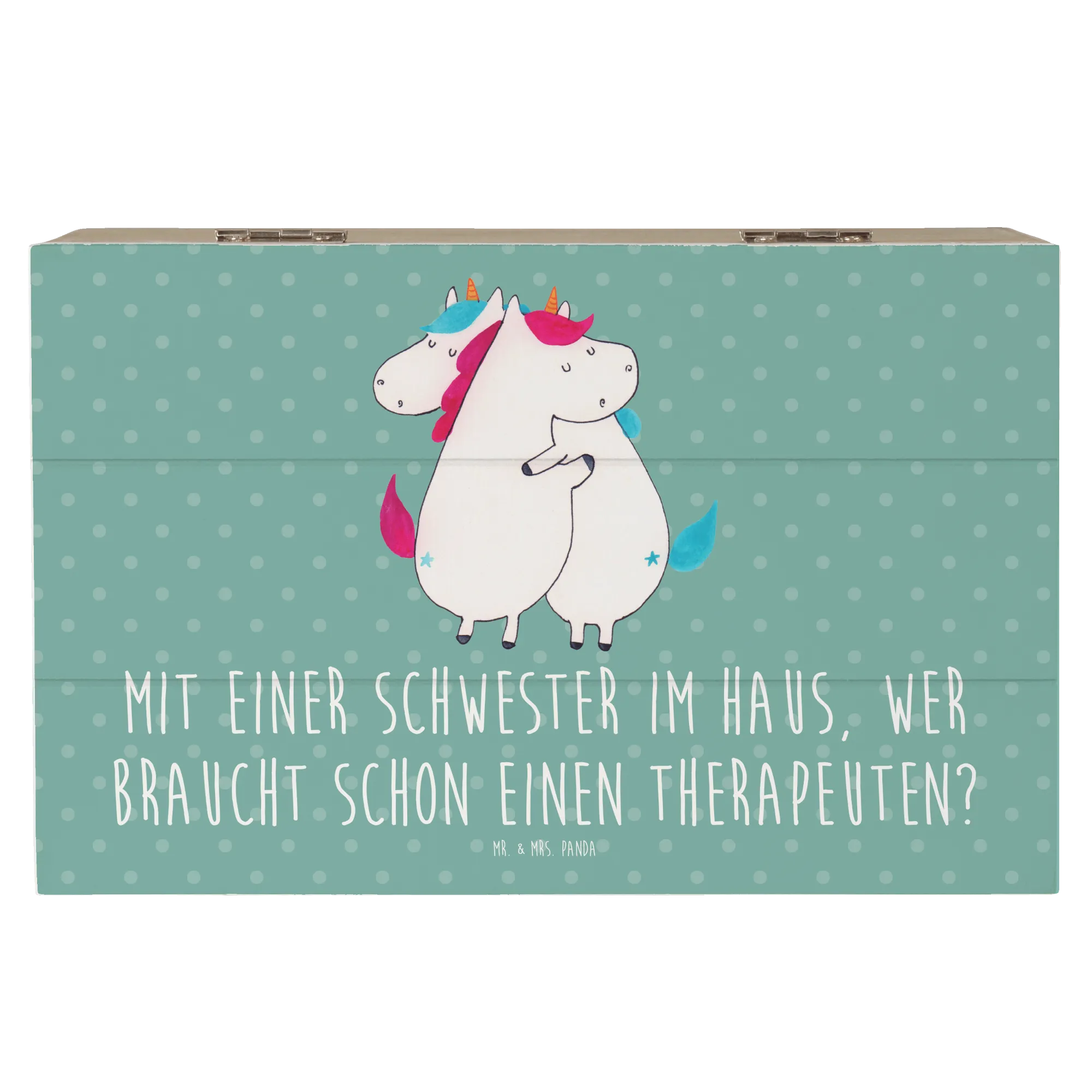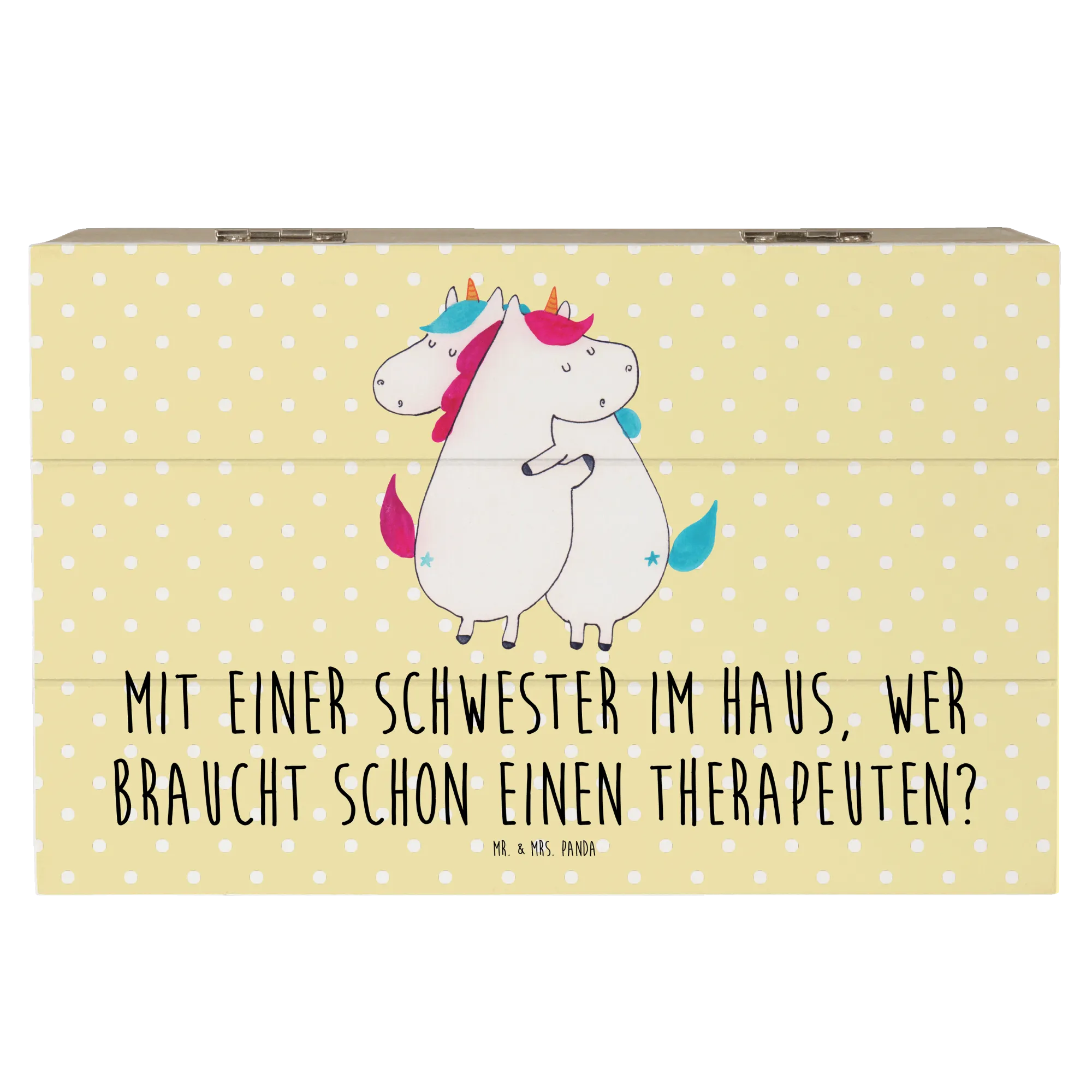 Die wunderschöne Holzkiste von Mr. & Mrs. Panda ist das perfekte Geschenk für Deine Schwester! Ob als Erinnerungskiste für all die gemeinsamen Erlebnisse oder als stilvolle Aufbewahrungsbox für kostbare Schätze, sie ist ein Highlight in jedem Zuhause. Mit dem süßen Motiv 'Mit einer Schwester im Haus, wer braucht schon einen Therapeuten?' fängt die Kiste die tiefe Bindung zwischen Schwestern auf wunderbare Weise ein.