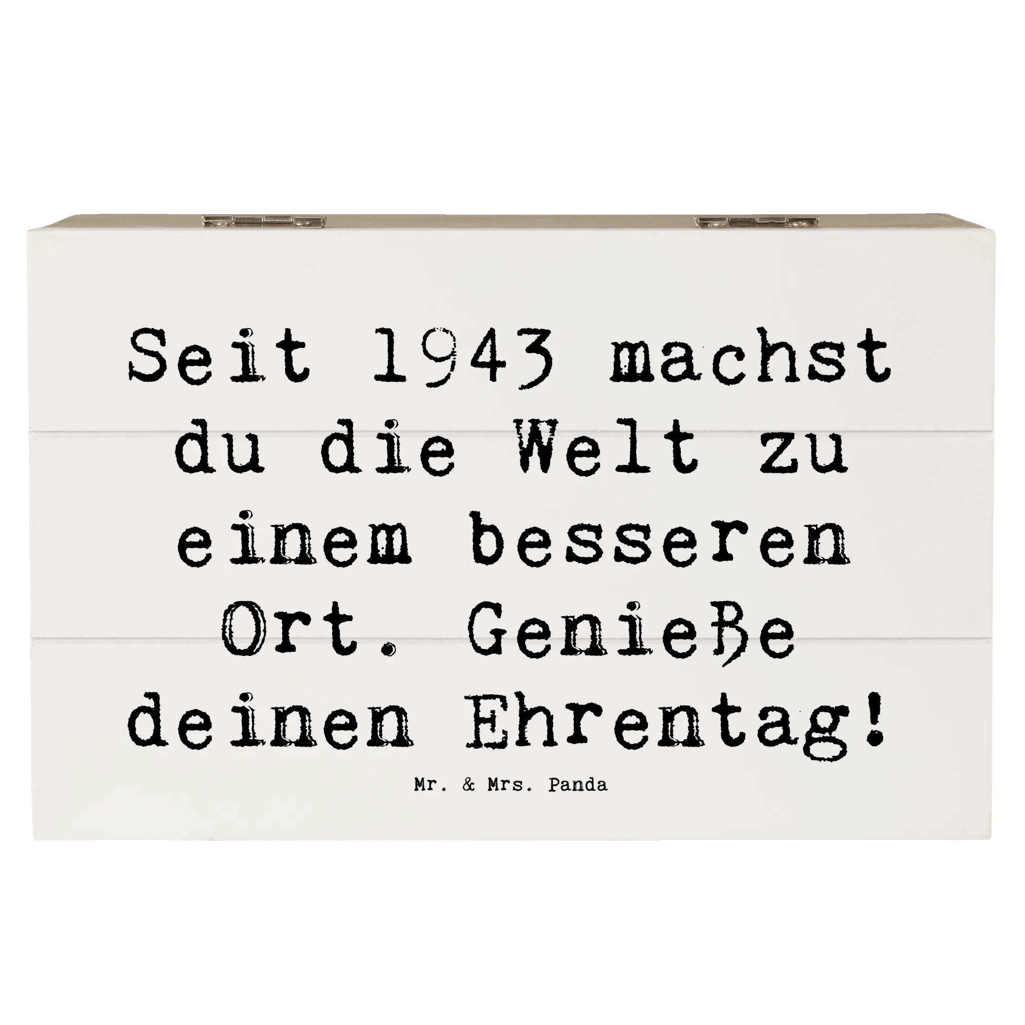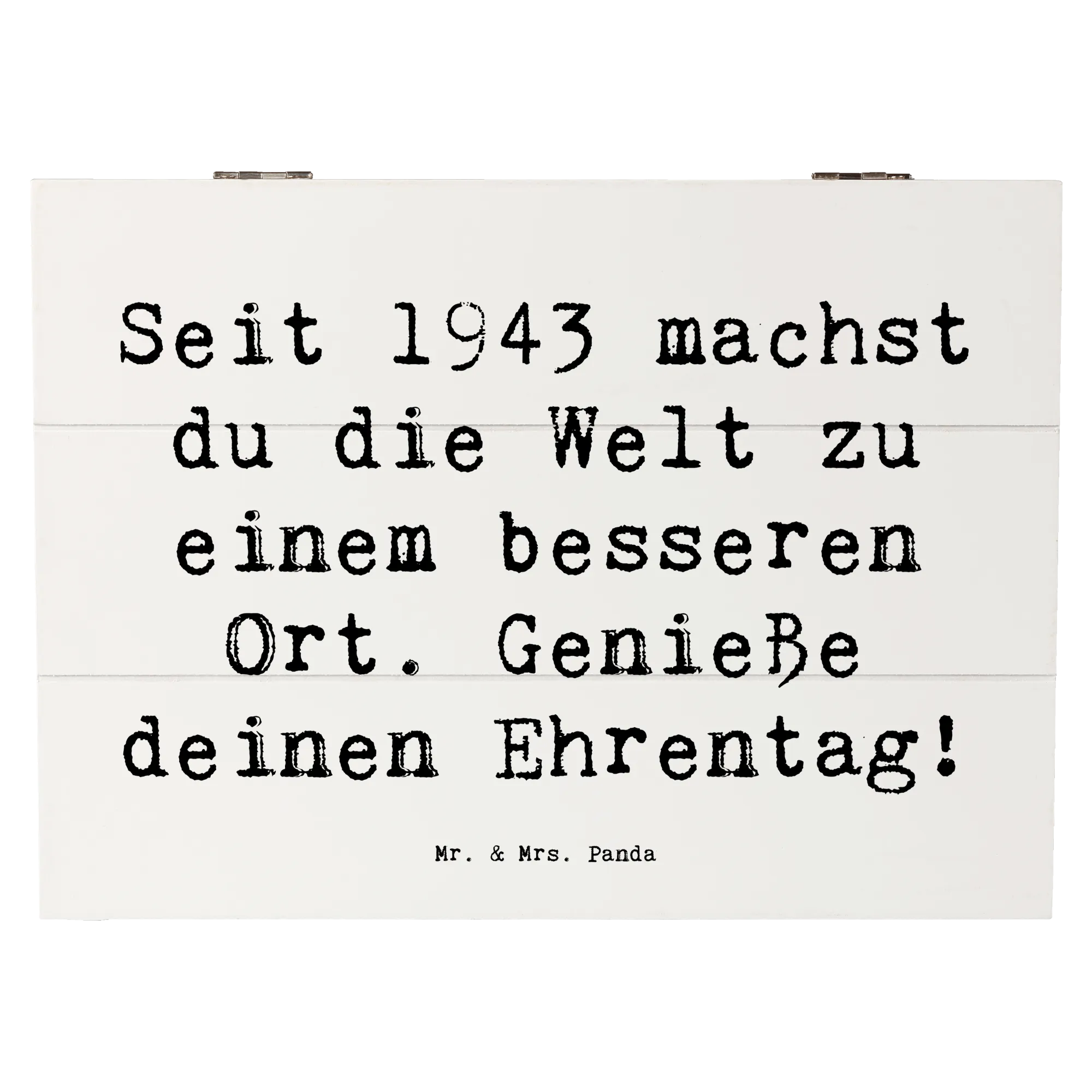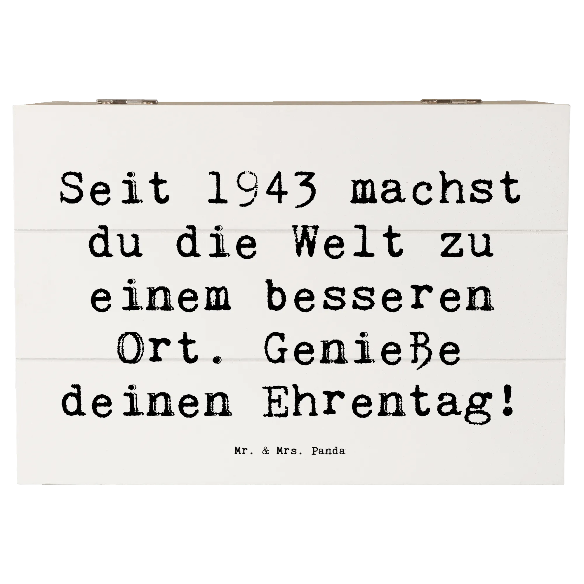 Die wunderschöne Holzkiste von Mr. & Mrs. Panda ist das perfekte Geschenk für alle, die im Jahr 1943 geboren wurden! Sie trägt das liebevoll gestaltete Motiv "1943 Geburtstag" und den Slogan "Seit 1943 machst du die Welt zu einem besseren Ort. Genieße deinen Ehrentag!".