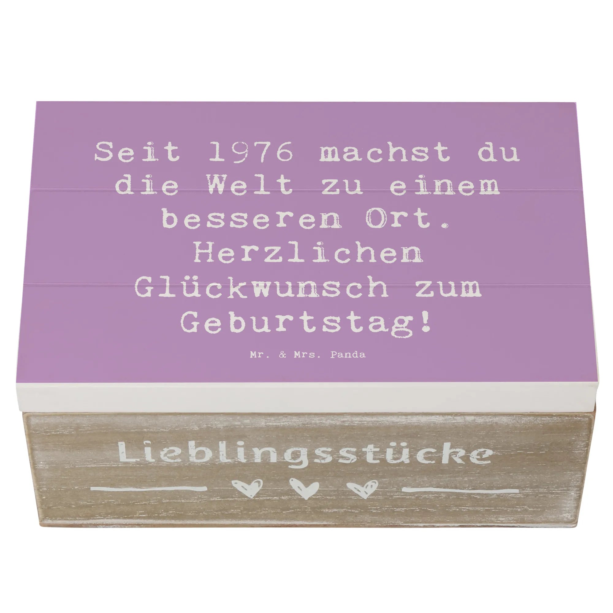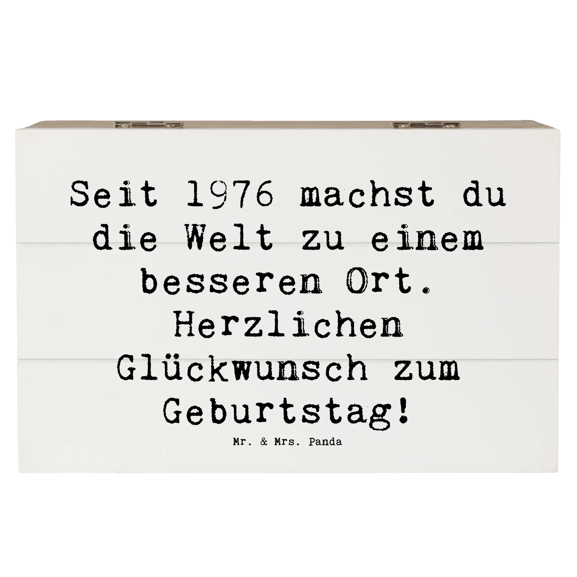 Entdecke die zauberhafte Holzkiste von Mr. & Mrs. Panda, die das perfekte Geschenk für jeden, der 1976 geboren wurde, ist!
