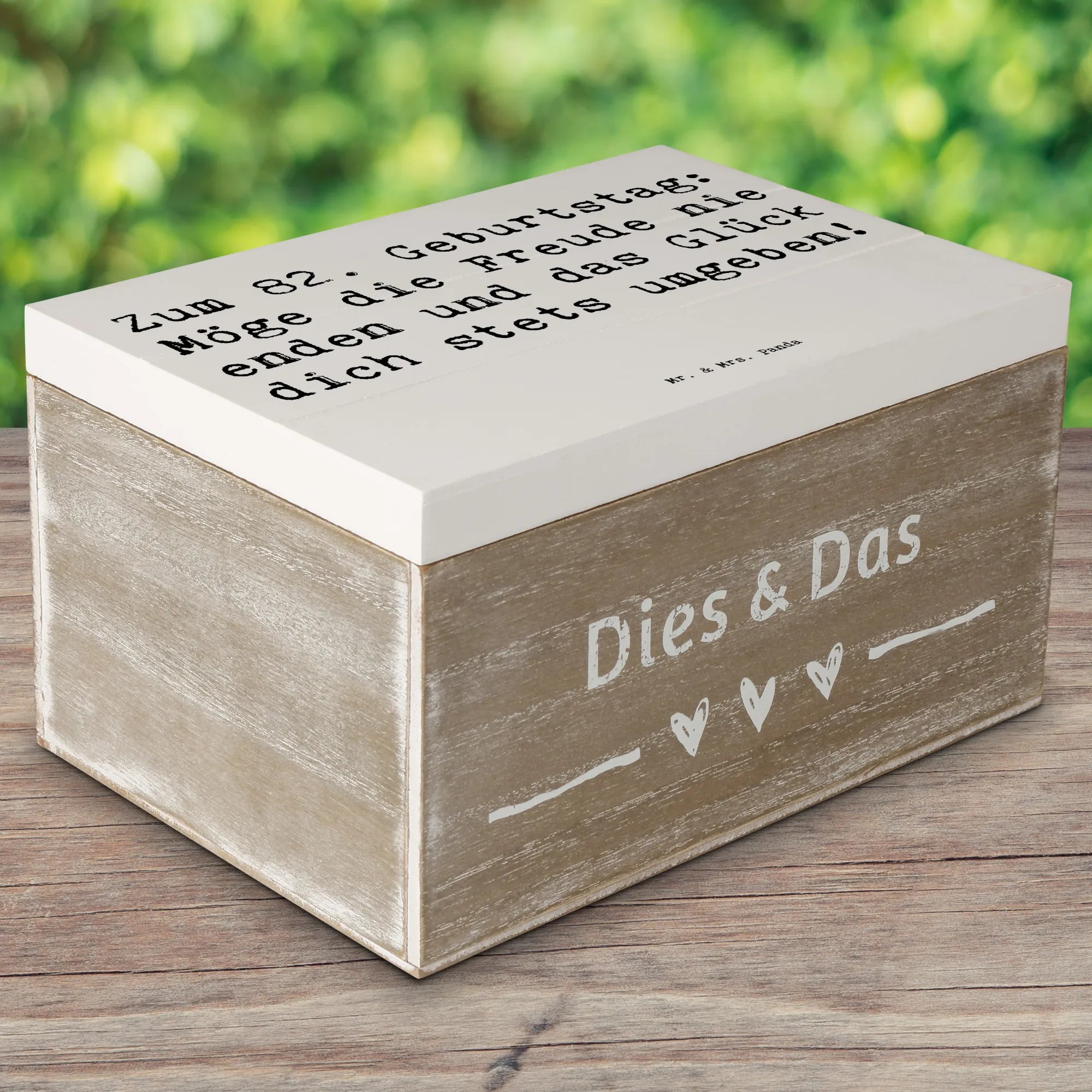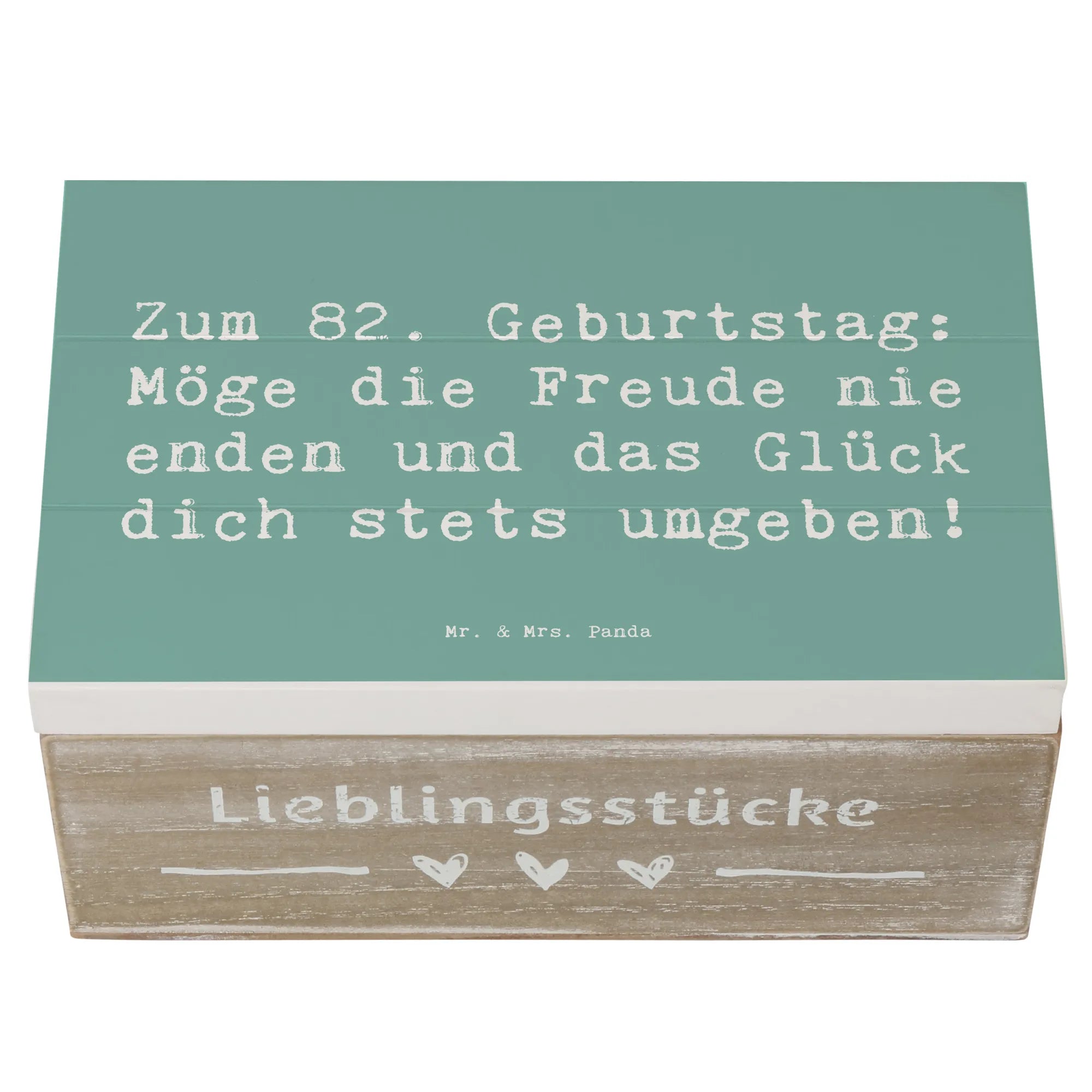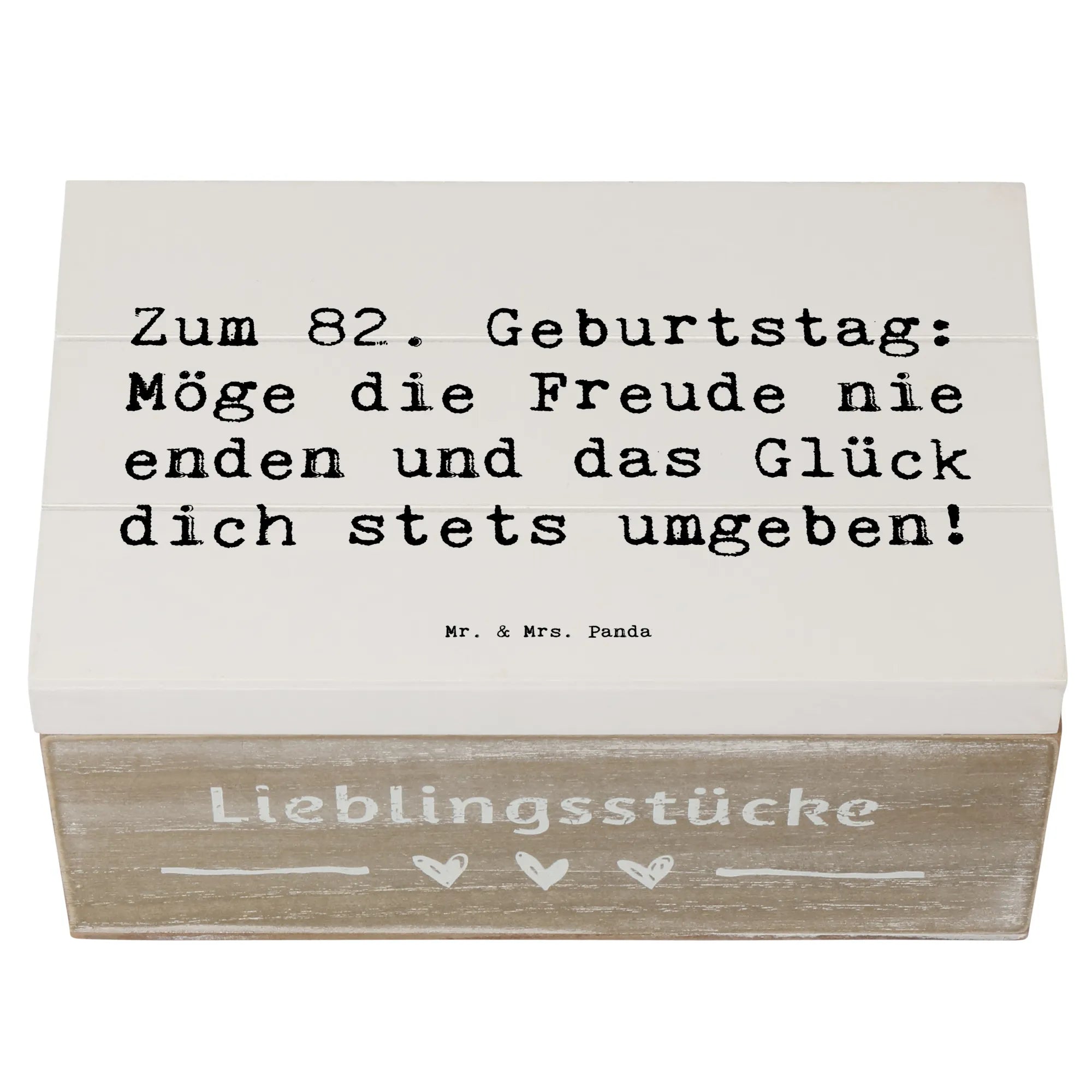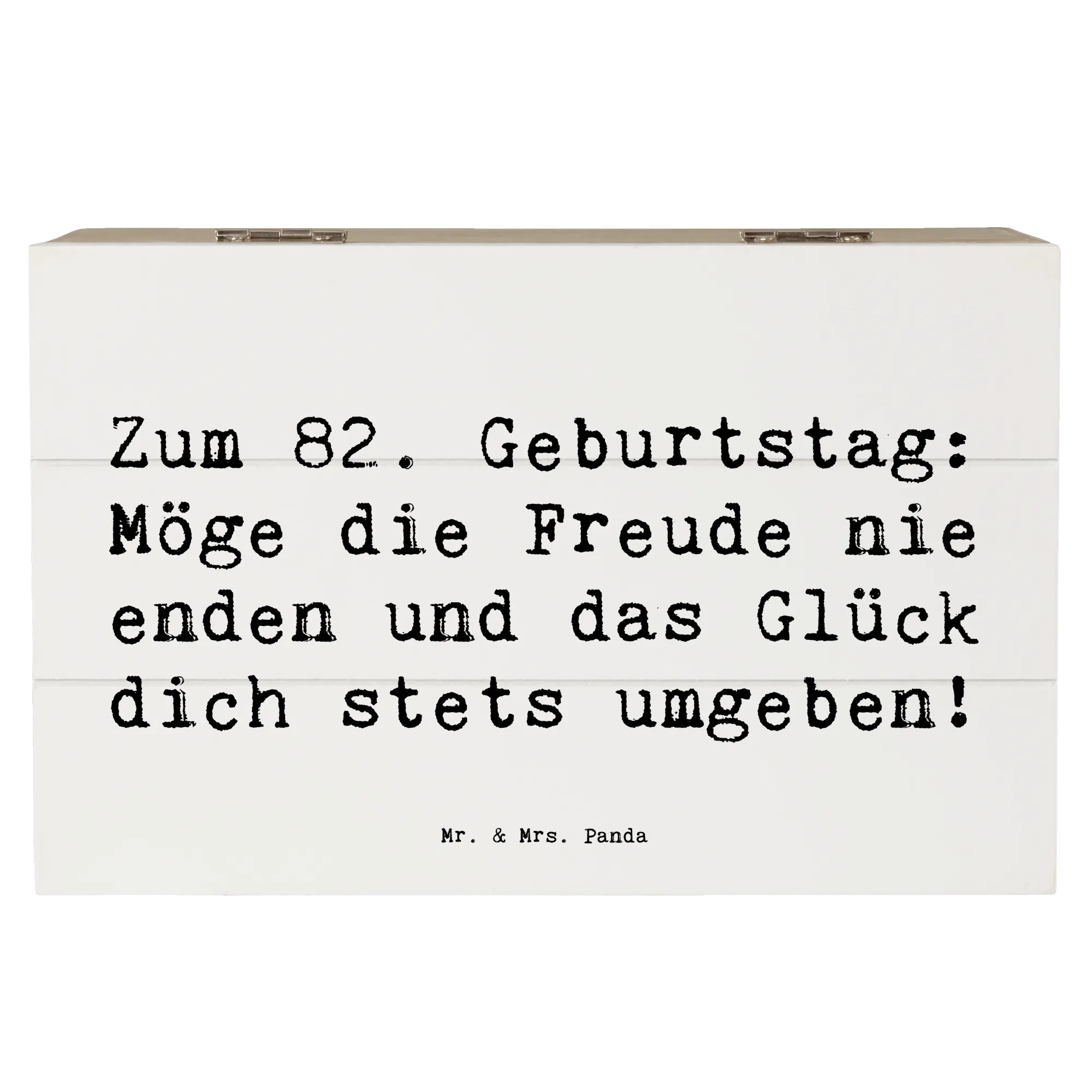 Diese wunderschöne Holzkiste von Mr. & Mrs. Panda ist das ideale Geschenk zum 82. Geburtstag. Bedruckt mit dem herzlichen Spruch 'Zum 82. Geburtstag: Möge die Freude nie enden und das Glück dich stets umgeben!', wird diese Kiste nicht nur zum Aufbewahrungsort für wertvolle Erinnerungen, sondern auch zu einem liebevollen Erinnerungsstück, das jahrelang Freude bereiten wird.