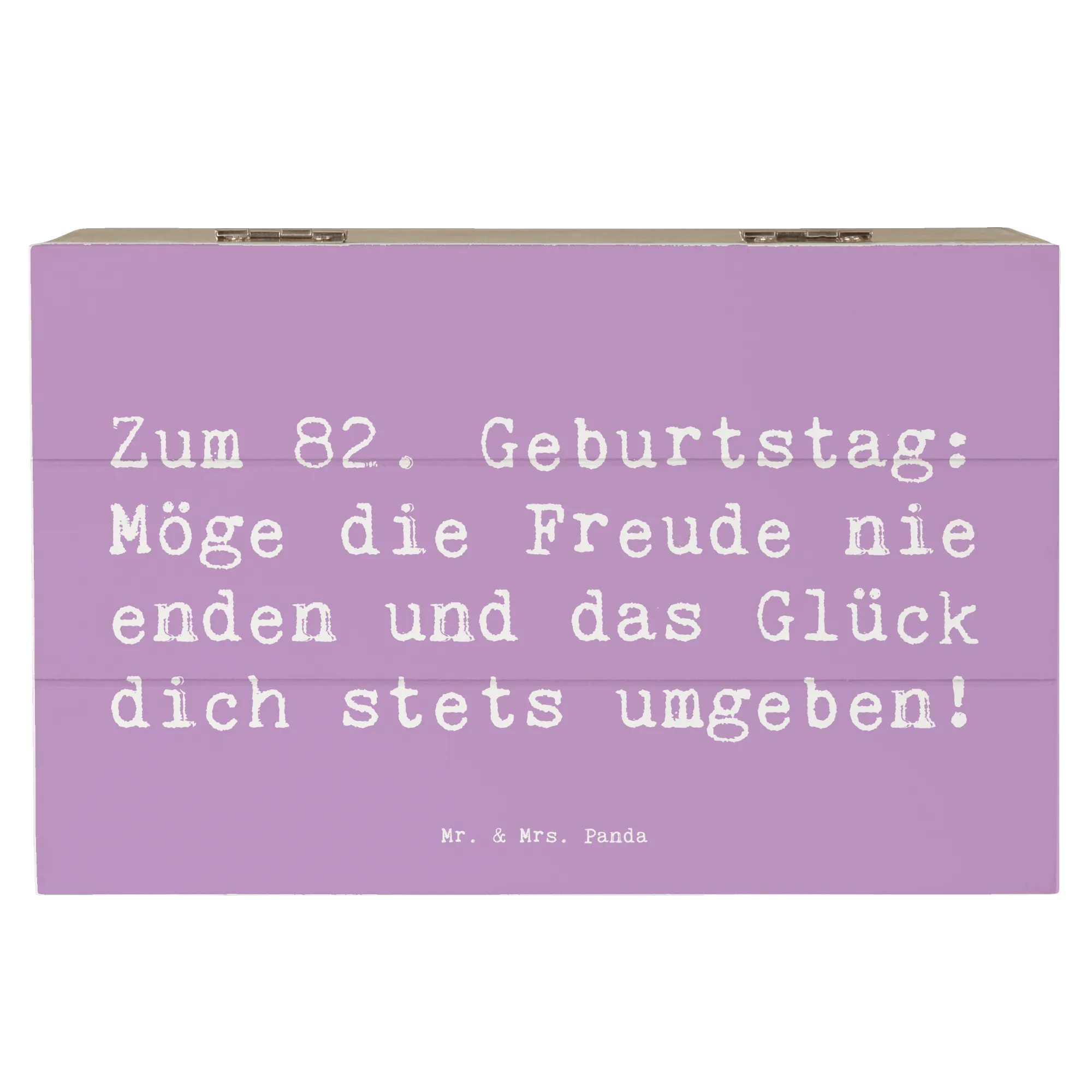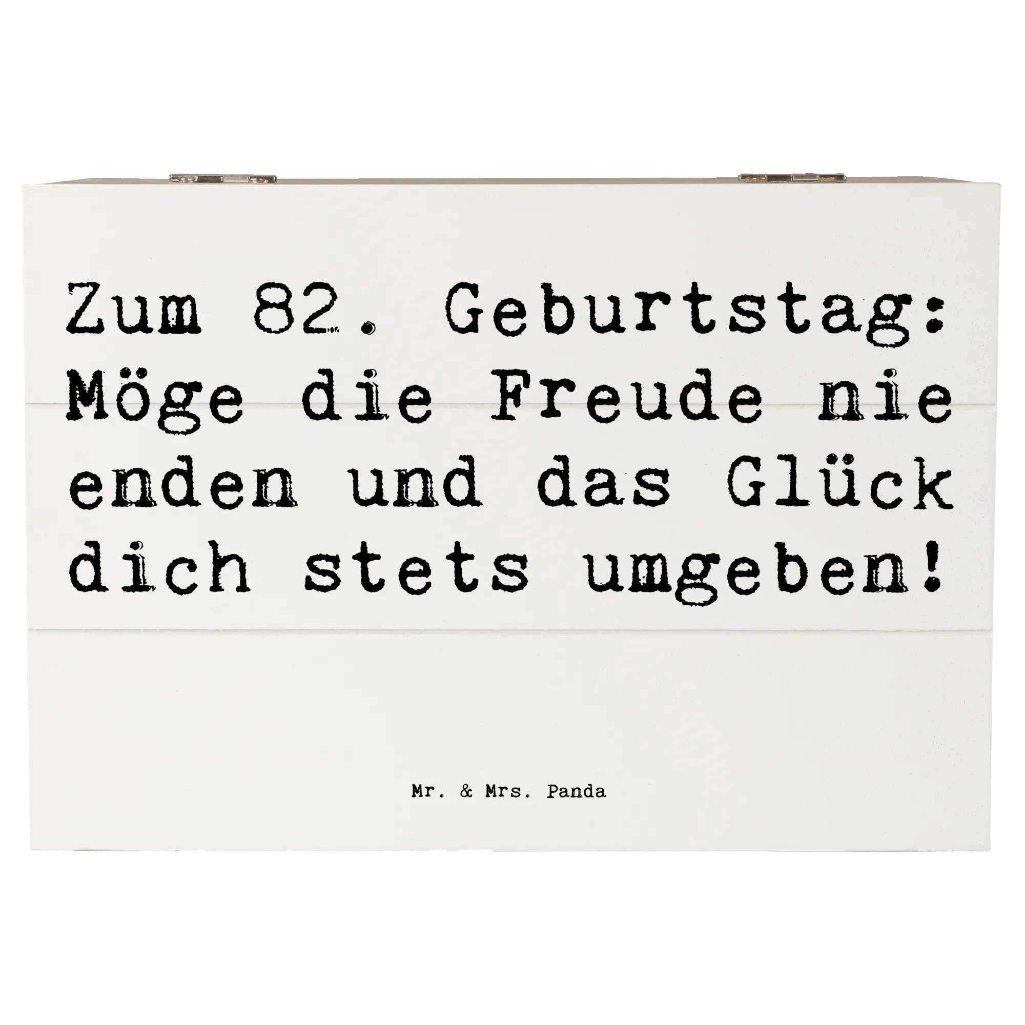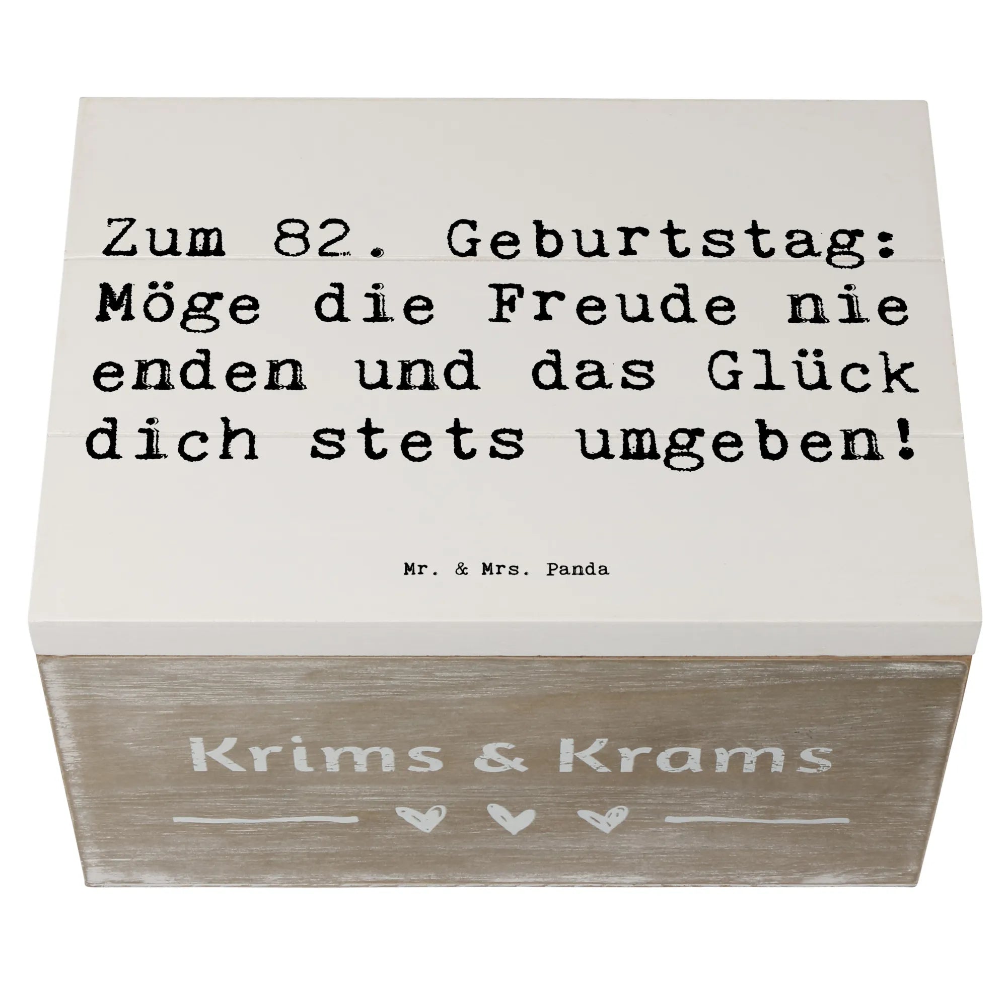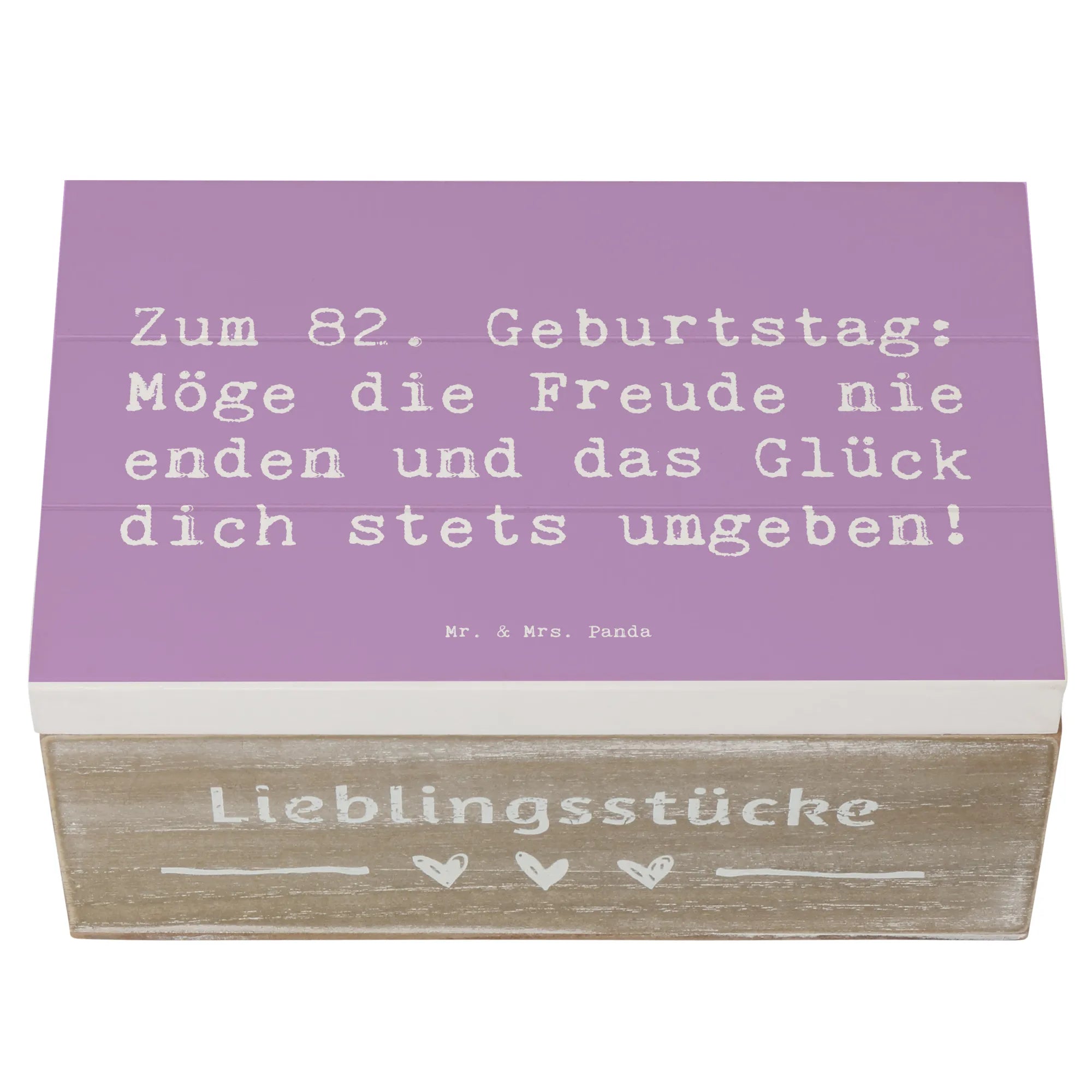 Diese wunderschöne Holzkiste von Mr. & Mrs. Panda ist das ideale Geschenk zum 82. Geburtstag. Bedruckt mit dem herzlichen Spruch 'Zum 82. Geburtstag: Möge die Freude nie enden und das Glück dich stets umgeben!', wird diese Kiste nicht nur zum Aufbewahrungsort für wertvolle Erinnerungen, sondern auch zu einem liebevollen Erinnerungsstück, das jahrelang Freude bereiten wird.