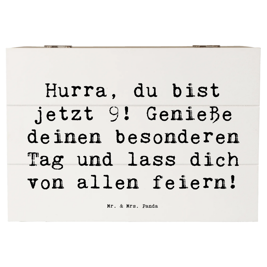 Die wunderschöne Holzkiste von Mr. & Mrs. Panda ist das perfekte Geschenk zum 9. Geburtstag! Mit dem fröhlichen Motiv 'Hurra, du bist jetzt 9! Genieße deinen besonderen Tag und lass dich von allen feiern!' bringt sie nicht nur Freude, sondern auch eine Menge Erinnerungen mit sich.