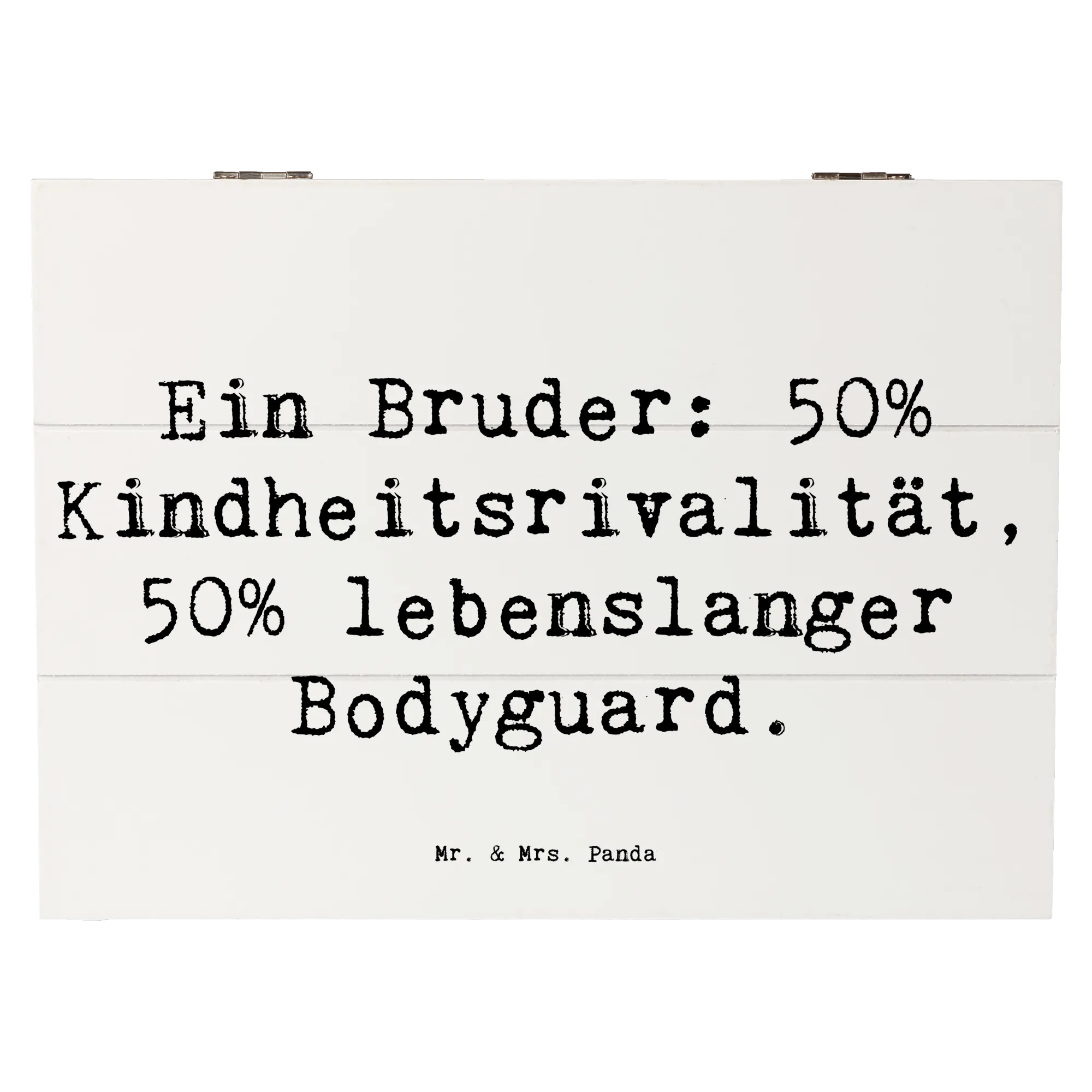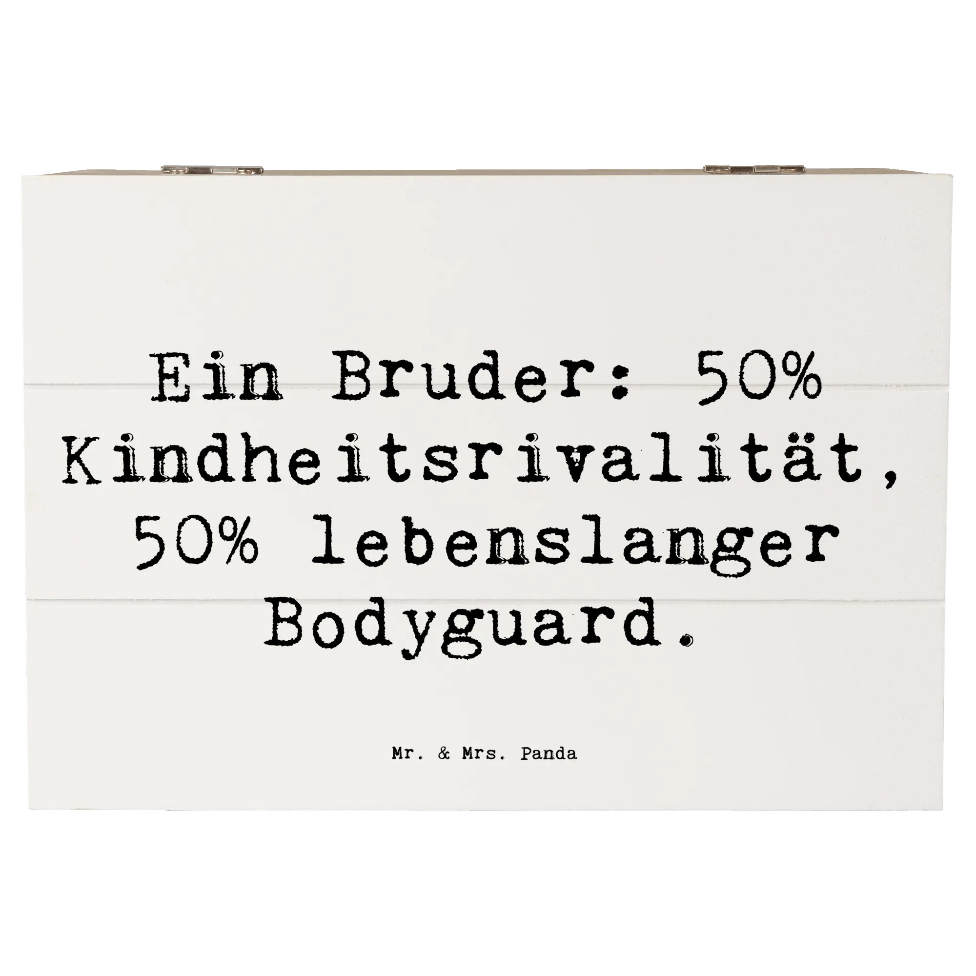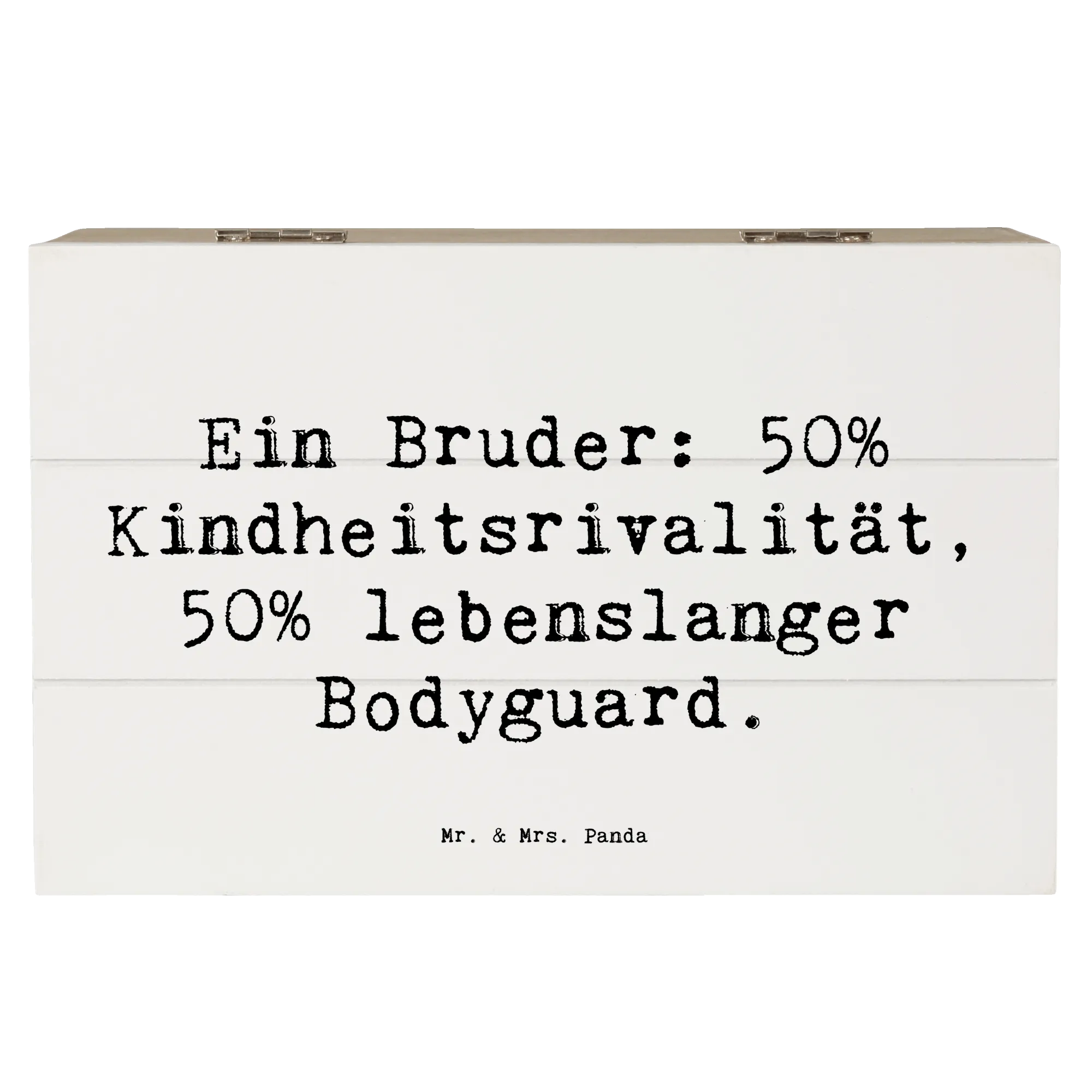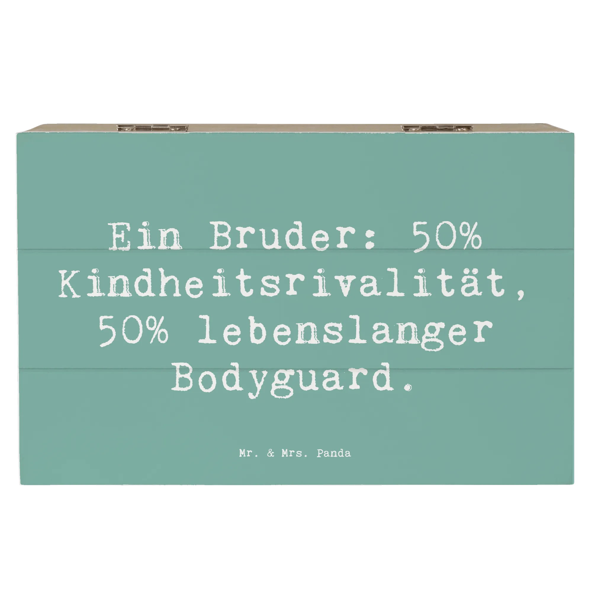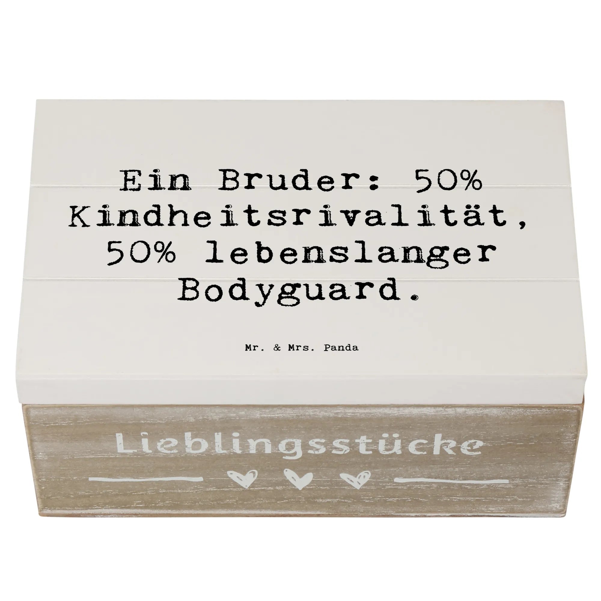 Brüder tragen eine unvergleichliche Rolle in unserem Leben und die Beziehung zu ihnen ist oft geprägt von Rivalität, aber auch von tiefer Zuneigung. Diese Holzkiste, die mit dem Spruch "Ein Bruder: 50% Kindheitsrivalität, 50% lebenslanger Bodyguard" bedruckt ist, fängt genau diese Dynamik ein.