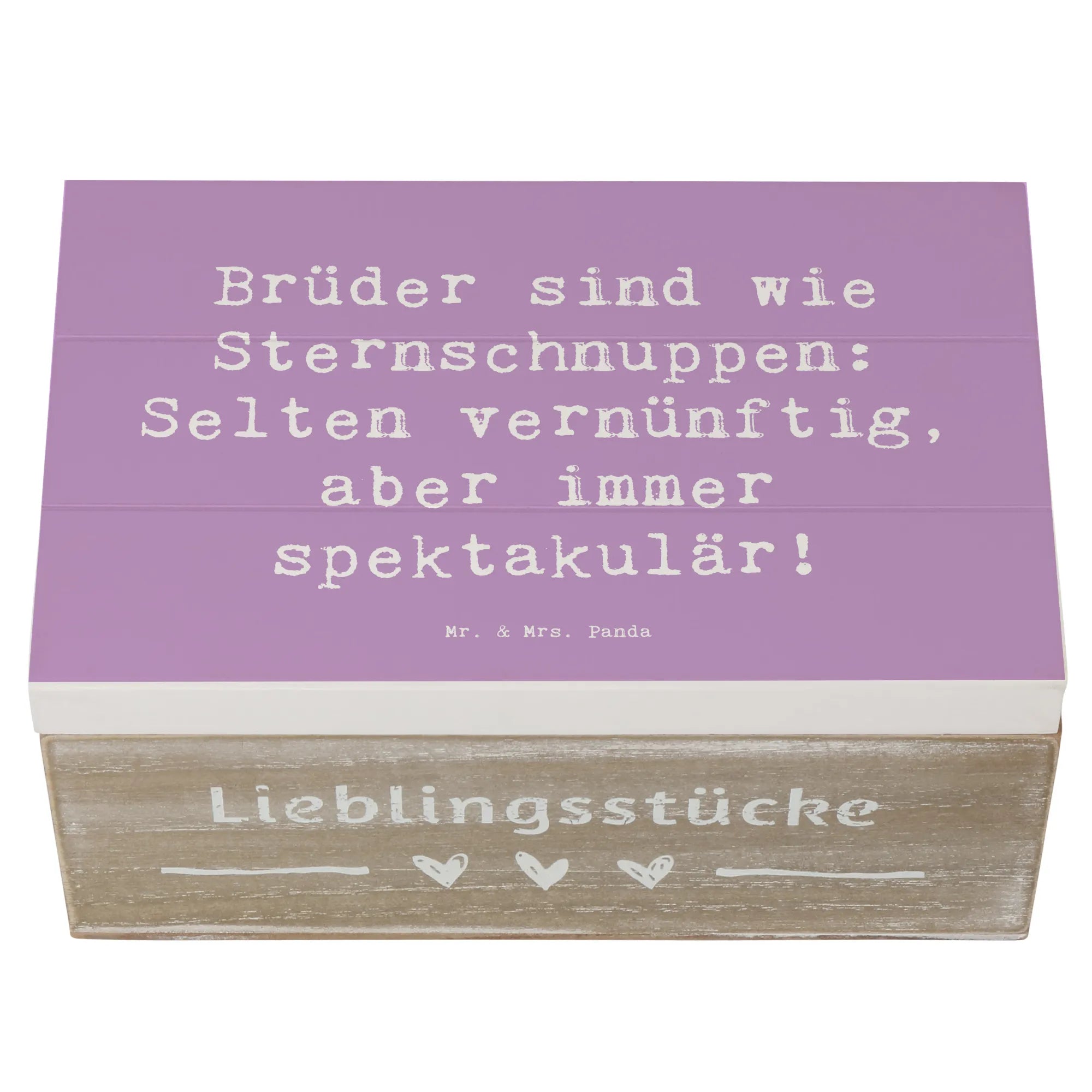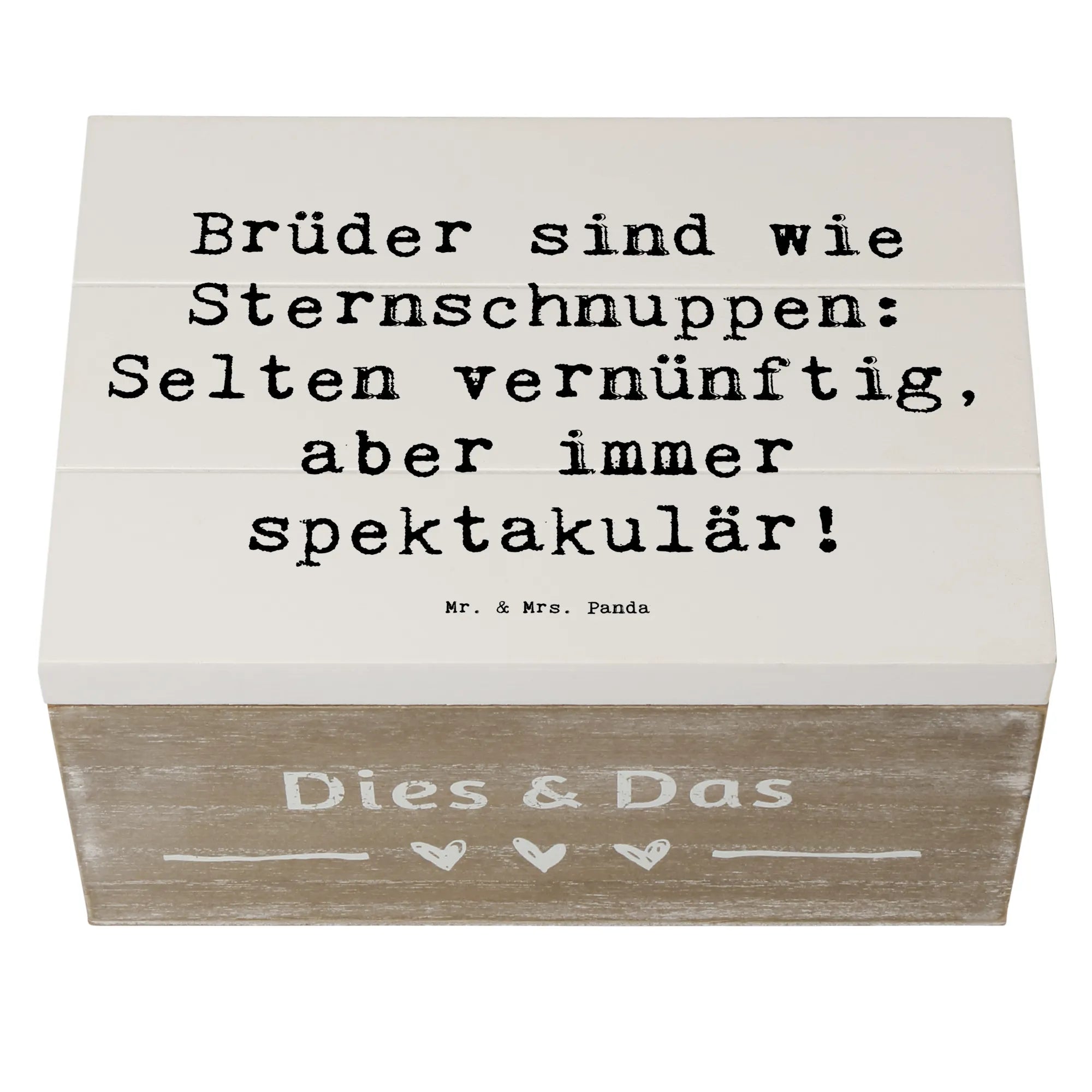 Entdecke die wundervolle Holzkiste "Bruder" von Mr. & Mrs. Panda! Diese einzigartige Kiste ist mehr als nur ein Aufbewahrungsort – sie ist ein ganz besonderes Geschenk für deinen Bruder.